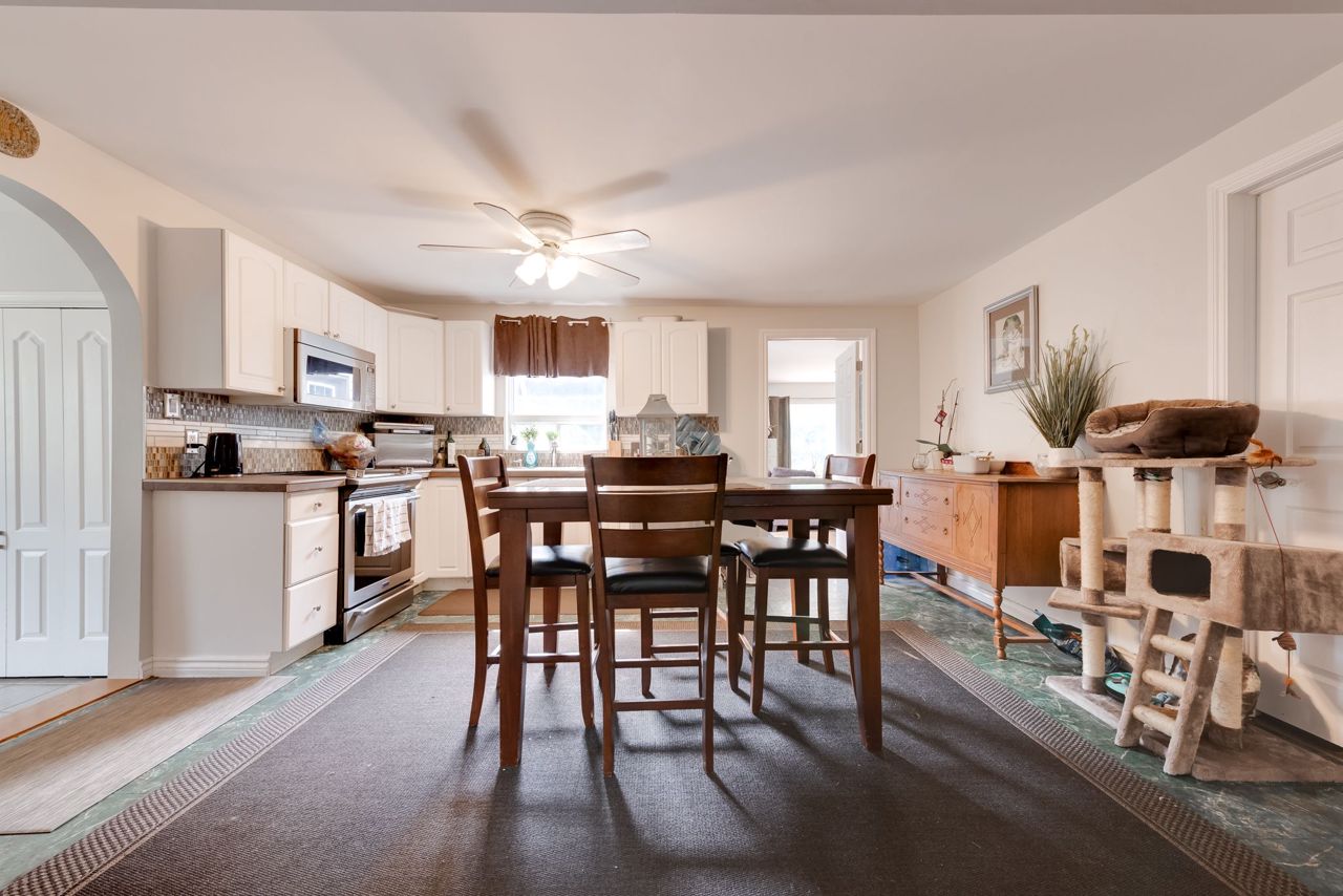 Discover This Charming 3-Bedroom Bungalow Nestled Among The Trees, On The Edge Of Town. Warm Up In The Living Room, Complete W/ A Cozy Wood Stove That Adds A Touch Of Comfort To The Open Space Featuring Laminate Flooring Throughout. The Spacious Kitchen Boasts An Abundance Of Cabinets, S/S Appliances, Convenient Access To The Yard. Step Out Onto The Deck From The Kitchen & Living Room, Where You Can Greet The Sun & Enjoy Views Of The Serene Backyard. It's The Perfect Spot To Savor A Peaceful Dinner Surrounded By Nature's Tranquility. Experience The Best Of Both Worlds W/ Essential Urban Amenities Just Moments Away, All While Relishing The Benefits Of A Rural Setting. The Generously-Sized Driveway Accommodates Multiple Cars With Ease. Take Advantage Of The Proximity To Several Schools, Restaurants, And Quick Access To Commute Routes, With County Rd 90 And Hwy 400 Just A Short Distance Away. Let Your Imagination Run With This Amazing Opportunity To Build Your Dream Home On A Mature Lot.