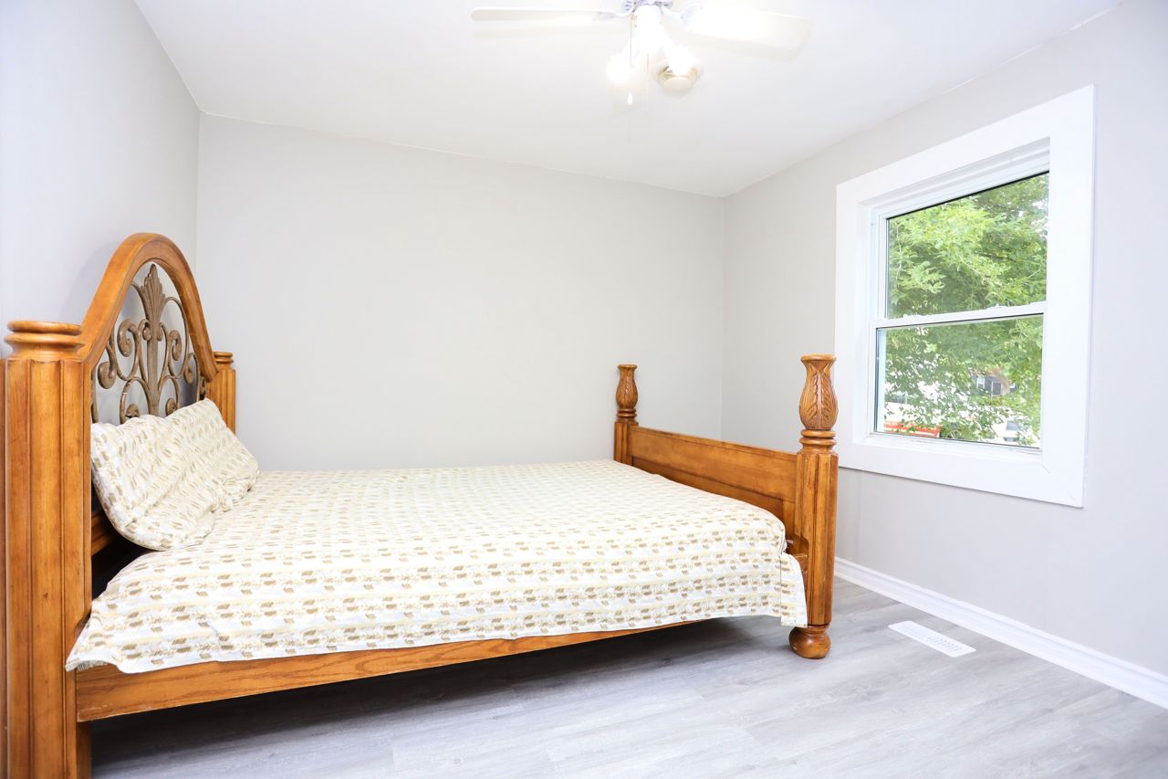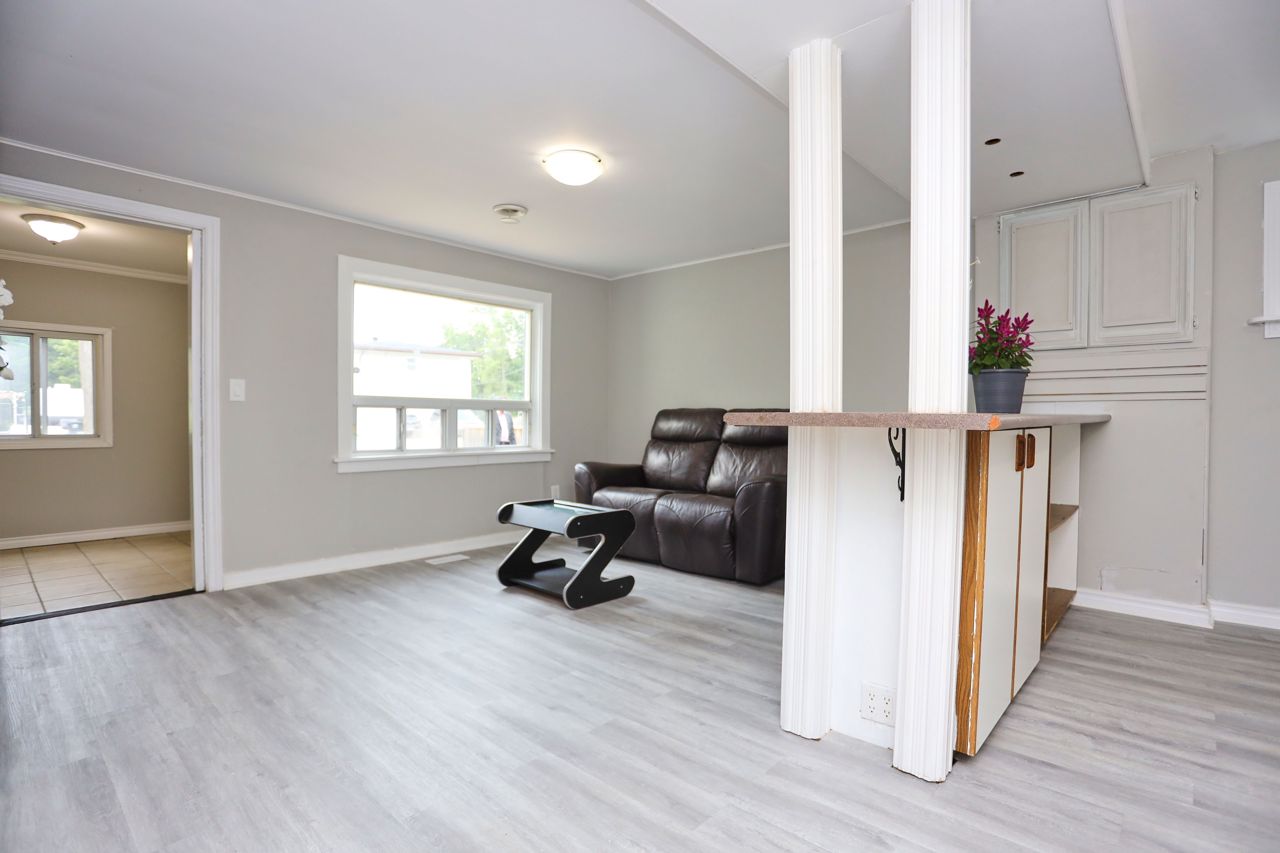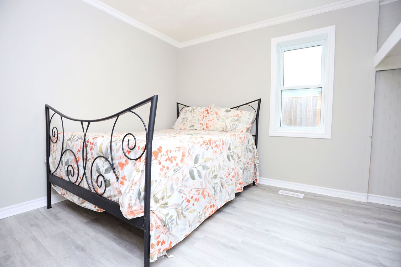 Picture it! Your first home, or possibly an investment. This house is fully updated from top to bottom with new flooring, freshly painted.It is Located on a nice sized lot with municipal services. It's close to amenities, park, schools, and access to the highway. The open concept is bright and welcoming; it's cozy, yet not cramped. Two decent sized bedrooms, good sized kitchen open to the family room ideal for conversation and entertaining. The laundry room is large and can be made into another room or continue to be used for storage. The backyard offers a deck, a large shed and is fully fenced. The steel roof is less than five years old. The furnace was replaced two years ago. Take a walk through, envision your personal touches and decor. This may be the perfect place to call home.Curtains, Bedroom sets included