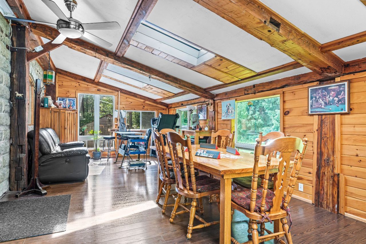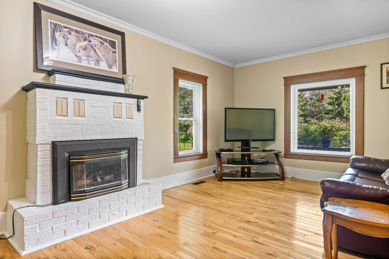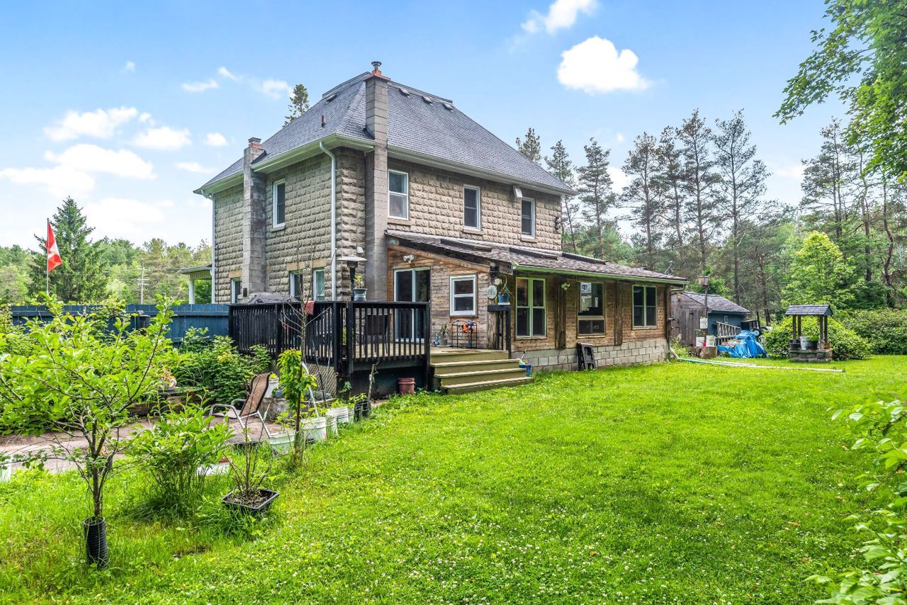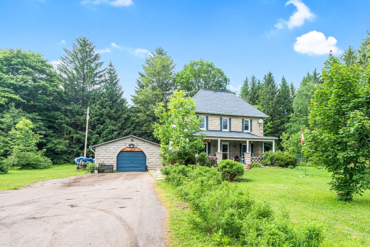 DISCOVER THE PERFECT BALANCE OF NATURE & CONVENIENCE AT THIS SECLUDED CENTURY HOME JUST MINUTES AWAY FROM EVERYDAY AMENITIES! Set on a one-acre lot, this property offers an idyllic retreat in a serene country setting. Lush green space & mature trees provide privacy. Conveniently located within an 8 min drive to amenities. Enjoy the large covered front porch & timeless h/w and laminate flooring throughout. The inviting living and dining area features a cozy gas fireplace and ample windows with scenic views. The updated kitchen boasts ample pantry space, s/s appliances & granite countertops. The sunroom offers rustic charm with exposed brick, beams & 3 skylights. Upstairs, three bedrooms & an updated 4pc bathroom await. Step outside to the spacious deck surrounded by nature. A detached garage & shed provide plenty of storage. Abundant natural light enhances the atmosphere. Let yourself be captivated by the timeless beauty & unmatched charm that awaits you at this #HomeToStay.