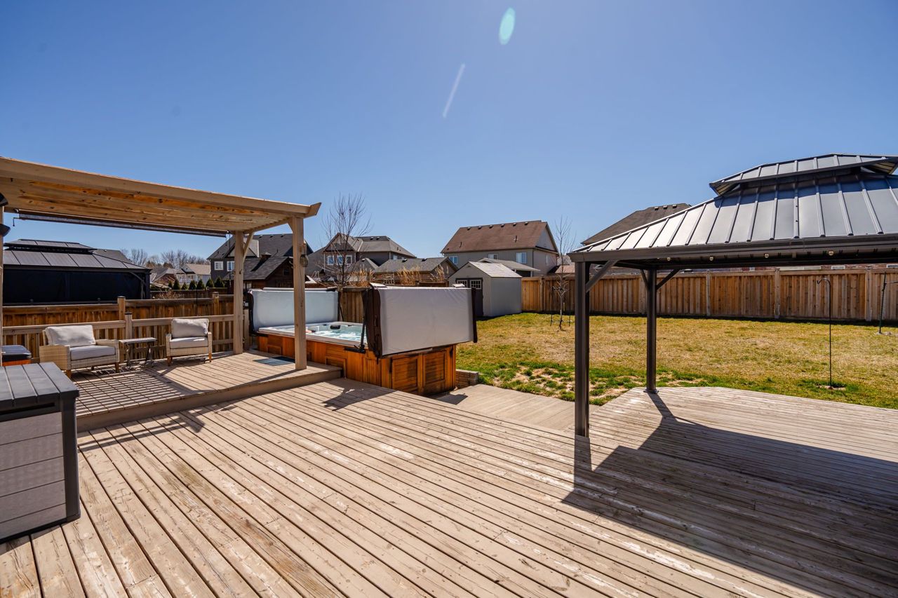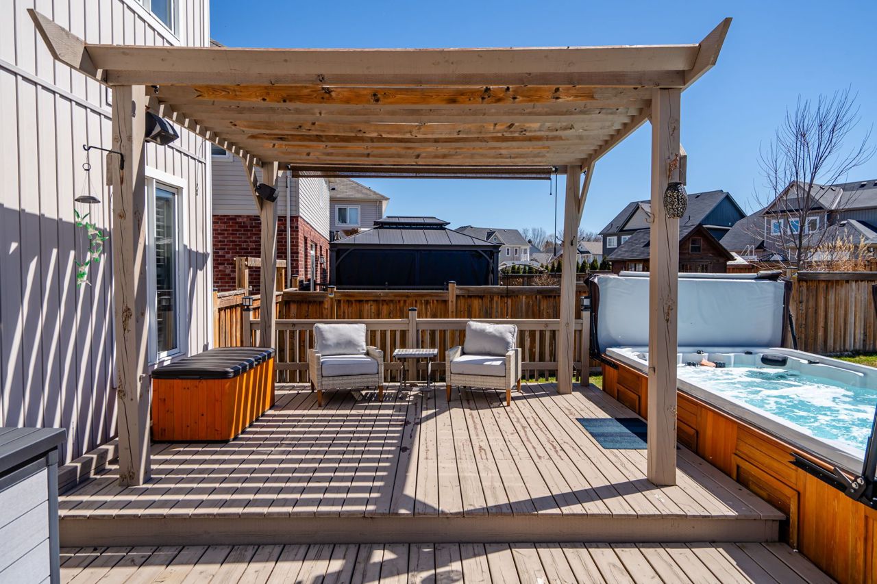 This exquisite home is finished from top to bottom! The backyard retreat features an oversized fully fenced yard, an irrigation system, and a 16x8 pool spa which can be used as a hot tub in the winter and pool in the summer. There are multiple seating areas, an awning, a gazebo, a BBQ station, gas hook up and more. Inside you will find a gorgeous gourmet kitchen, featuring granite countertops, high-end stainless steel appliances, a wine fridge and large patio doors to retreat to the backyard. Upstairs there are 3 great sized bedrooms. The primary bedroom is massive! It features two walk-in closets, a spa-like ensuite with a soaker tub, a separate glass shower and two individual vanities. The additional two bedrooms each have their own ensuite bathrooms. Upper-level laundry for your convenience. This home is a show-stopper!