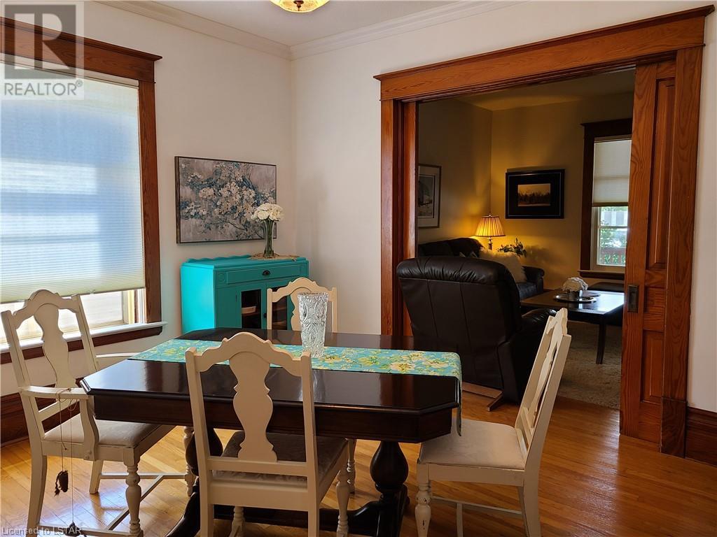 This beautiful brick home is centrally located on Sanders St. East just minutes from downtown, schools, Rec centre, trails and more. Complete with 3 bedrooms, updated bathroom and an enclosed sun porch that overlooks the stunning back yard. Walking into the spacious foyer, the main level features a galley kitchen with updated appliances and formal dining room with original pocket doors that lead into the living room. Upstairs you will find 3 bedrooms, an updated 4piece bathroom and massive hall closets. A full walk up attic offers loads of possibilities for more space. This home has great curb appeal with open covered front porch and a single concrete drive is off to the east side of the property. The backyard is complete with large deck for all your entertaining needs, 2 garden sheds and an array of beautiful gardens throughout. The basement is unfinished with separate laundry, utility room, storage room and extra room for many possibilities. Call today for your private showing! (id:22211)