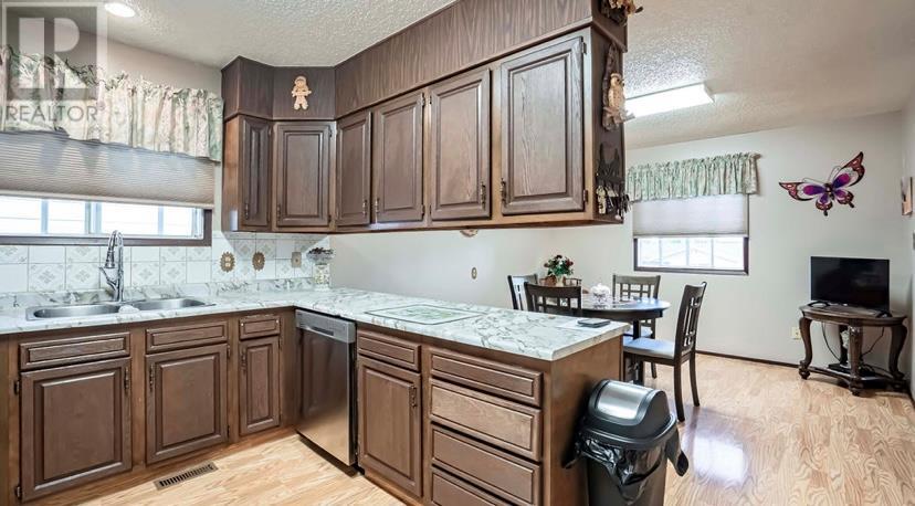 Home Sweet Home! Fully Developed! Investment opportunity or perfect Family home! Natural Light greets you throughout this 1467 sq ft bungalow with a large insulated 24 x 26 garage. A welcoming main floor hosts the bright and open living room, a spacious kitchen and open dining area. Three well sized bedrooms and a full Bathroom are also located on the main level. Laundry is conveniently situated on the main level. Downstairs has a full non conforming suite with another bedroom and 2 more bathrooms that can be used as a mortgage helper or just use as more space for that growing family or private place to host friends or guests. A private fenced, landscaped backyard has a 10 x 12 shed for storage. The roof was done 3 years ago, New dishwasher June 2023 and Brand new furnace in December on 2022. The top floor was completely painted, new light fixtures and switches in December 2023. Located close to schools, playgrounds, shopping and all of the amenities the Town of Fairview has to offer! Pride of ownership and perfectly priced, you will definitely want to check out this home! (id:22211)