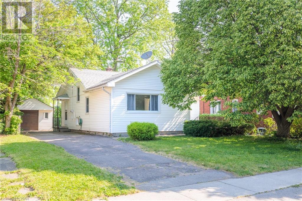 On a pretty street in the desirable North end of Fort Erie, tucked behind the boughs of a giant Linden tree, you will find 10 Wintemute St. This quaint three bedroom bungalow is steps from the Niagara River, with views of Buffalo NY and the Trail that runs from Lake Erie to the Falls. Enjoy a morning run, dog walk or a family bike ride. Water sport enthusiasts and fisherman alike will appreciate the several boat launches nearby. A short stroll to downtown Bridgeburg and an array of amenities. Easy access to QEW and Peace Bridge provide big city convenience while maintaining small town lifestyle. You will love this location! A solid front porch of concrete and ironwork welcomes you to this home. You will notice the abundance of natural light as a result of the well placed windows. The open concept living and dining area features a charming half staircase up to one of the three cozy bedrooms. A full bath and two additional bedrooms are conveniently located on the main floor. One bedroom features a lovely built in desk, ideal for a student, a home office or a craft room. Laundry can be found in the partial basement. The kitchen has plenty of cabinets and counterspace, with room for a cozy banquette. It boasts yet another sunny window overlooking the backyard. Watch the children play or daydream garden plans while you do dishes. Side entry off the kitchen is adjacent to the driveway and provides easy access to the backyard for outdoor dining or bringing vegetables in from the garden. The backyard is a blank canvas fully fenced and bordered with shade trees. With no back neighbours, the scene is set for a private paradise right in town. The single car garage is freshly restored and ready to park your car, get the workshop rolling or act as an extension of the garden. With its fresh paint and new flooring throughout, this home is move-in ready. Ideal for those looking to downsize or for first time buyers. Open House- Sunday July 9th 1-3pm (id:22211)