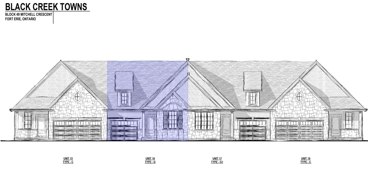 Brand new, signature 2+1 bedroom, 2-bathroom freehold bungalow townhome with full walk-out basement and no rear neighbours in the desirable Black Creek area of Fort Erie! Quality interior finishes and features include grand 9' main floor ceiling, taller 8'4" foundation height pour and main floor quartz countertops. The chef's kitchen has an island, cabinets extended to ceiling, 18" wide pantry, fridge, stove, dishwasher, chimney range hood and tiled backsplash
