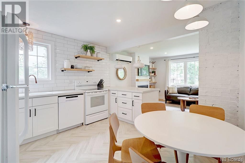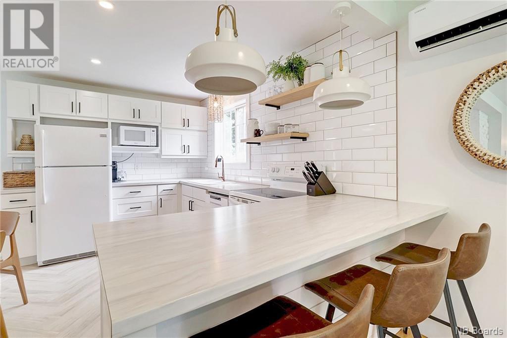 Welcome to your dream home in the highly sought-after Silverwood community! This stunning 3-bedroom bungalow has been completely renovated in the past 5 years, ensuring a modern and stylish living space that exceeds expectations. As you enter the home you will be invited by the stylish foyer leading you into the open concept living, eat-in kitchen. The living room is magazine worthy with a beautiful natural wood mantle above the electric insert. The new ductless mini split will ensure year round comfort. A white kitchen is timeless with backsplash and the peninsula will be the gathering point for entertaining! Down the hallway you'll find 3 bedrooms with a good sized primary bedroom. The main level bathroom features a shiplap wall and tiled shower/bath to finish off this level. The lower level features a great second living space. From here you'll walk into the finished laundry room which comes complete with appliances and a well thought out set of cabinets and counter space for storage and folding. A fresh half bathroom has been installed in the lower level. finishing off with the two large unfinished spaces for lots of storage and utilities. The exterior is as impressive as well, a paved driveway, and massive new deck leading you to the fenced in backyard complete with a fire pit area. A must see in the ever desirable silverwood community just 10 minutes to downtown Fredericton! (id:22211)