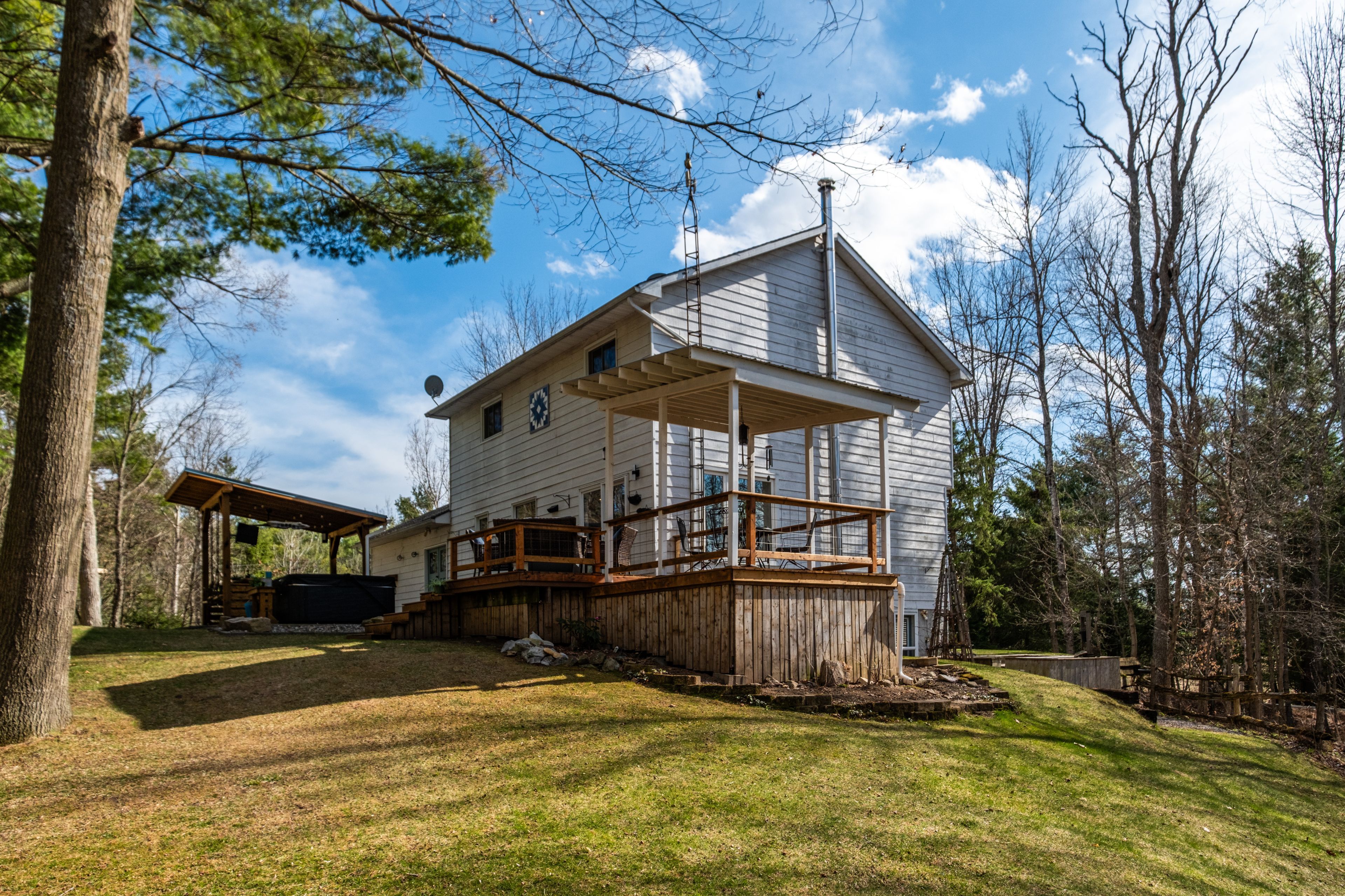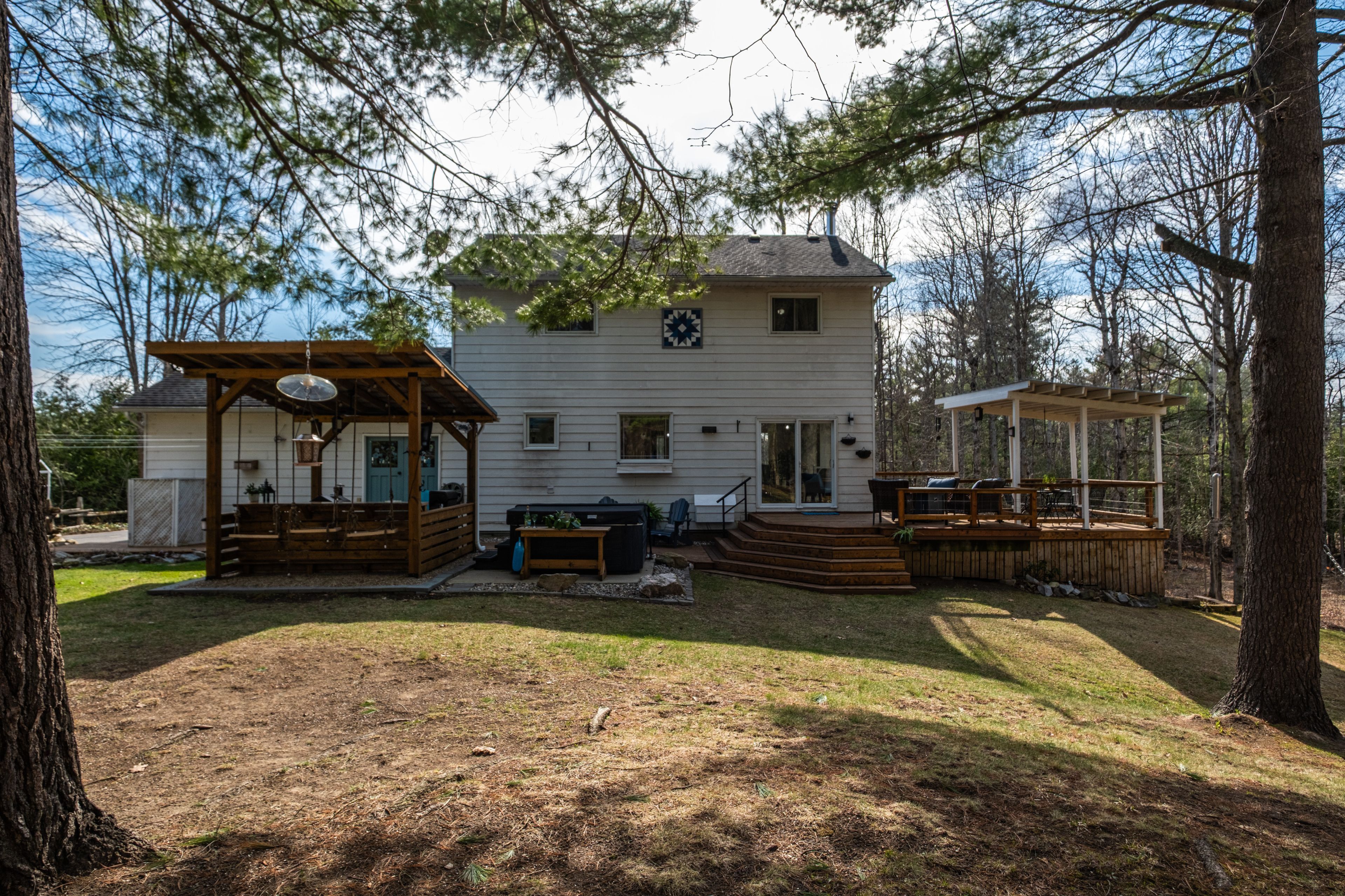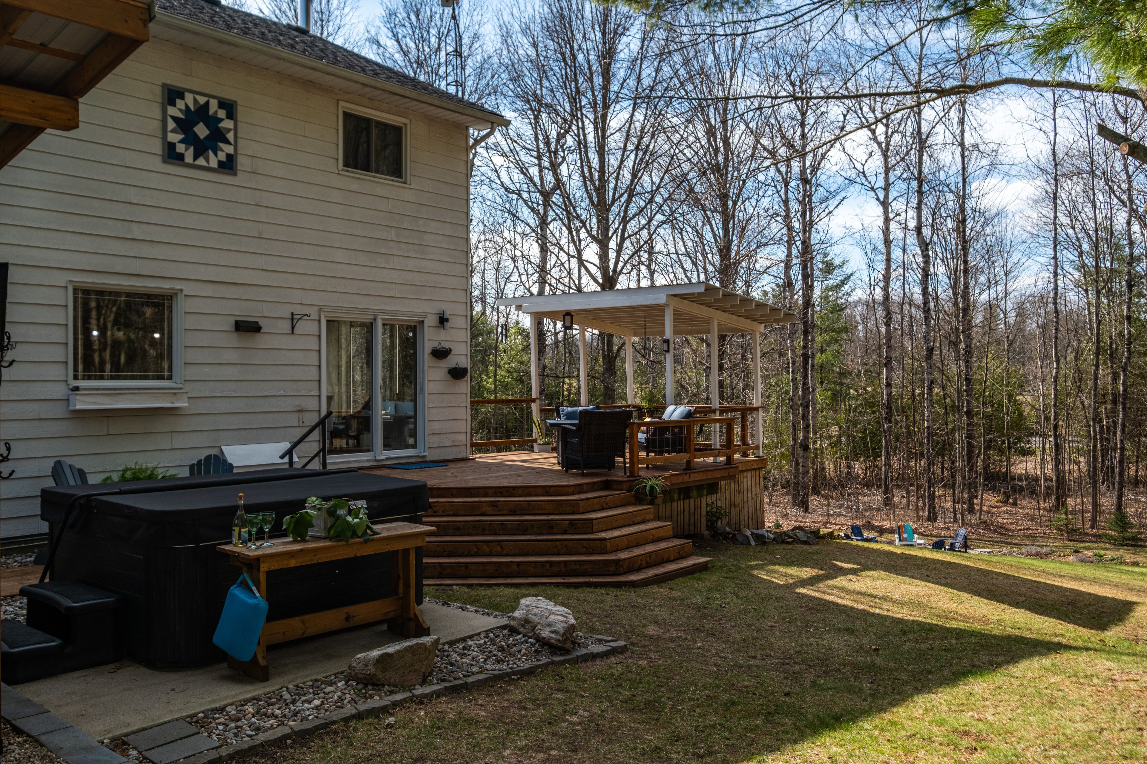 Welcome to 7772 Highway 38 where modern living meets country serenity. This beautifully renovated 2-storey home sits on nearly 4 acres of peaceful paradise, backing onto the KP Trail for endless outdoor adventures right from your backyard.With almost 2,000 sq ft of thoughtfully updated living space, this 4-bedroom, 2.5-bath home offers both comfort and style. The main level flows effortlessly with spacious, sun-filled rooms, a modern kitchen, and cozy gathering spaces that make entertaining a dream. Upstairs, you'll find four generous bedrooms, including a serene primary suite with ensuite bath. Step outside to your private oasis an entertainers dream! Enjoy evenings around the custom outdoor fireplace, cocktails at the sip & swing bar, or soak in the hot tub under the stars. The landscaped yard is as functional as it is stunning, and the spacious deck offers the perfect spot to relax and take in the view. With a double attached garage, a paved driveway, and direct access to the trail, this home checks every box. Whether you're hosting friends or unwinding in nature, 7772 Highway 38 is where memories are made.