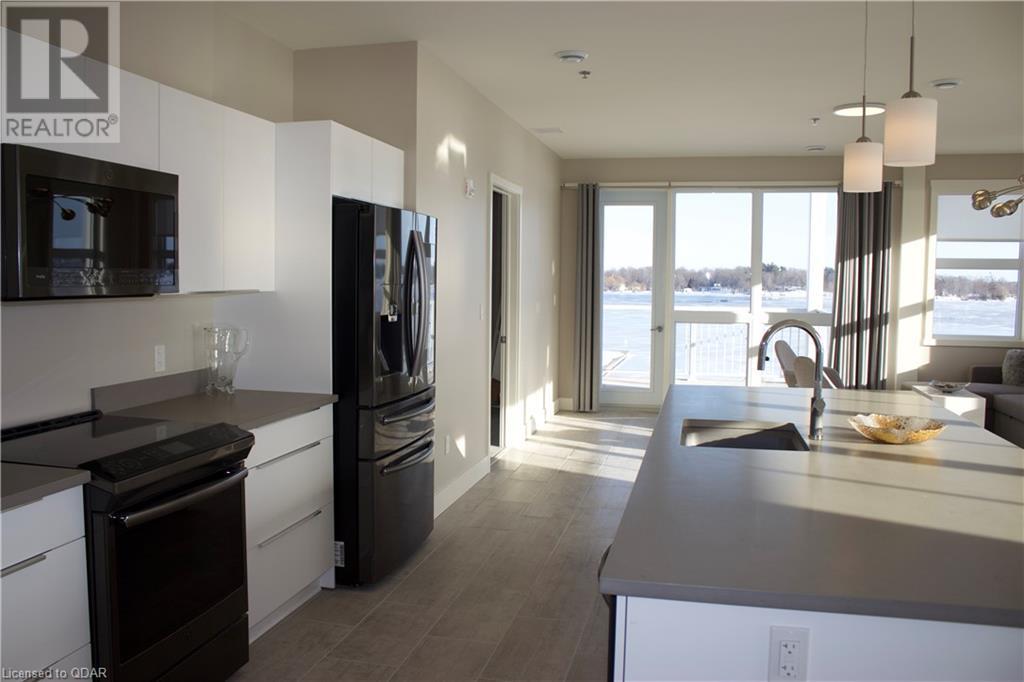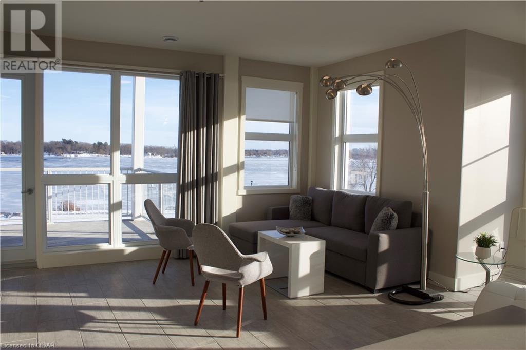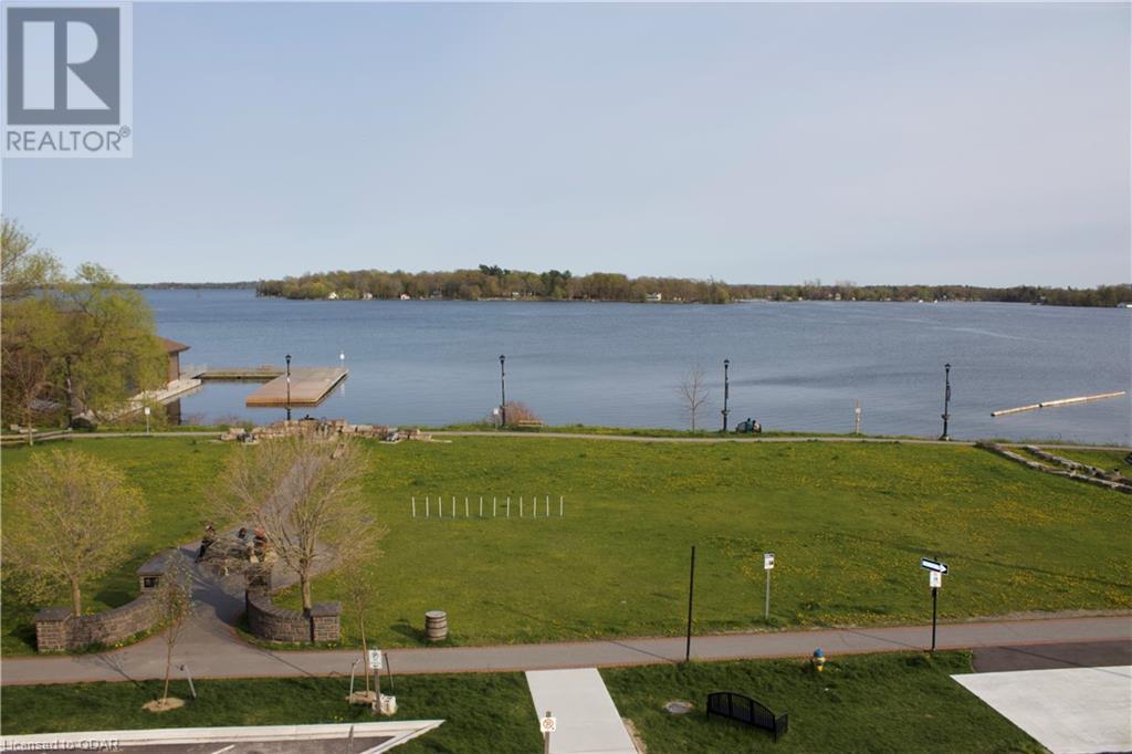 This South-Westernly corner unit provides panoramic views from sun-up to sundown. This open concept unit has floor-to ceiling windows that provide incredible views of the mighty St.Lawrence River. The kitchen is equipped with high end appliances, modern cabinets, and a oversized functional island boasting a gorgeous Caesarstone Quartz counter-top. From the Primary bedroom you will find an ample sized walk-through closet, that leads you into the en-suite washroom boasting a tiled double shower enclosed with sliding glass doors. There are floor to ceiling windows and patio doors that will lead you from the Primary Bedroom to the glass enclosed balcony. This exceptionally large balcony is equipped with a gas BBQ hook-up, and plenty of room for your outdoor furniture. During the summer months, you can enjoy a front row seat from your very own balcony to the outdoor concerts/festivities that occur on a weekly basis in Joel Stone Park. The Municipal Marina is located just a short walk from the building, as well as the complimentary boat launch. Just outside your door you will find walking paths, a lovely park with a playground, beach, boat docking, as well as coffee & ice cream shops. Walking distance to several restaurants, shops, and entertainment. Come and make the Heart of the Thousand Islands your new home! (id:22211)