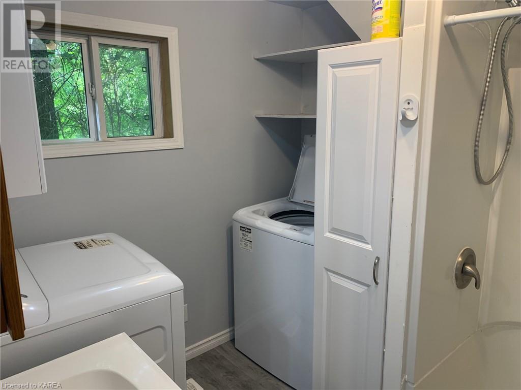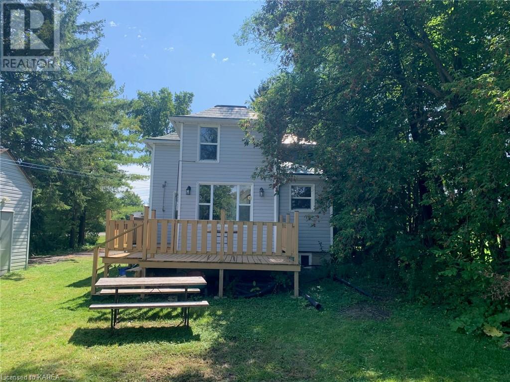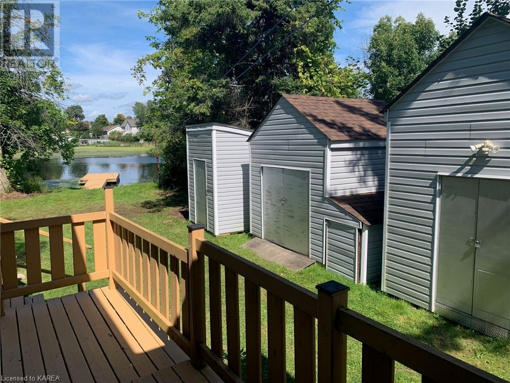 Amazing opportunity to own a lovely home on a gorgeous lot with 60 ft of waterfront on the Gananoque River. Offering a natural shoreline with your own private dock and a boat launch right next door. Canoe, kayak or use your small boat right off your own property to explore and enjoy the many qualities of the Gananoque River (great fishing and lots of natural wildlife). The 2 storey home offers 3 bedrooms and 2 full baths with a metal and membrane roofing system, updated vinyl double hung windows and a force air gas furnace (approx 6 years old) which is also compatible for central air conditioning. The kitchen at the rear of the home is an updated oak kitchen with ample counter and cupboard space and an unobstructed view of the River. Both bathrooms have been updated as well. A large front porch for entry and a huge rear deck over looking the water and offering a long clothesline and 3 large sheds for storage. All appliances included. (id:22211)