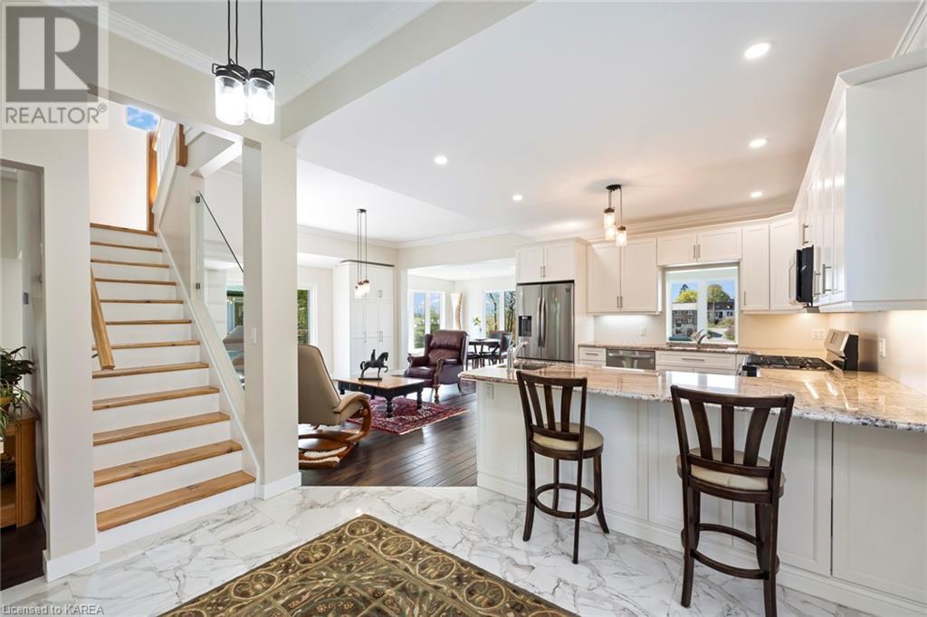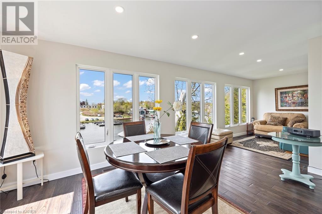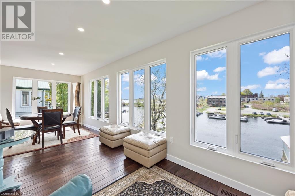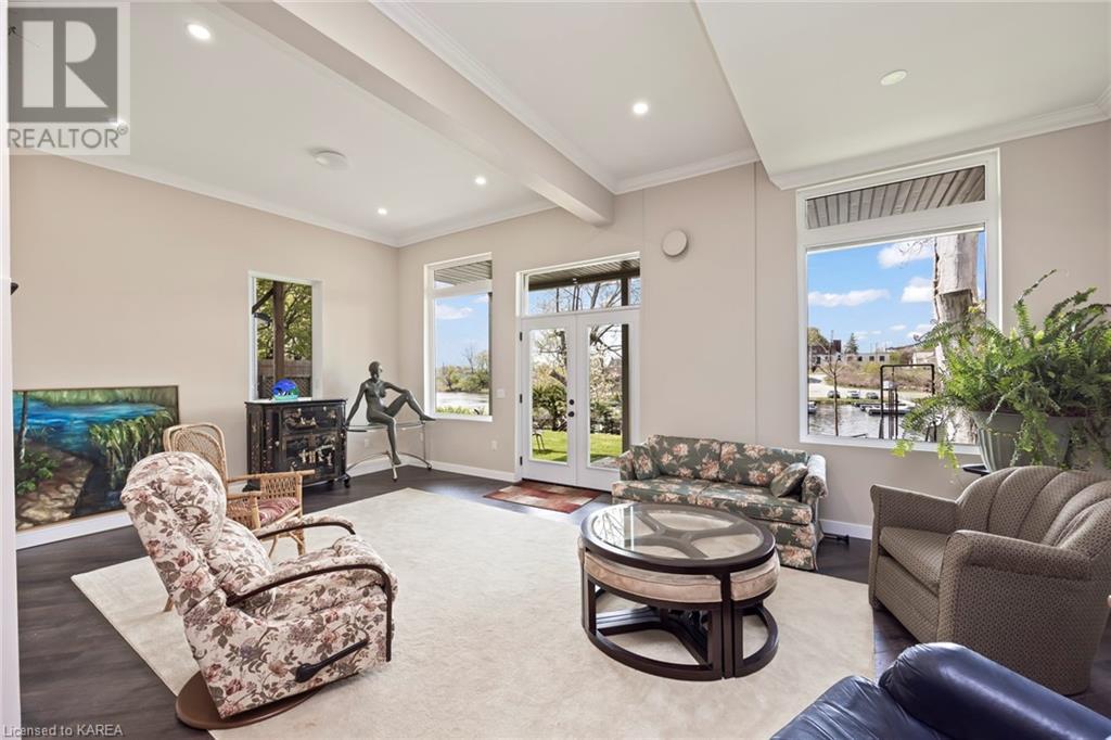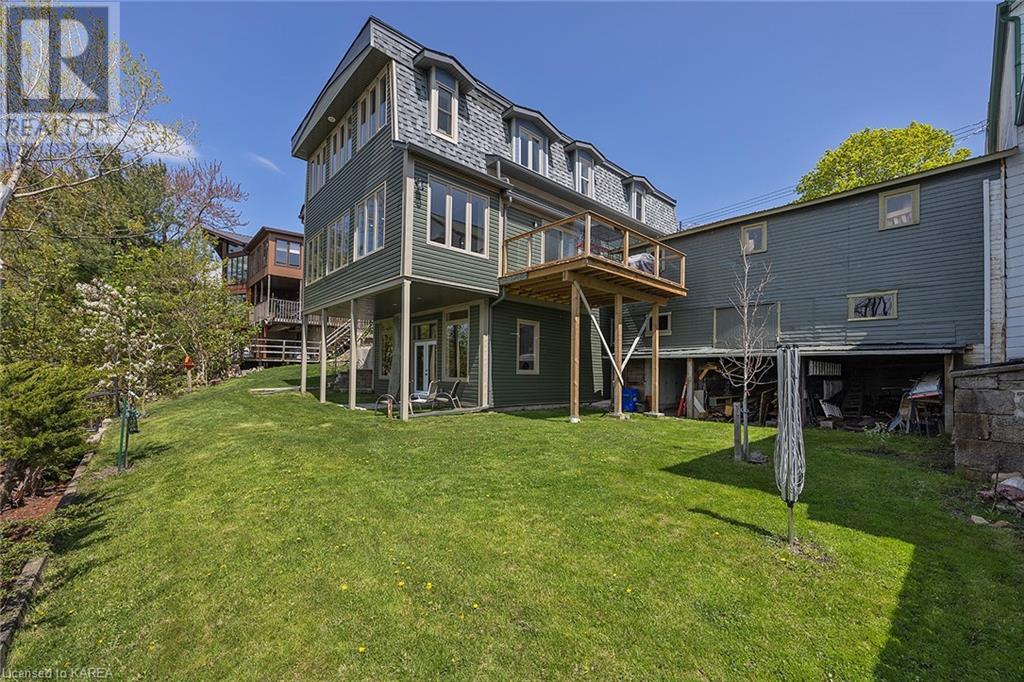 When the ordinary simply won’t do! Welcome to 350 Stone Street South. Completely renovated in 2020 through 2022, this stately two story is exceptionally gracious. This custom-built home welcomes everyone with a level entry and an open concept, carpet free main floor. The massive Living and Dining Rooms are perfect for entertaining. There’s no telling what you might cook up in this dream kitchen that features unending storage space and built in appliances. Arguably the most stunning part of the main level, is the sitting room where you can enjoy the sunlight from the wall of windows while you take in the view of the landscaped yard and the Gananoque River. The original staircase has been salvaged and allows access to the second floor where you will find two large bedrooms and a gorgeous four-piece main bathroom. The massive Primary suite is tranquil and elegant complete with a five piece ensuite, walk in closet and a flex space with a solarium like feel. The walk out lower level of this home includes a utility room housing the new Forced Air Gas Furnace and Hot water tank, as well as storage areas and another two-piece powder room. The grand Recreation Room with incredible windows and access to the yard is nothing short of spectacular. The Carriage House with its rustic charm has approval permitting an interior addition of a 27 x 18. Serenity best describes the outdoor spaces at this home. From decks to sitting areas, gardens to green space, it’s all here. Make your way to the shoreline and find a double slip boathouse with boat lift and workshop area to hold all your water toys. After all you’re just a two-minute boat ride away from the St. Lawrence River. This home has been thoughtfully and tastefully renovated and customized with creative details throughout. An extensive list of renovations is included in the documents section. (id:22211)
