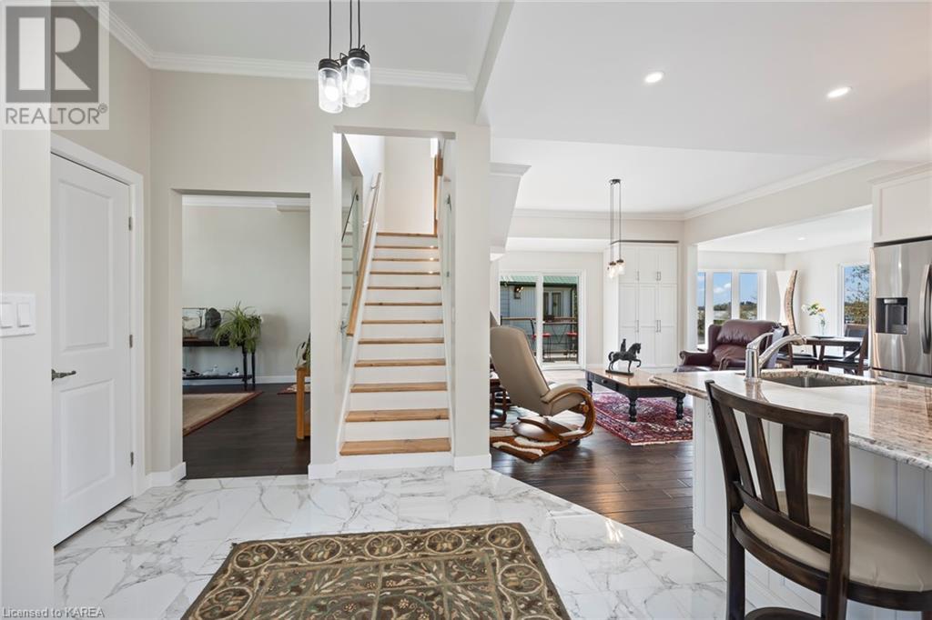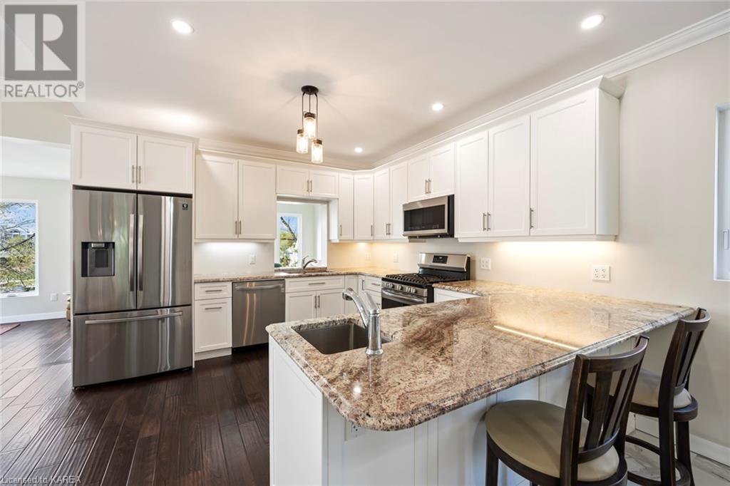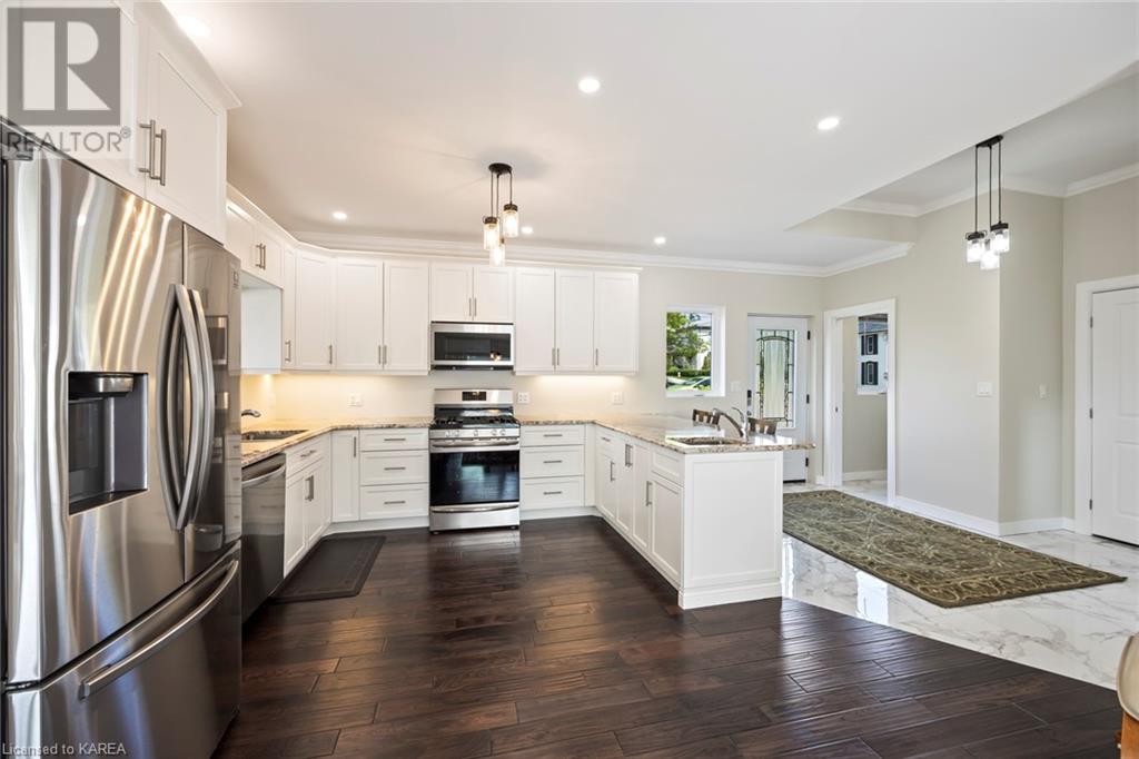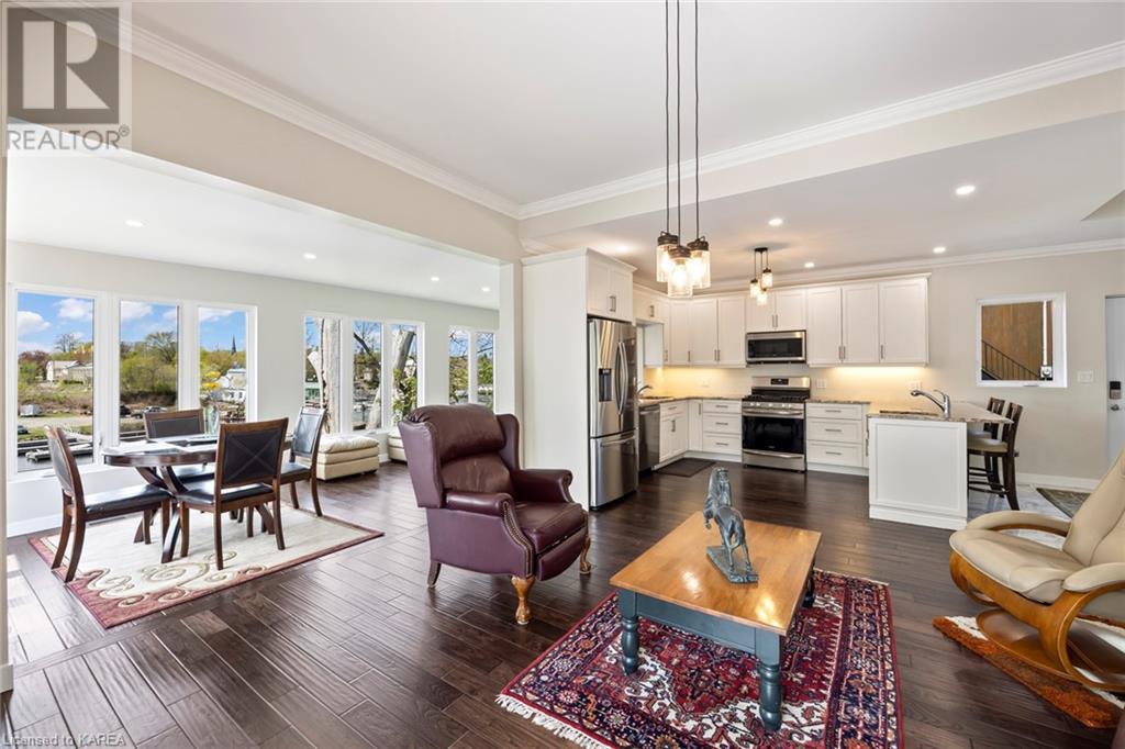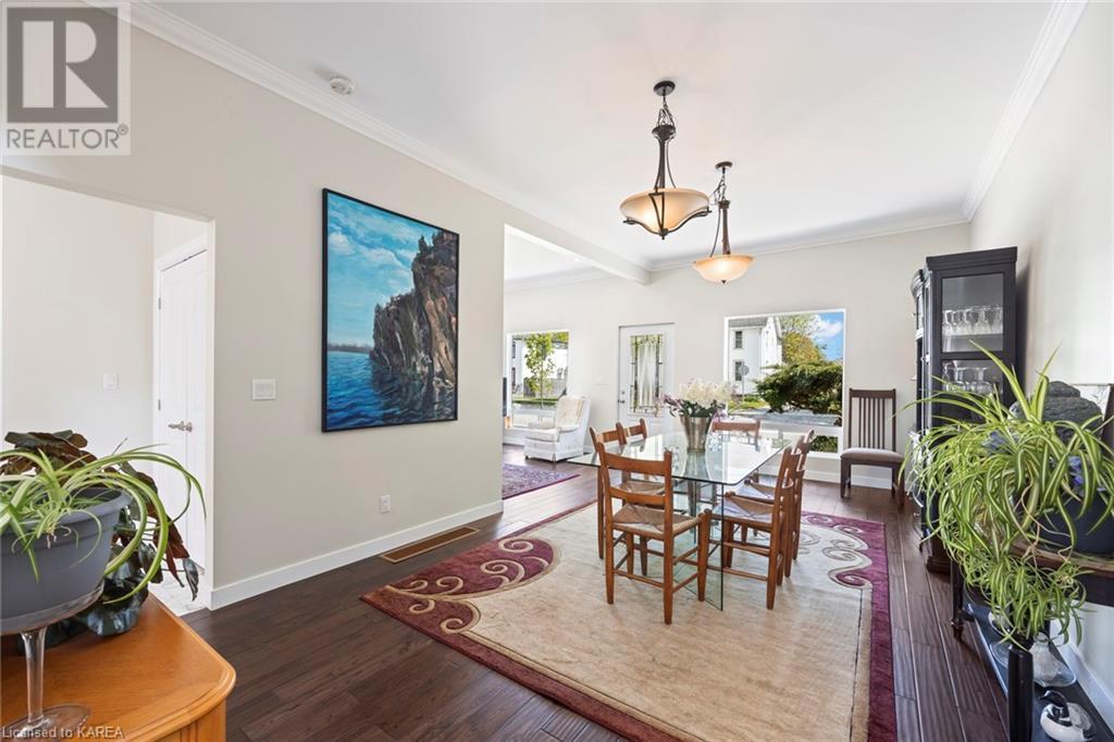 When the ordinary simply won’t do! Welcome to 350 Stone Street South. Completely renovated in 2020 through 2022, this stately two story is exceptionally gracious. This custom-built home welcomes everyone with a level entry and an open concept, carpet free main floor. The massive Living and Dining Rooms are perfect for entertaining. There’s no telling what you might cook up in this dream kitchen that features unending storage space and built in appliances. Arguably the most stunning part of the main level, is the sitting room where you can enjoy the sunlight from the wall of windows while you take in the view of the landscaped yard and the Gananoque River. The original staircase has been salvaged and allows access to the second floor where you will find two large bedrooms and a gorgeous four-piece main bathroom. The massive Primary suite is tranquil and elegant complete with a five piece ensuite, walk in closet and a flex space with a solarium like feel. The walk out lower level of this home includes a utility room housing the new Forced Air Gas Furnace and Hot water tank, as well as storage areas and another two-piece powder room. The grand Recreation Room with incredible windows and access to the yard is nothing short of spectacular. The Carriage House with its rustic charm has approval permitting an interior addition of a 27 x 18. Serenity best describes the outdoor spaces at this home. From decks to sitting areas, gardens to green space, it’s all here. Make your way to the shoreline and find a double slip boathouse with boat lift and workshop area to hold all your water toys. After all you’re just a two-minute boat ride away from the St. Lawrence River. This home has been thoughtfully and tastefully renovated and customized with creative details throughout. An extensive list of renovations is included in the documents section. (id:22211)