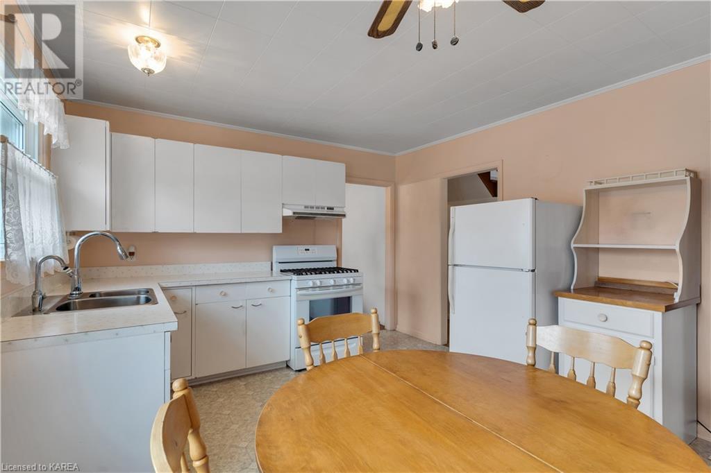 Welcome to 39 Robertson Road, Gananoque. This charming 1.5 storey home sits on a beautiful lot just outside the gates of Gananoque, the gateway to the 1000 Islands. Minutes from shopping, restaurants, entertainment, and the 401 corridor for easy commutes, this home is ideally situated for those looking to be close to the conveniences town has to offer. The main floor offers an eat in kitchen, separate dining room, large living room, full 4 pc bathroom, and 2 bedrooms. The second floor offers another 2 bedrooms, and a convenient 4 pc bathroom. The basement offers a full laundry room, mechanical room, and potential large rec-room. Off of the kitchen you will find a 3 season room, ideal for relaxing after a long day. The attached 1 car garage also offers room for workshop and storage. Call today to arrange your private viewing. (id:22211)