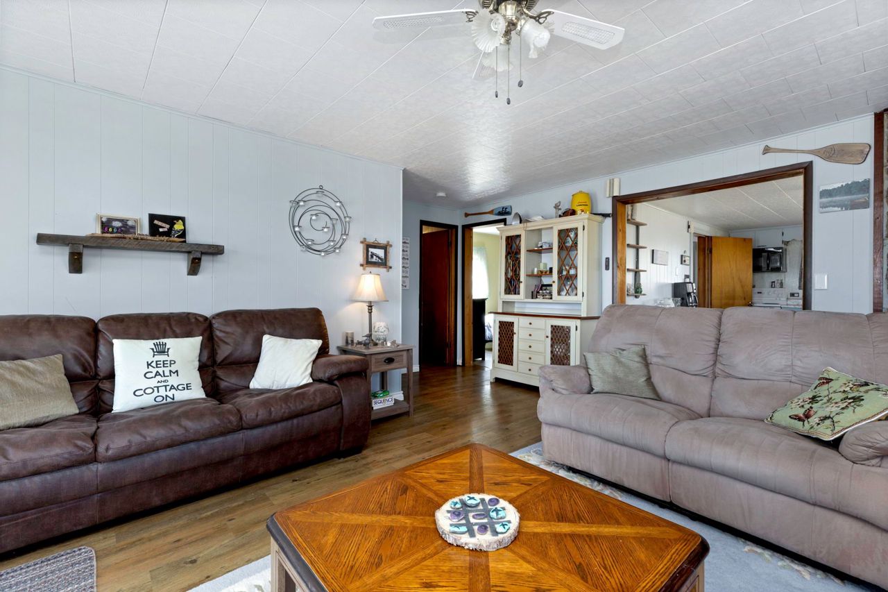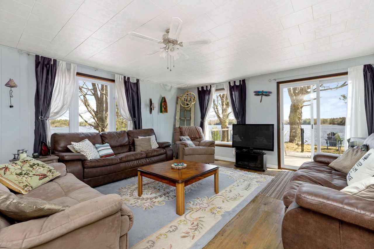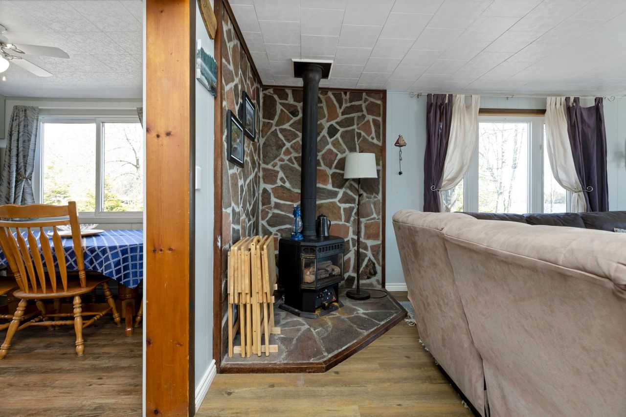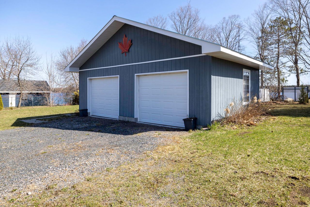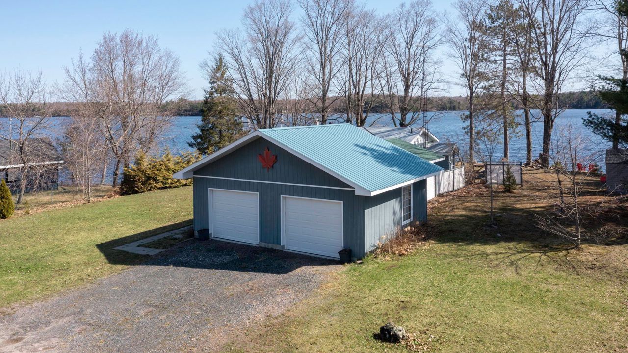 Year round living on Stewart Lake! Expansive and picturesque waterfront views with 125' shoreline offering a rock shelf and deeper water, with only a few stairs to the dock. Many sitting areas at the cottage and along the waterfront to enjoy the East view with family and friends. Level lot with easy access off the year round, municipal road to this cute well maintained 2 bedroom, 1 bath cottage, bunkie and newer two car garage. Many upgrades have been completed including newer floors, furnace and central air with a full feature sheet available for many more improvements. Need more room, the bunkie is perfect for overflow guests. Two car garage offers extra storage and has a separate electrical panel. Full municipal services and close to many amenities in Mactier offering a wonderful opportunity for your cottage enjoyment or year round living. You can have it all!