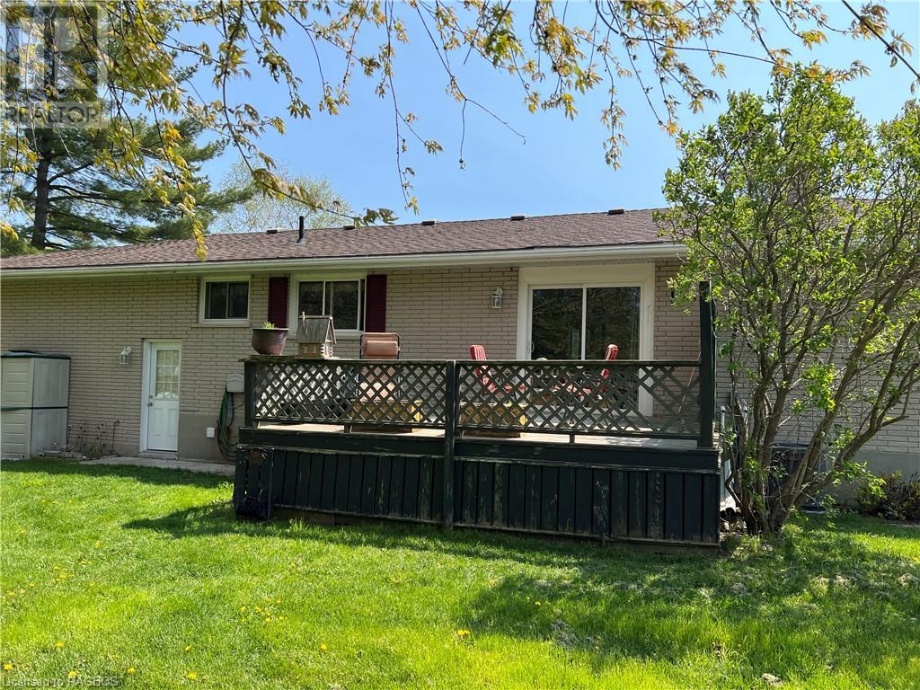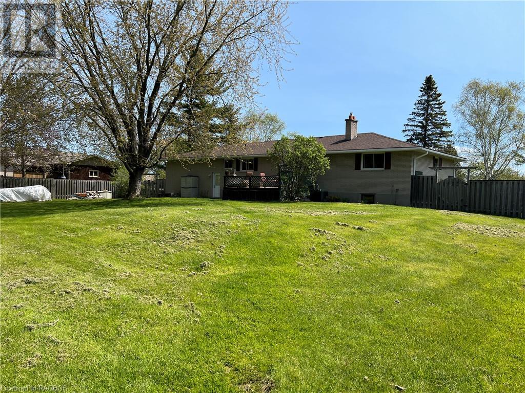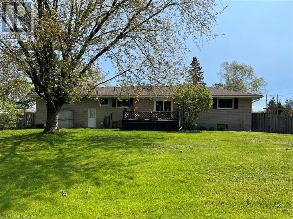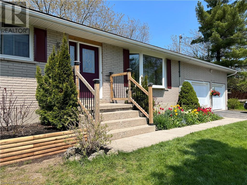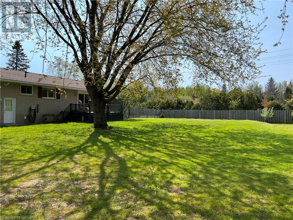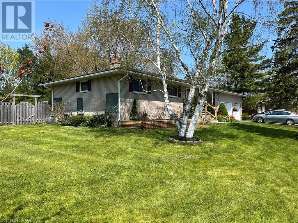 Wonderful large bungalow on a gorgeous lot in Georgian Bluffs. Located minutes from the shops and amenities of Owen Sound, this charming bungalow is situated on a half acre lot with beautiful trees and gardening space. The main level features two living rooms and a lovely kitchen. Enjoy views of the fully fenced rear yard from the family room/dining area. The family room features a cozy gas fireplace. This property has fabulous potential with a full inlaw/income suite in the lower level with separate access from the garage. The private suite features a generous sized great room, large eat in kitchen, two bedrooms and a full bath. The suite can be accessed from the garage. The ample sized 2 car garage is well insulated and has plenty of space for extra storage. Outside, the gardens are watered efficiently from a pump system from the rain barrel. Privacy is key with the fully fenced corner lot. It is a little oasis in an urban area. Located near Keppel Sarawak school, this is a fabulous family home. (id:22211)