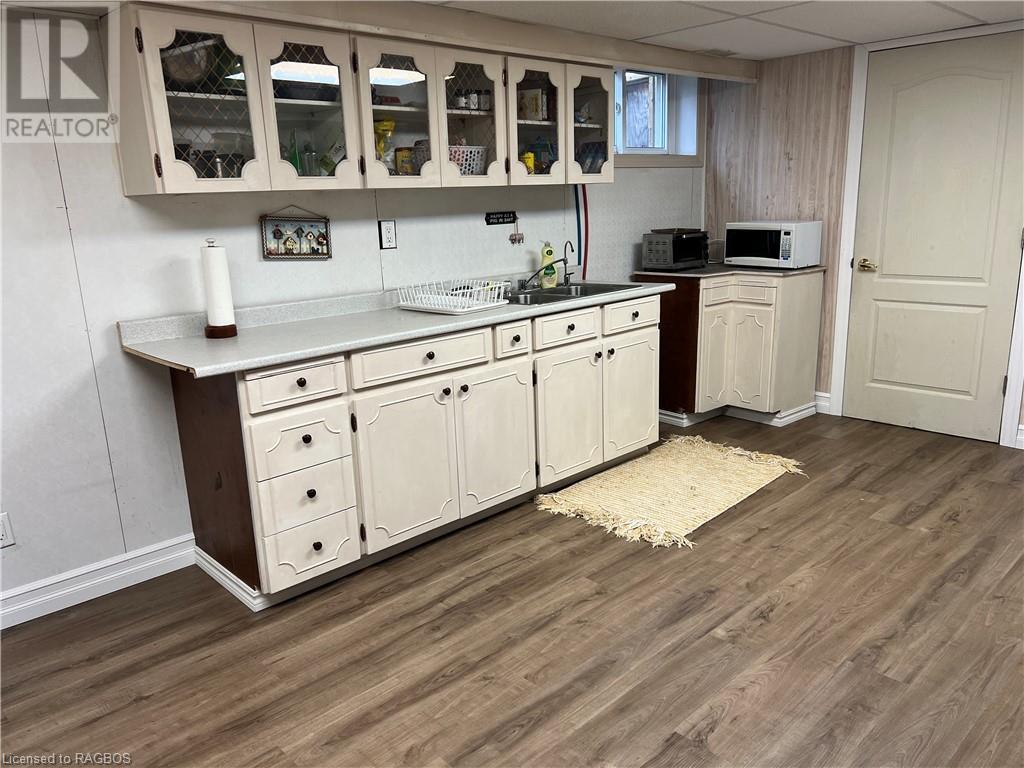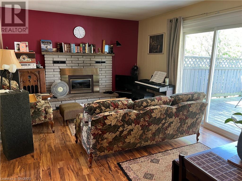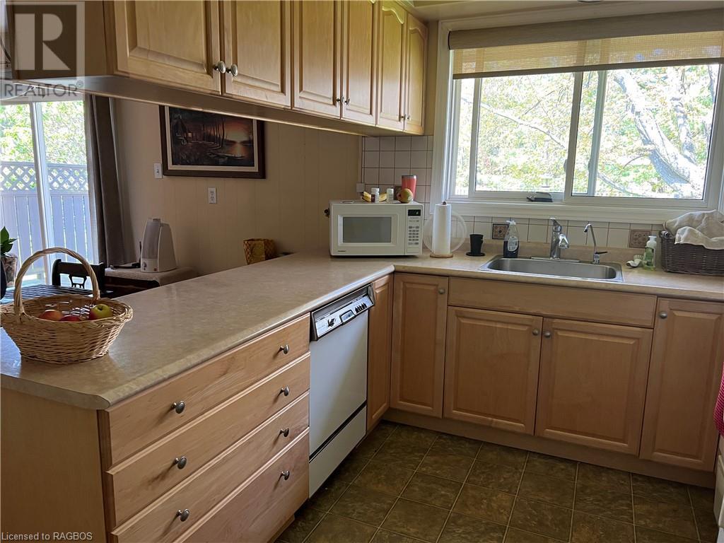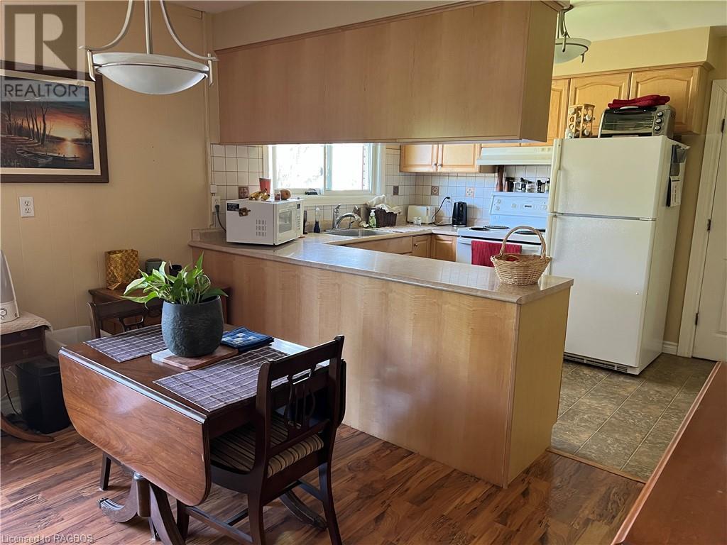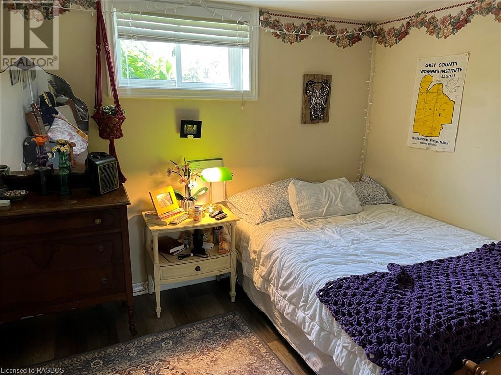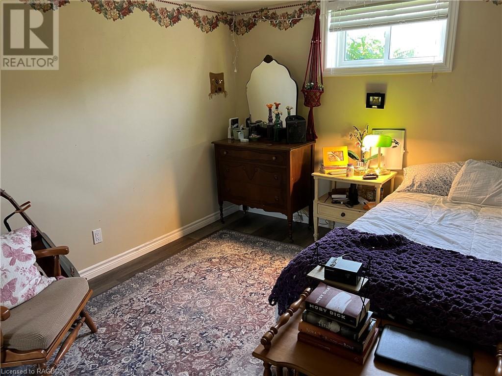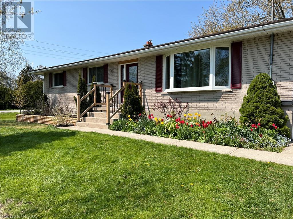 Wonderful large bungalow on a gorgeous lot in Georgian Bluffs. Located minutes from the shops and amenities of Owen Sound, this charming bungalow is situated on a half acre lot with beautiful trees and gardening space. The main level features two living rooms and a lovely kitchen. Enjoy views of the fully fenced rear yard from the family room/dining area. The family room features a cozy gas fireplace. This property has fabulous potential with a full inlaw/income suite in the lower level with separate access from the garage. The private suite features a generous sized great room, large eat in kitchen, two bedrooms and a full bath. The suite can be accessed from the garage. The ample sized 2 car garage is well insulated and has plenty of space for extra storage. Outside, the gardens are watered efficiently from a pump system from the rain barrel. Privacy is key with the fully fenced corner lot. It is a little oasis in an urban area. Located near Keppel Sarawak school, this is a fabulous family home. (id:22211)