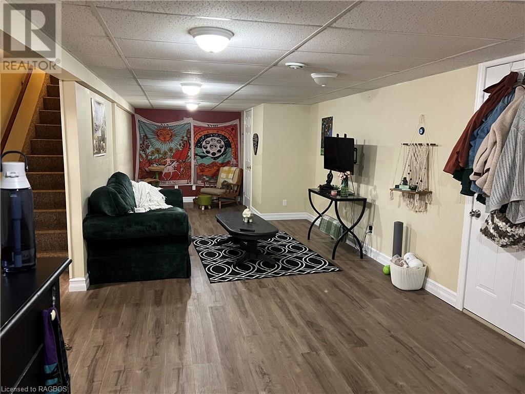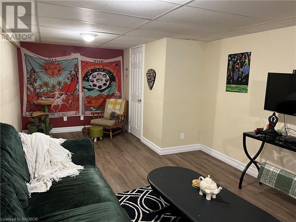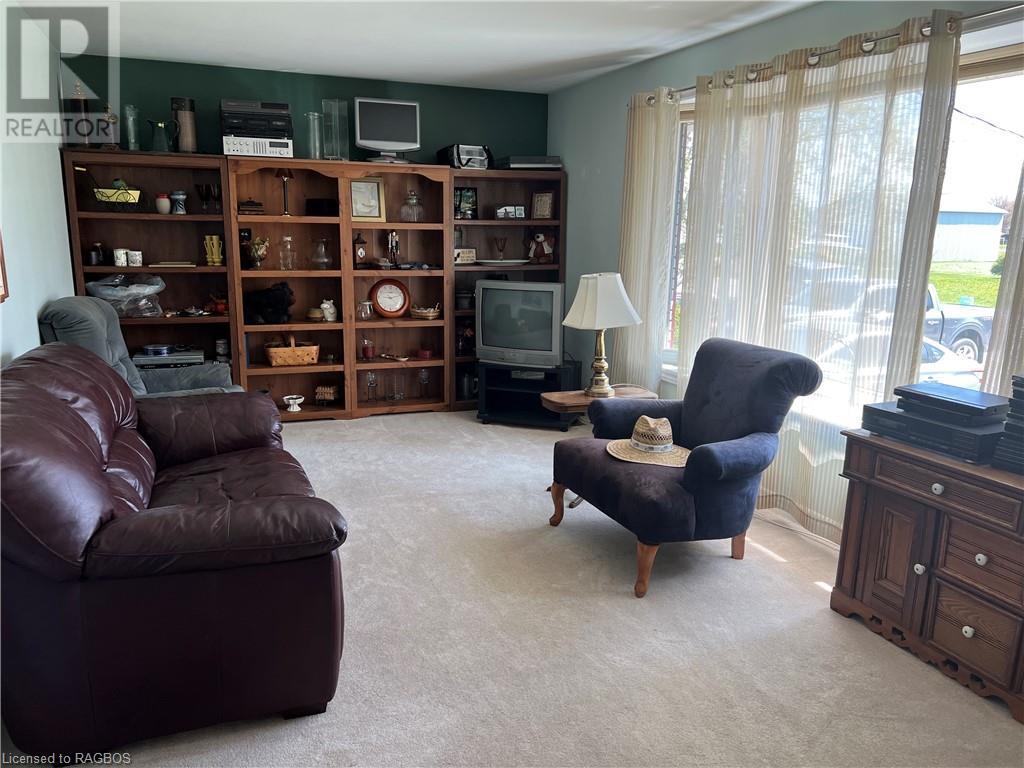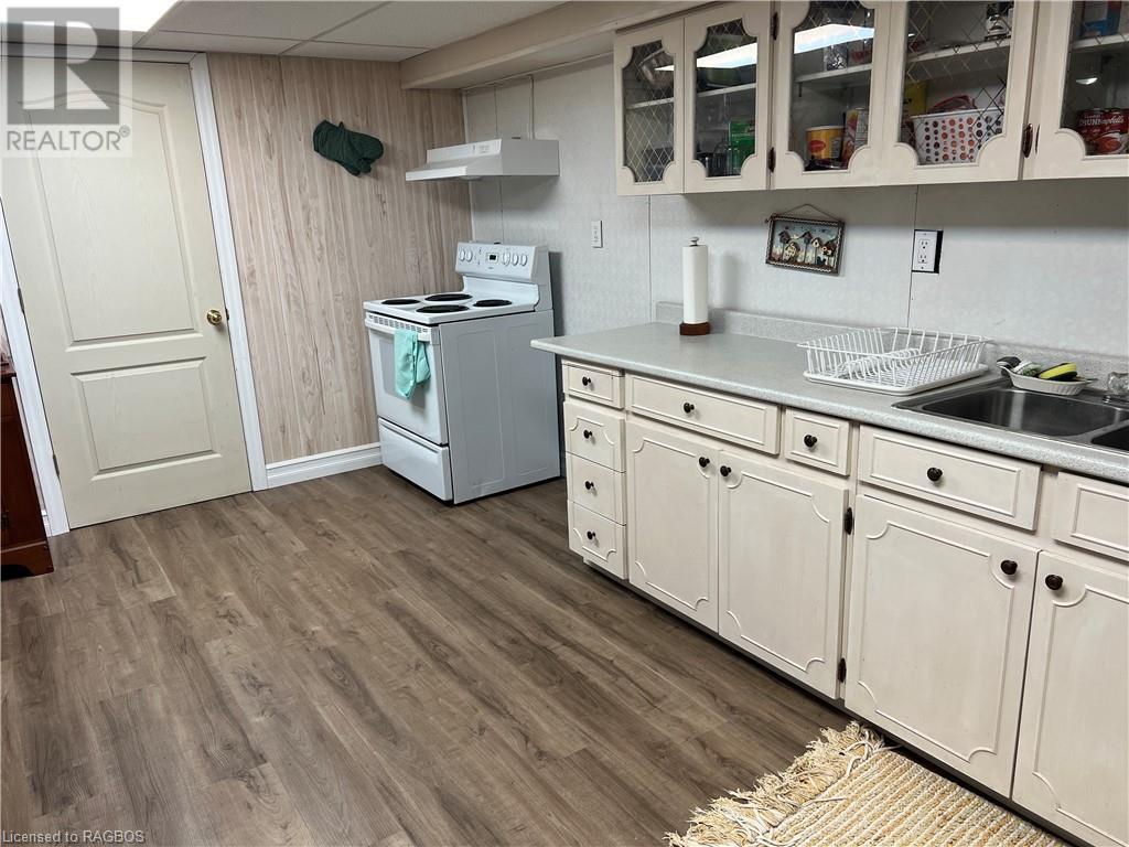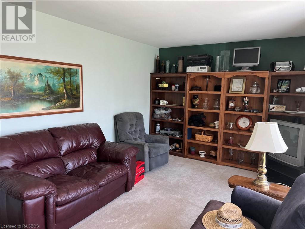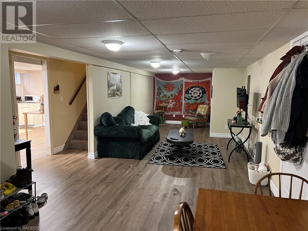 Wonderful large bungalow on a gorgeous lot in Georgian Bluffs. Located minutes from the shops and amenities of Owen Sound, this charming bungalow is situated on a half acre lot with beautiful trees and gardening space. The main level features two living rooms and a lovely kitchen. Enjoy views of the fully fenced rear yard from the family room/dining area. The family room features a cozy gas fireplace. This property has fabulous potential with a full inlaw/income suite in the lower level with separate access from the garage. The private suite features a generous sized great room, large eat in kitchen, two bedrooms and a full bath. The suite can be accessed from the garage. The ample sized 2 car garage is well insulated and has plenty of space for extra storage. Outside, the gardens are watered efficiently from a pump system from the rain barrel. Privacy is key with the fully fenced corner lot. It is a little oasis in an urban area. Located near Keppel Sarawak school, this is a fabulous family home. (id:22211)