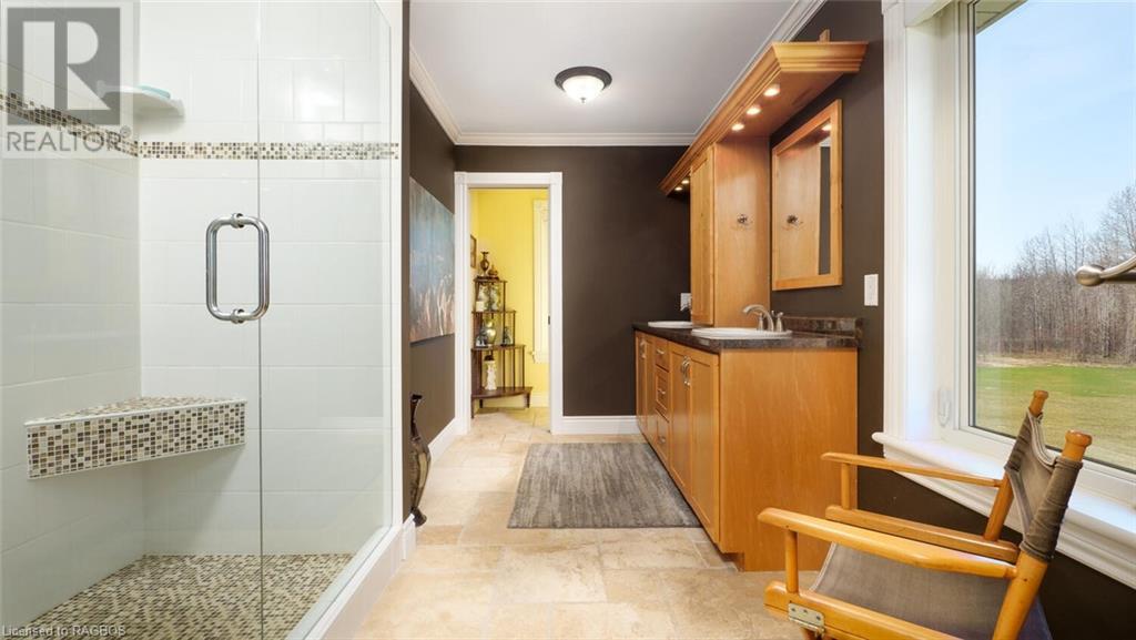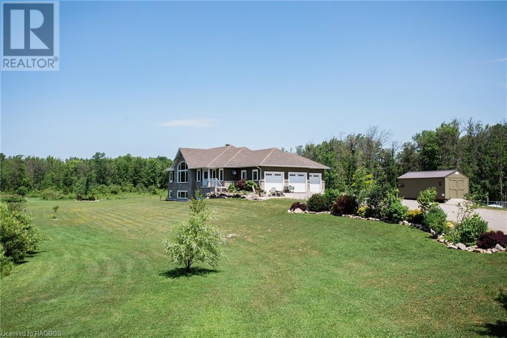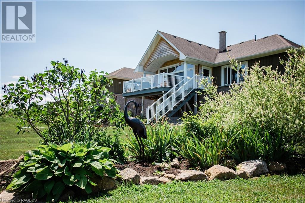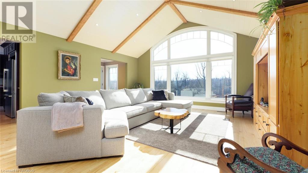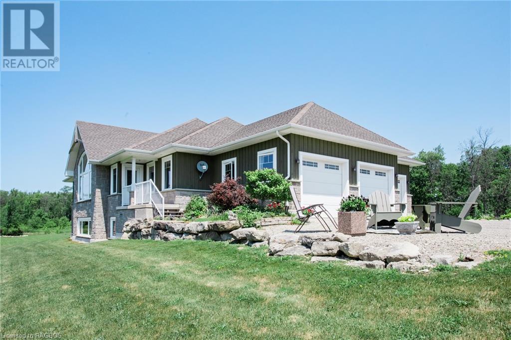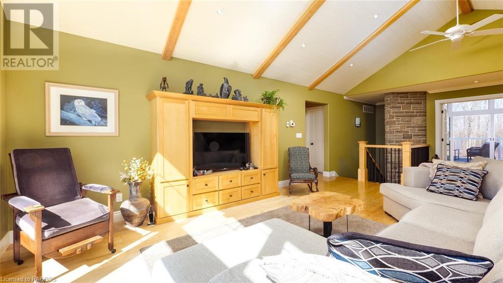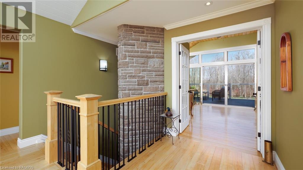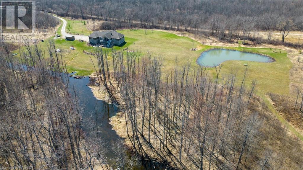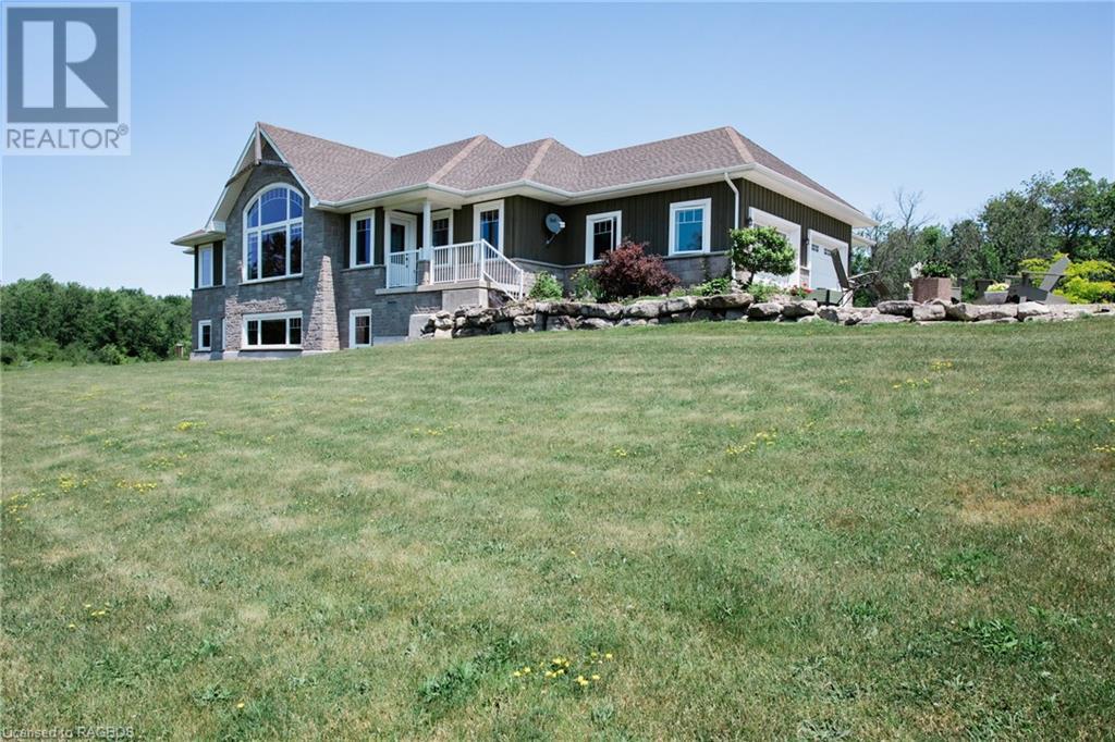 Enjoy this private paradise on 99.6 acres with trails throughout and an outstanding custom built stone home, just a few minutes from town! Open concept main living area with a dream chef's kitchen & walk-in pantry, dining area, sunroom & a great room with vaulted ceilings, all with fabulous views of the river, woods, and landscaped grounds. Main floor primary bedroom with 3 pc ensuite and walk-in closet, a 2nd bedroom, 4 pc bathroom; foyer & mudroom entry from heated 3 car garage. Lower level family room with bar and fireplace. Two bedrooms, exercise, office, cold room, utility/laundry room, wood storage. Walk-out to patio & hot tub! The trails meander along the river, through forests and meadows. Enjoy your acreage year round - horseback riding, walking, snowshoeing, xc skiing, or ATV'ing. Large pond, lovely gardens & fruit trees. The varied landscape creates a birder's paradise for viewing a multitude of species. The Indian River runs along the length of the property: fish, canoe or kayak. The home has spacious rooms, fabulous views of the countryside and river, and is located on a paved road 15 min to Owen Sound or Wiarton. Call your REALTOR® today to view this wonderful property! (id:22211)