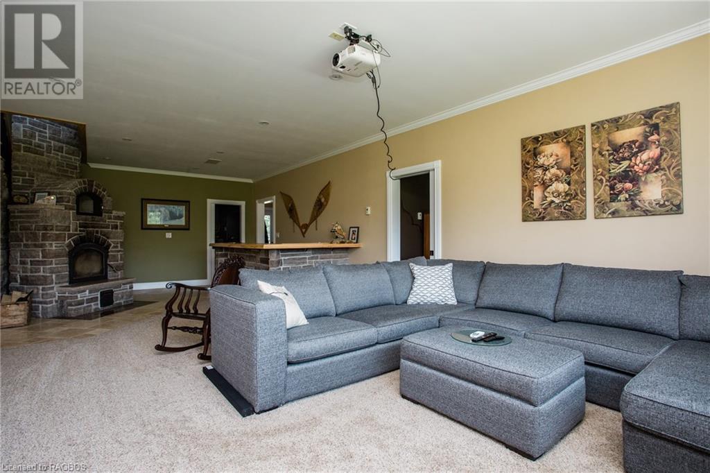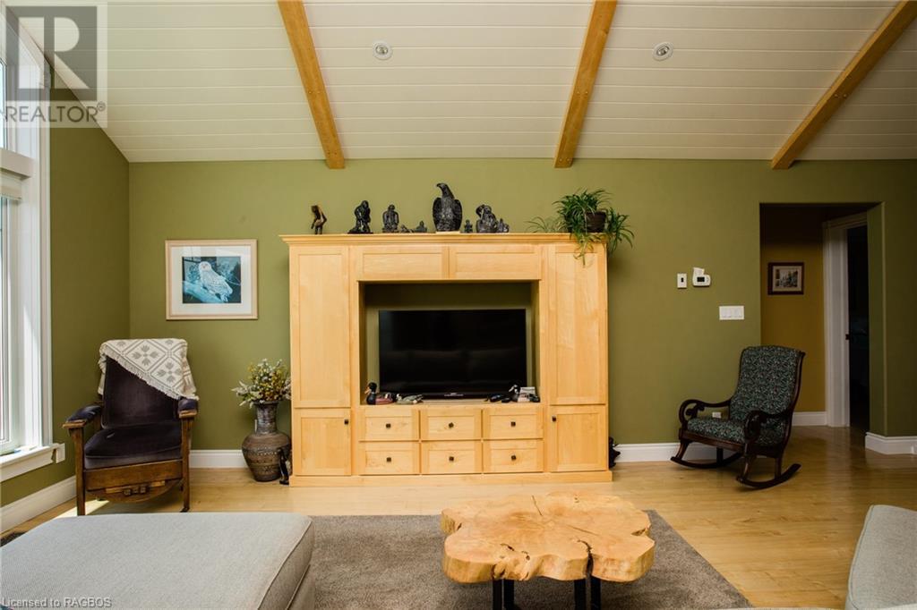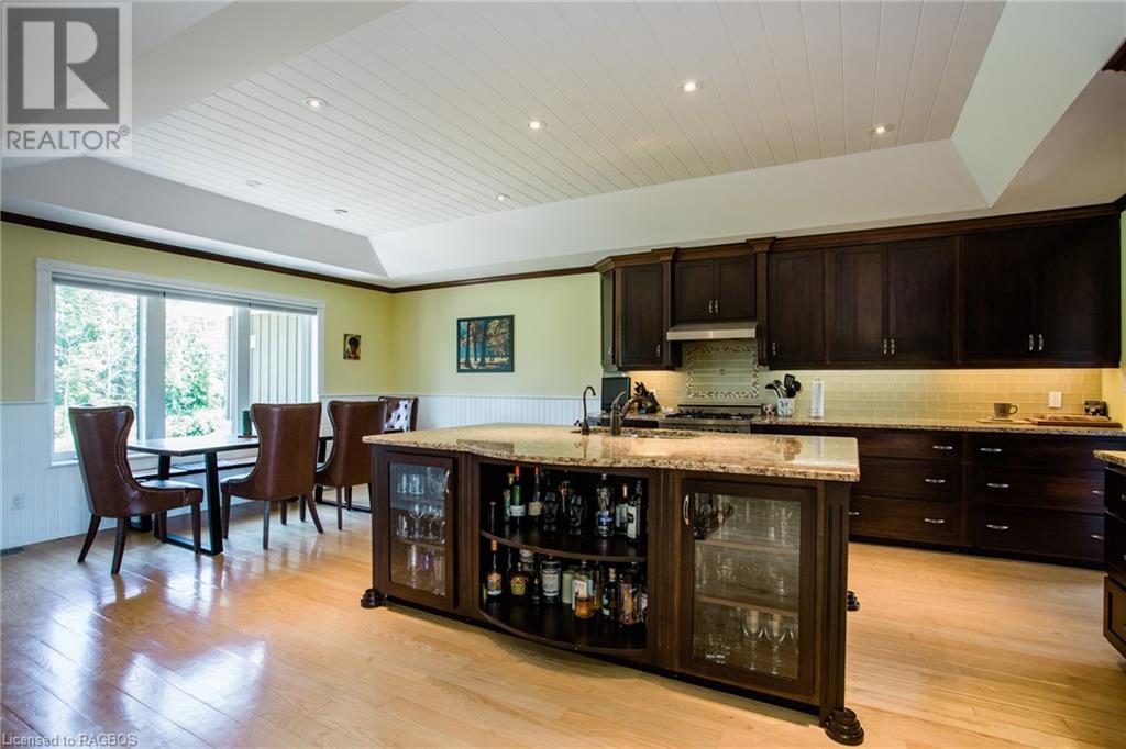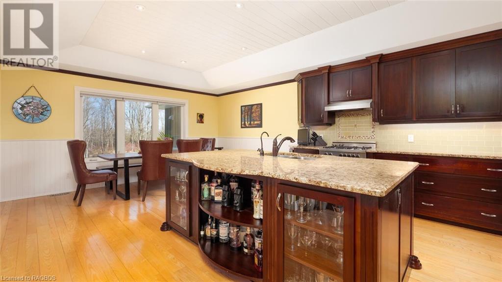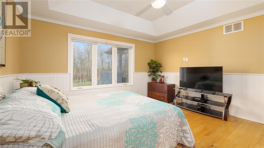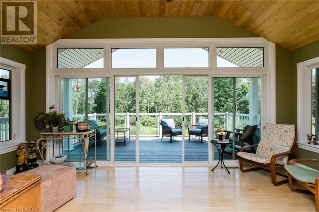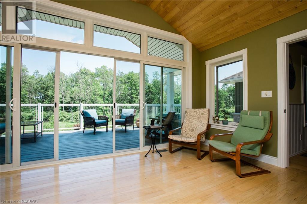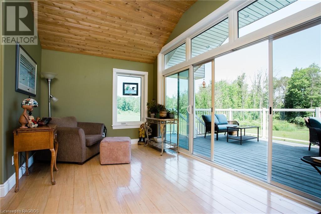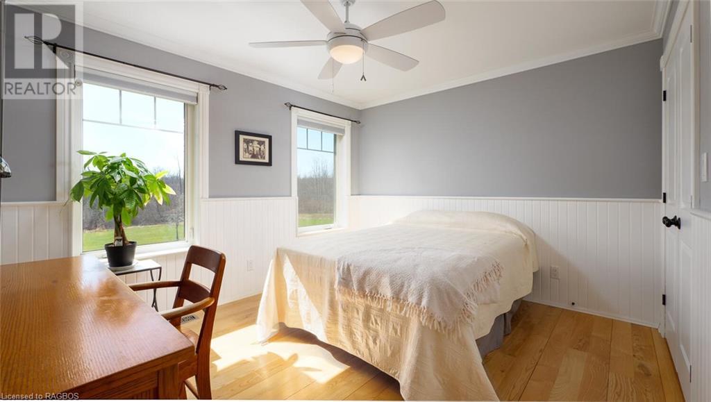 Enjoy this private paradise on 99.6 acres with trails throughout and an outstanding custom built stone home, just a few minutes from town! Open concept main living area with a dream chef's kitchen & walk-in pantry, dining area, sunroom & a great room with vaulted ceilings, all with fabulous views of the river, woods, and landscaped grounds. Main floor primary bedroom with 3 pc ensuite and walk-in closet, a 2nd bedroom, 4 pc bathroom; foyer & mudroom entry from heated 3 car garage. Lower level family room with bar and fireplace. Two bedrooms, exercise, office, cold room, utility/laundry room, wood storage. Walk-out to patio & hot tub! The trails meander along the river, through forests and meadows. Enjoy your acreage year round - horseback riding, walking, snowshoeing, xc skiing, or ATV'ing. Large pond, lovely gardens & fruit trees. The varied landscape creates a birder's paradise for viewing a multitude of species. The Indian River runs along the length of the property: fish, canoe or kayak. The home has spacious rooms, fabulous views of the countryside and river, and is located on a paved road 15 min to Owen Sound or Wiarton. Call your REALTOR® today to view this wonderful property! (id:22211)
