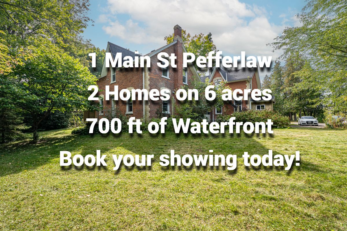 Peace and tranquility- You want it - You deserve it - Now you can have it! This property can only be described one way ZEN-CREDIBLE! Come by and walk the grounds, admire the views, and listen to the sounds of the river. Enjoy kayaking or water tubing by day, and roasting marshmallows on the fire-pit down by the river at night. This property comes with two homes and a potential 3rd that calls out to be an amazing tiny house or AirBnB. The main house is a charming 3,665 sq ft century home with 6 bedrooms and a huge main level, perfect for entertaining. The 2nd home is a beautifully renovated 2 bedroom bungalow. The 3rd, is the historic 2 level dam keepers building, which is the perfect palate for your creation. If that's not enough. A section of the 700 foot long property could potentially be five future building lots (See attached survey). This can be the family compound you always wanted, or a home with two separate rental opportunities. The possibilities are truly endless!Only 1 hour away from downtown Toronto, and 30 minutes from Newmarket. DON'T MISS IT! Call your agent to book a showing. You'll fall in love with this property once you see it.