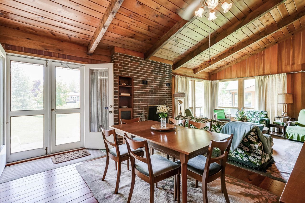 Wood Floor Overlook Water Brick Fireplace