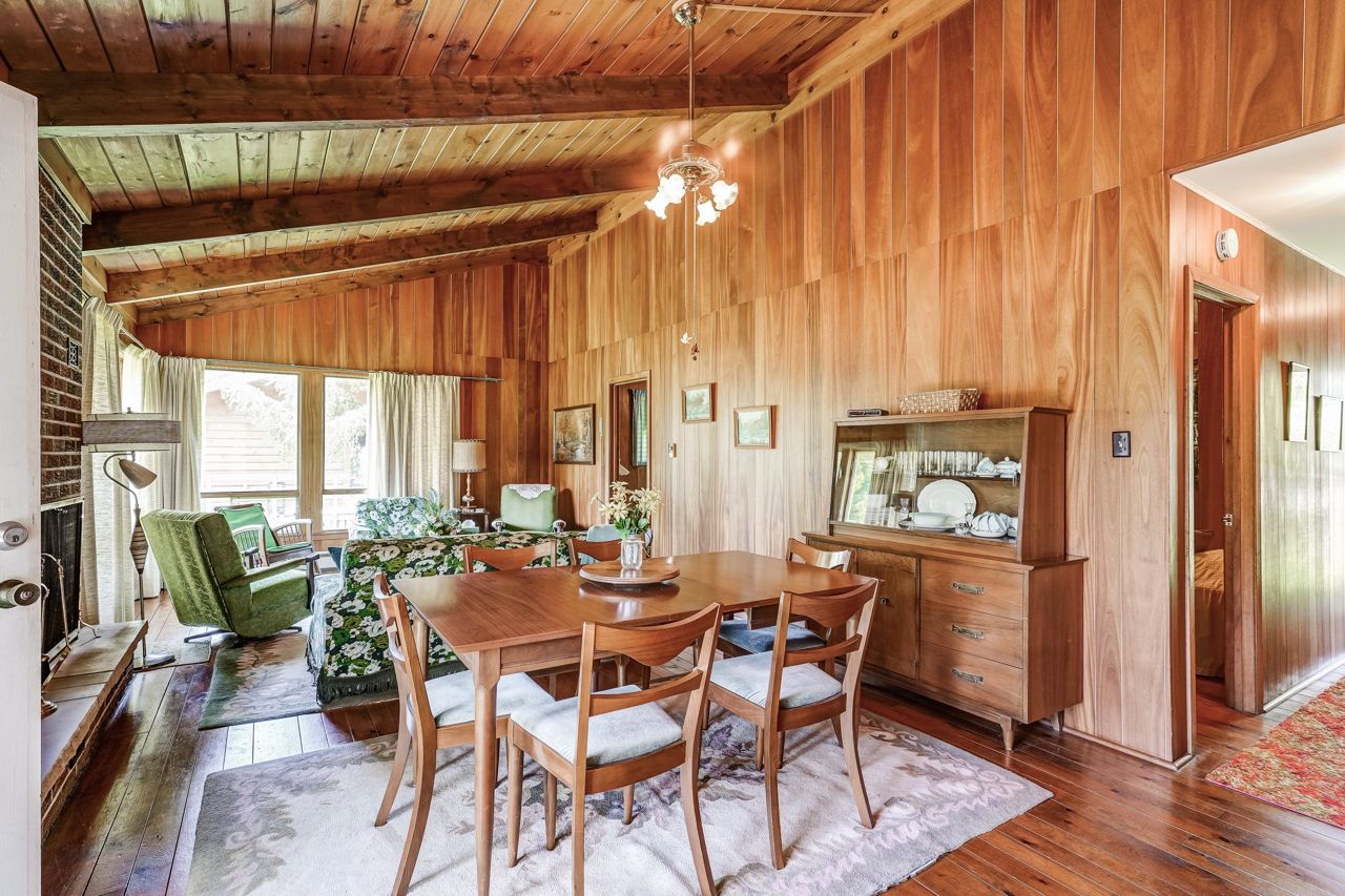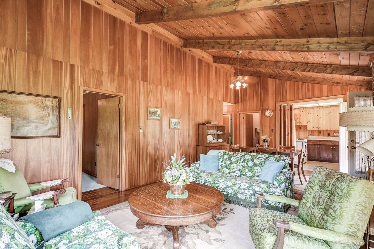 Wood Floor Open Concept Vaulted Ceiling