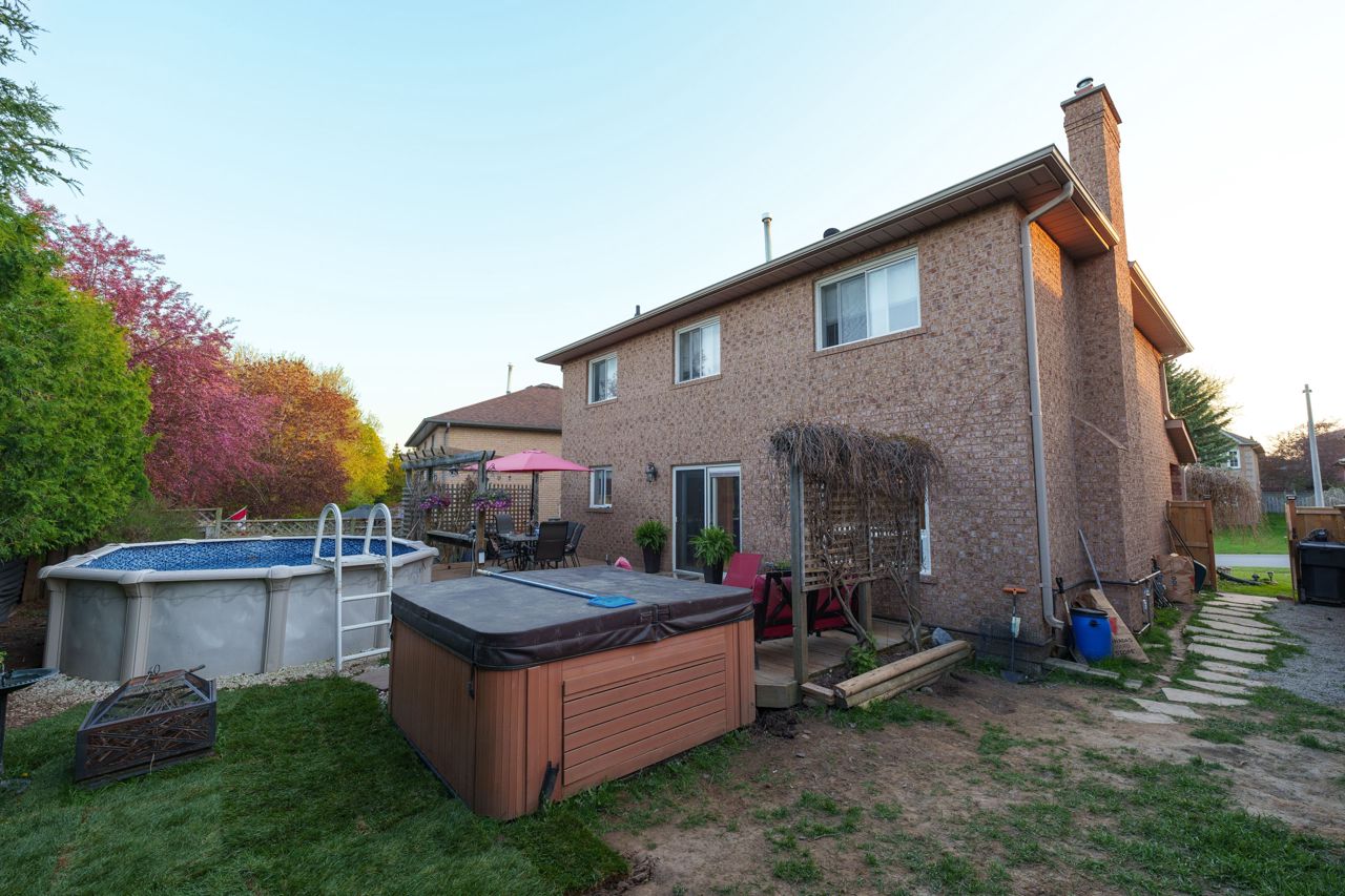 Welcome Home To This Well maintained 4Bdrm Home In Mature North End Area On Quiet Cresent. Short Walk To Lake & Schools. Home Features Modern Kitchen With S/S Appliances, Quartz Countertop,Farmer Sink,Ceramic & Hardwood Flrs On Main,Gas Fireplace In Fam Rm,Modern Washrooms,W/O To Deck Therapeutic Hot Tub,Heated 12'x18' Above Ground Pool. Large Primary Bdrm With Walk-In Closet,2nd 3rd & 4th Bdrm With Hardwood Flrs. Finished Rec Rm In Basement With Gas Fireplace, Washroom R/I , Walk Up Separate Entrance To Garage