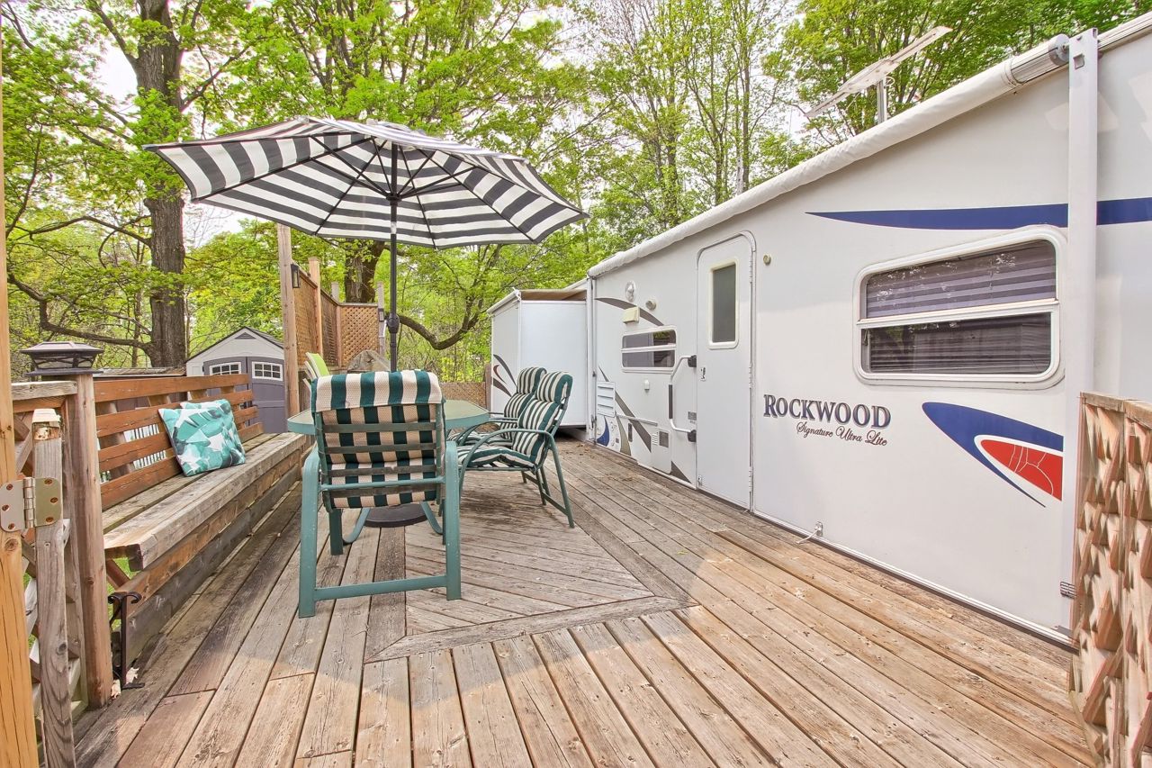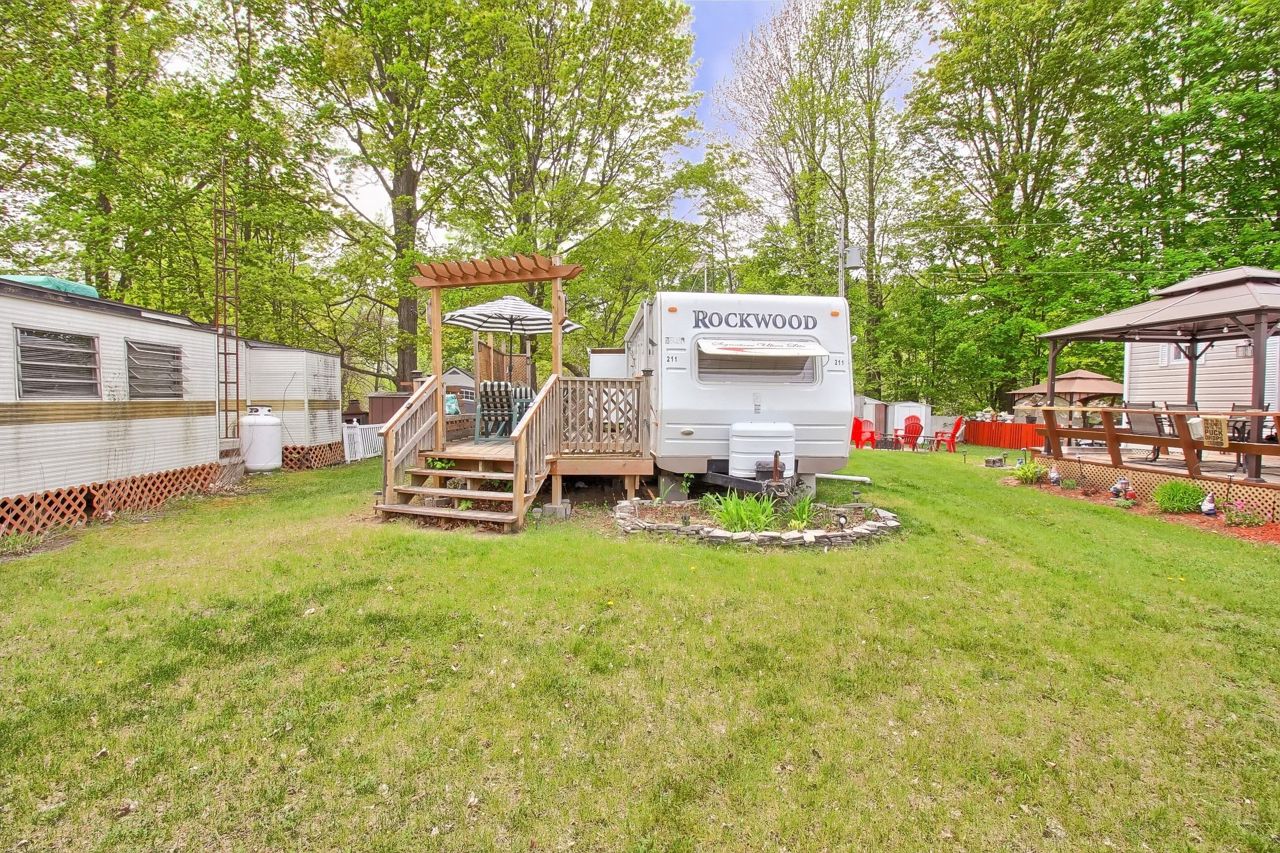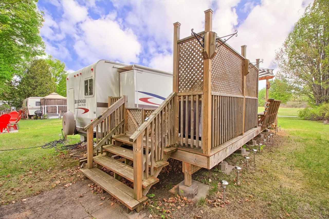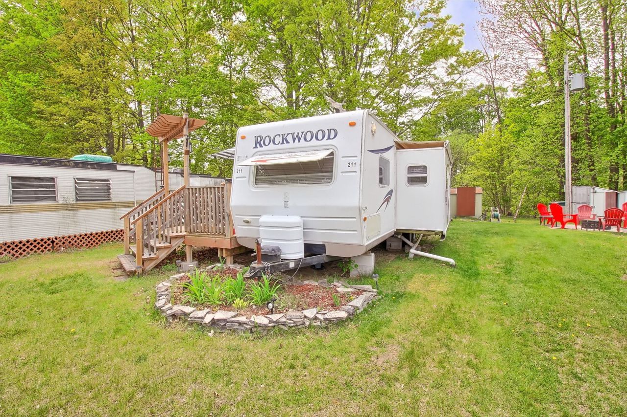 Immaculate '07 33 Foot Rockwood Travel Trailer Backing to Ravine & Fronting to Green Space! A little slice of paradise located off Hwy #48. Close to all amenities yet far enough away that you can sit back & enjoy nature at your doorstep! This seasonal landlease is located at Lyndhurst Park & Golf and offers an inground pool for use, is close to cycle/walking trails, lake/beach access & more. The Trailer has been lovingly maintained and can sleep up to 8 people. Enjoy balmy afternoons on the fenced deck w/built-in seating or on the back patio overlooking the ravine.1 Queen Bed, 1 Pull Out Sofa, Convertible Dining Area Bed. Double w/Retractable Bed Overhead.