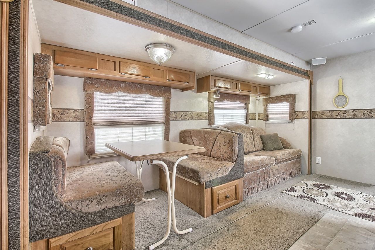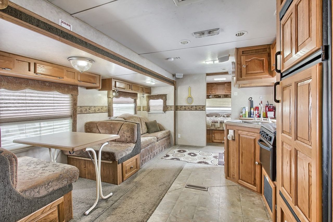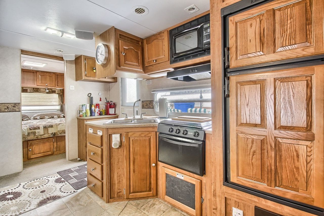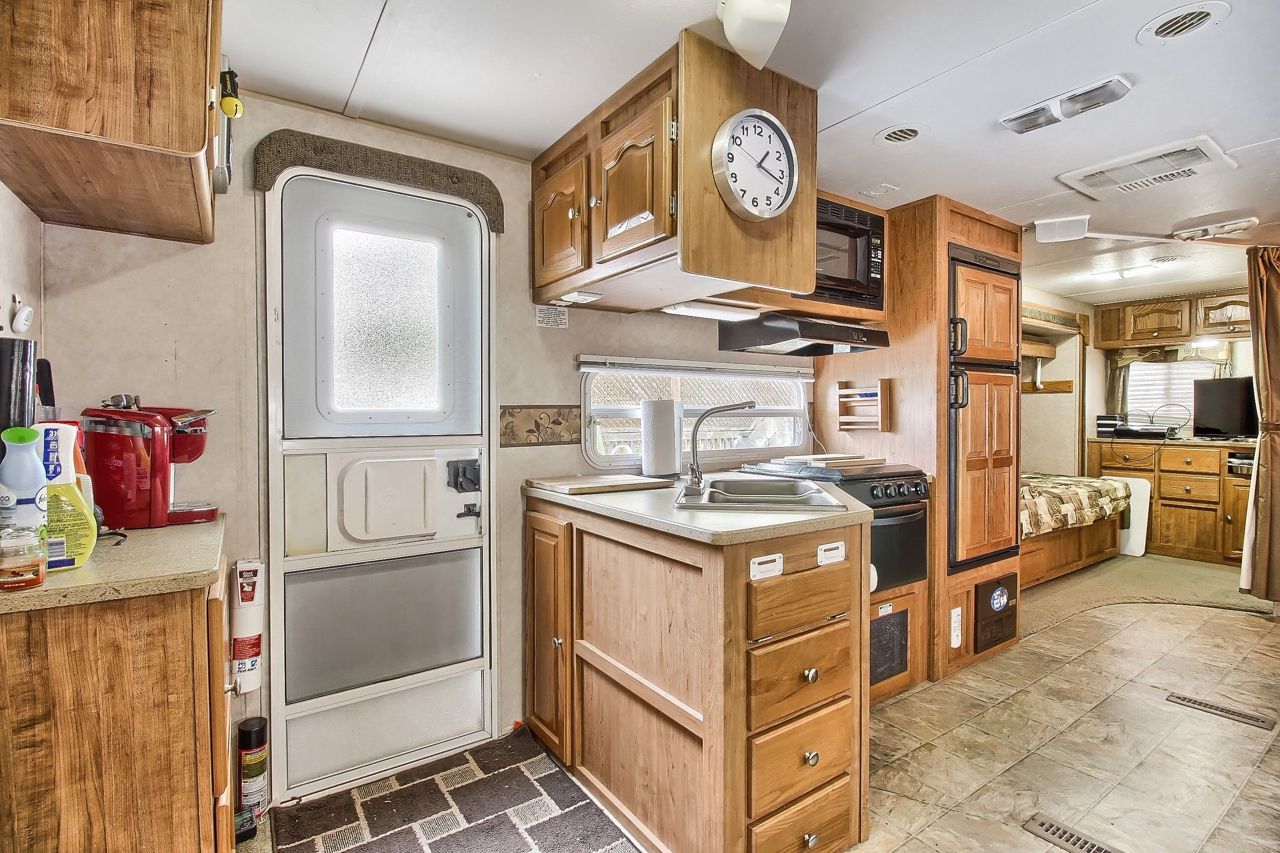 Immaculate '07 33 Foot Rockwood Travel Trailer Backing to Ravine & Fronting to Green Space! A little slice of paradise located off Hwy #48. Close to all amenities yet far enough away that you can sit back & enjoy nature at your doorstep! This seasonal landlease is located at Lyndhurst Park & Golf and offers an inground pool for use, is close to cycle/walking trails, lake/beach access & more. The Trailer has been lovingly maintained and can sleep up to 8 people. Enjoy balmy afternoons on the fenced deck w/built-in seating or on the back patio overlooking the ravine.1 Queen Bed, 1 Pull Out Sofa, Convertible Dining Area Bed. Double w/Retractable Bed Overhead.
