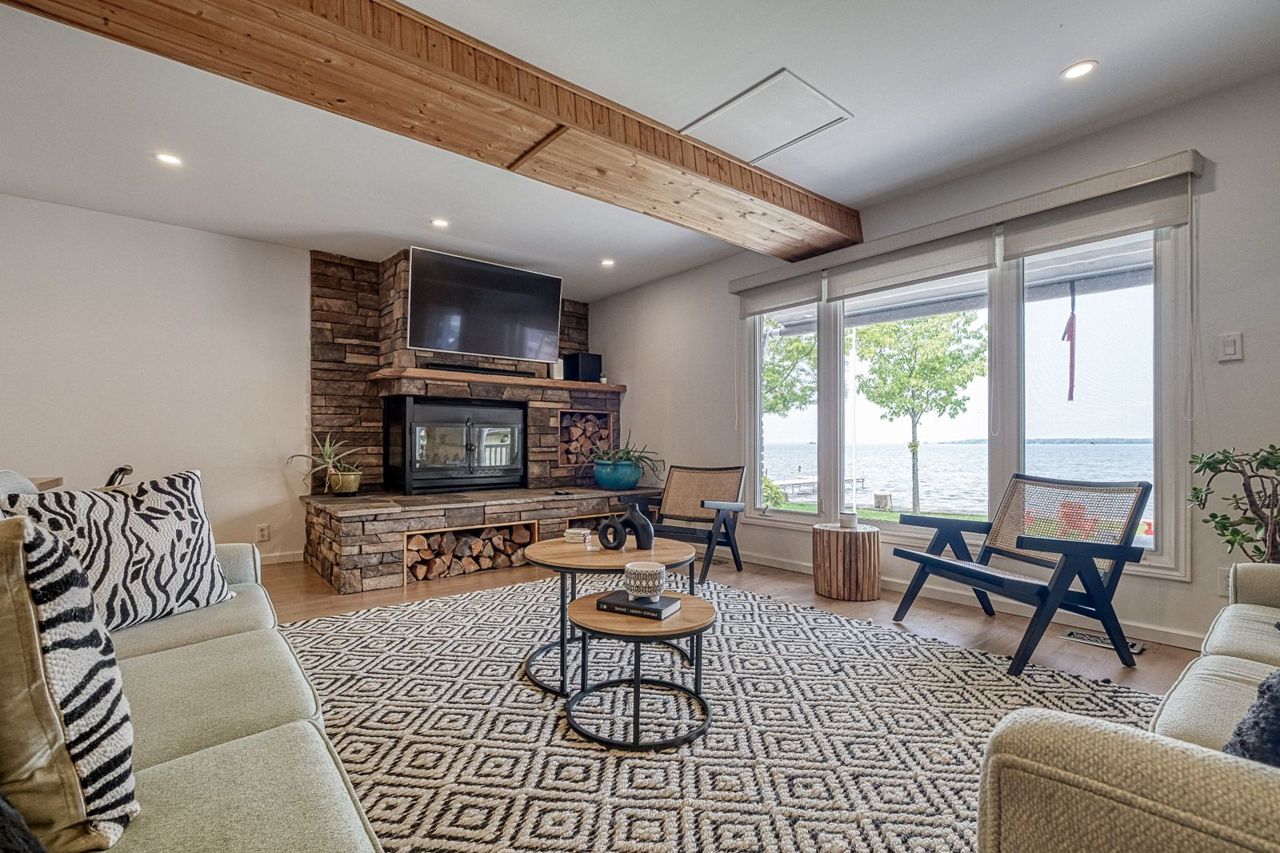 Discover An Exceptional Opportunity Featuring Approximately 80 Ft Of Direct Lakefront, Conveniently Located Within An Hour's Drive From The City. Situated On A Peaceful, No-Exit Street, Top To Bottom Renovation, $$$ Spent.This Property Offers A Serene And Private Setting. You'll Have Exclusive Access To The Tranquil Waters, Without Public Entry To The Lake. Enjoy The Breathtaking Views Of The Lake That Greet You Through The Floor-To-Ceiling Windows In The Open Concept Living Areas. Step Outside Onto The Expansive, Multi-Level Deck, Seamlessly Connected To A Fenced Yard, Providing The Ideal Setting For Waterfront Enjoyment Throughout The Year. This 4 Bedrms, 3 Baths, 4 Season Bungalow Offers Ample Space For Relaxation And Entertainment. An Attached Two-Car Garage With Direct Access To The House. Dry Boat House With Marine Railway. Fiberglass Breakwall. This Property Offers Easy Access To The Lake For Snowmobiling & Ice Fishing.Fridge, Fireplaces, Gas Stove, Newer Built In Dishwasher, Clothes Washer & Dryer, Central Vac