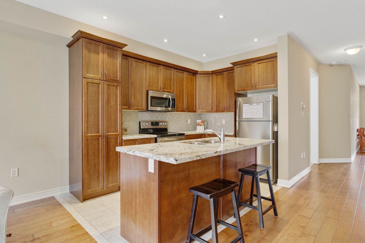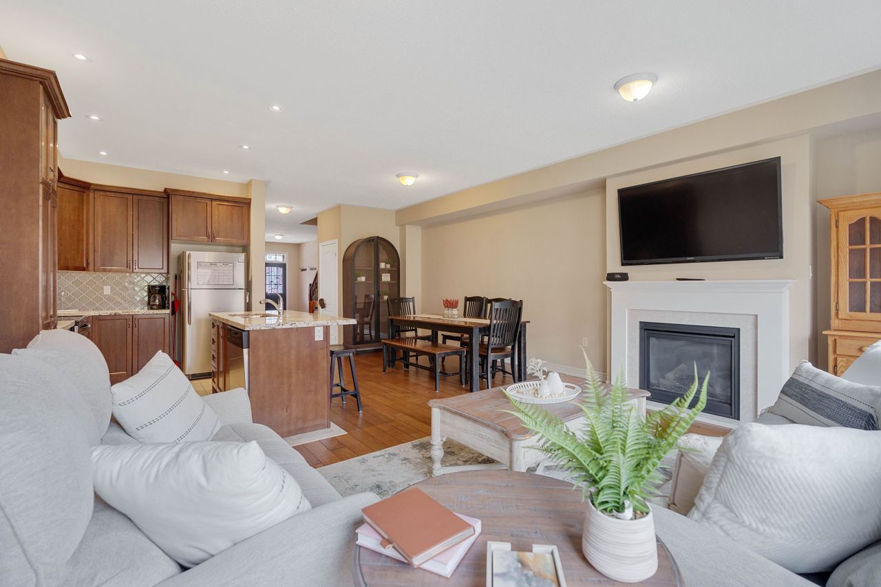 Welcome Home to 82 Scotia Road! This warm and inviting 4-bedroom townhome is nestled in a family-friendly neighbourhood. Upon entering the home, you will be greeted by a spacious entry way with engineered hardwood flooring and 9ft ceilings throughout main floor. Open concept layout with a beautiful kitchen that features ample storage, pot lights and modern appliances. Walk upstairs to the 3 generously sized bedrooms and enjoy the convenience of upper floor laundry. The primary bedroom offers a large space with a 4pc ensuite and walk through closet. The finished basement allows for additional living space with a 4pc bathroom and bedroom. Fully fenced yard and conveniently located close to schools and amenities.