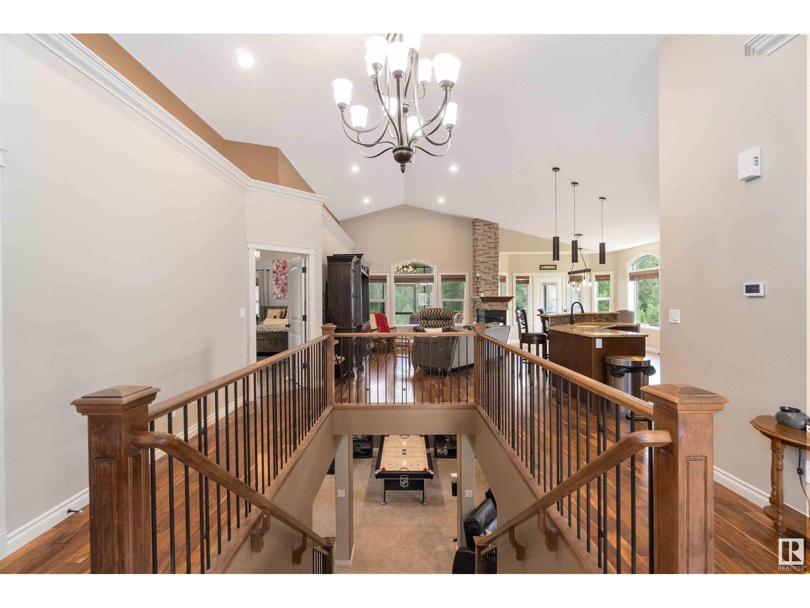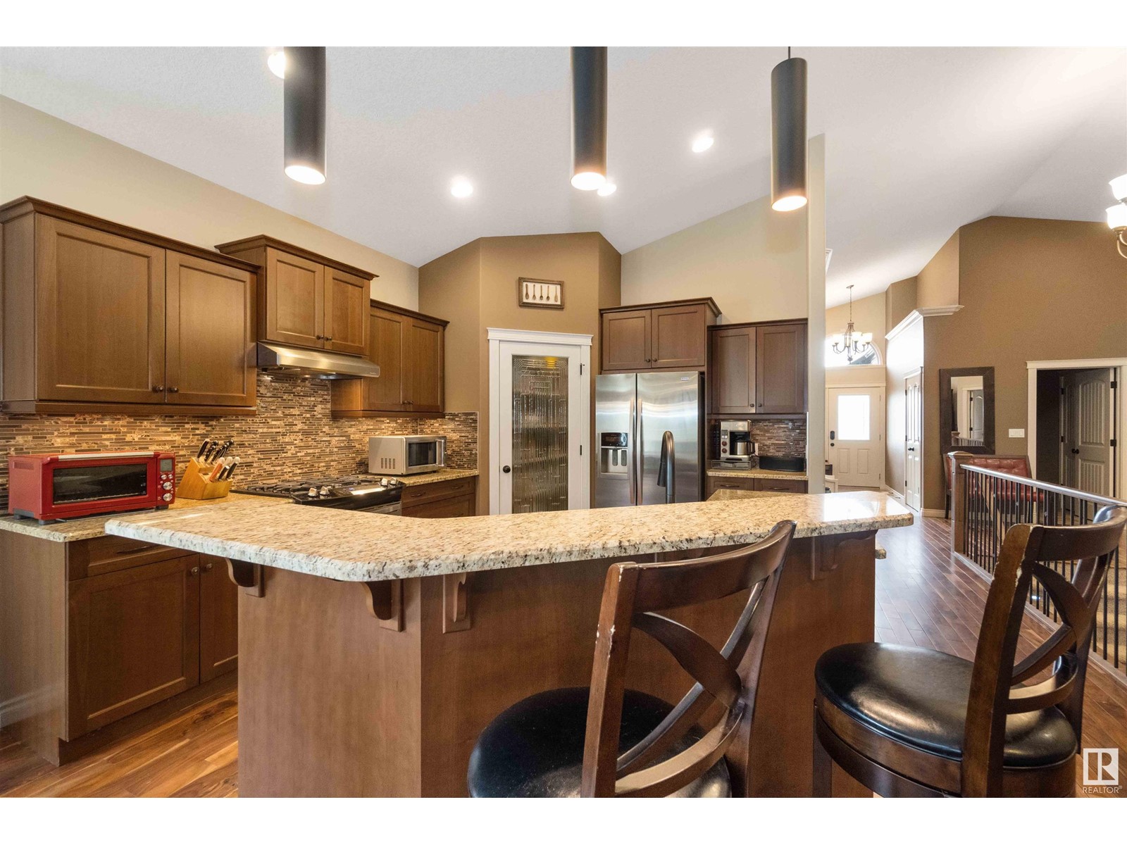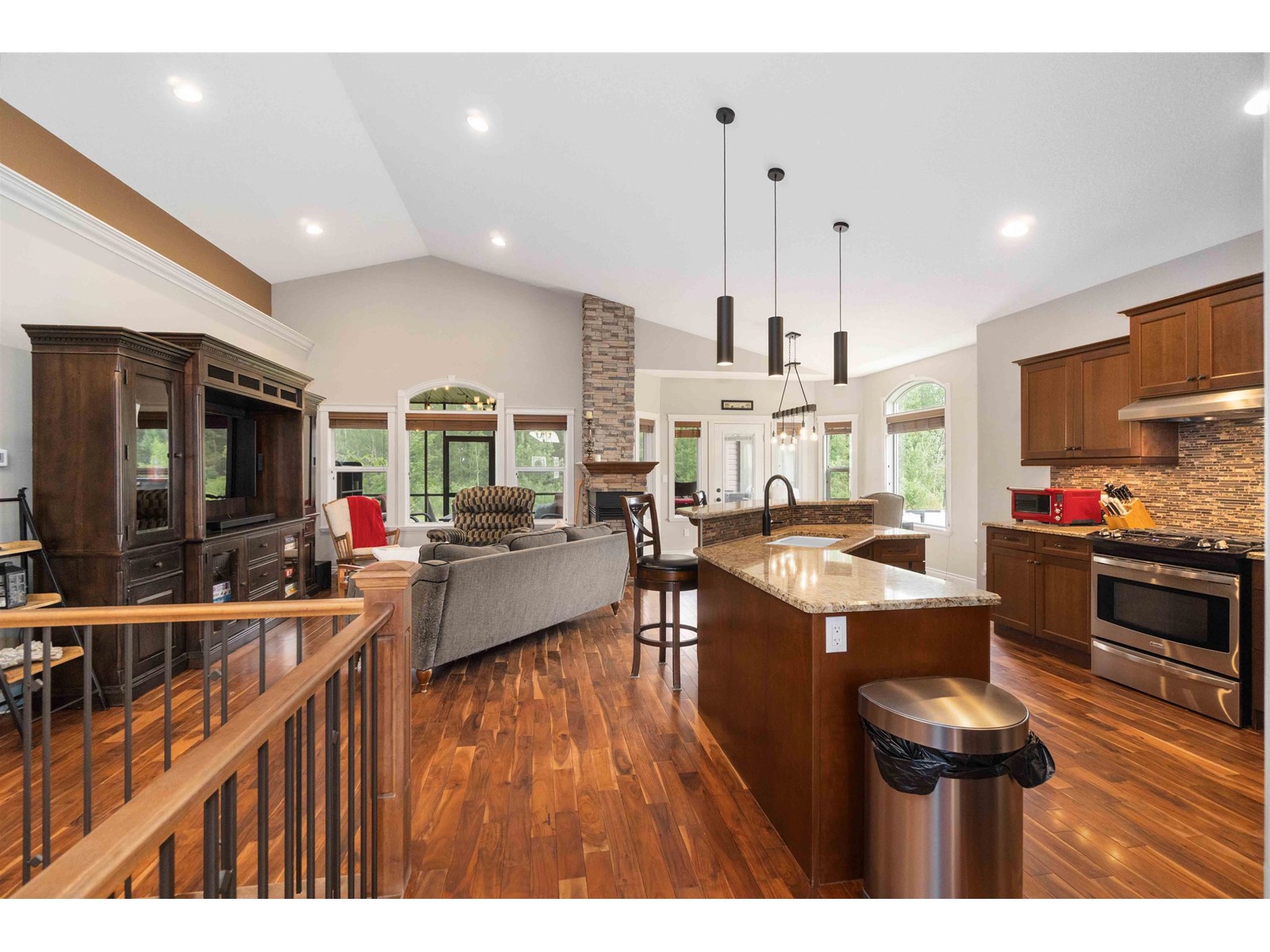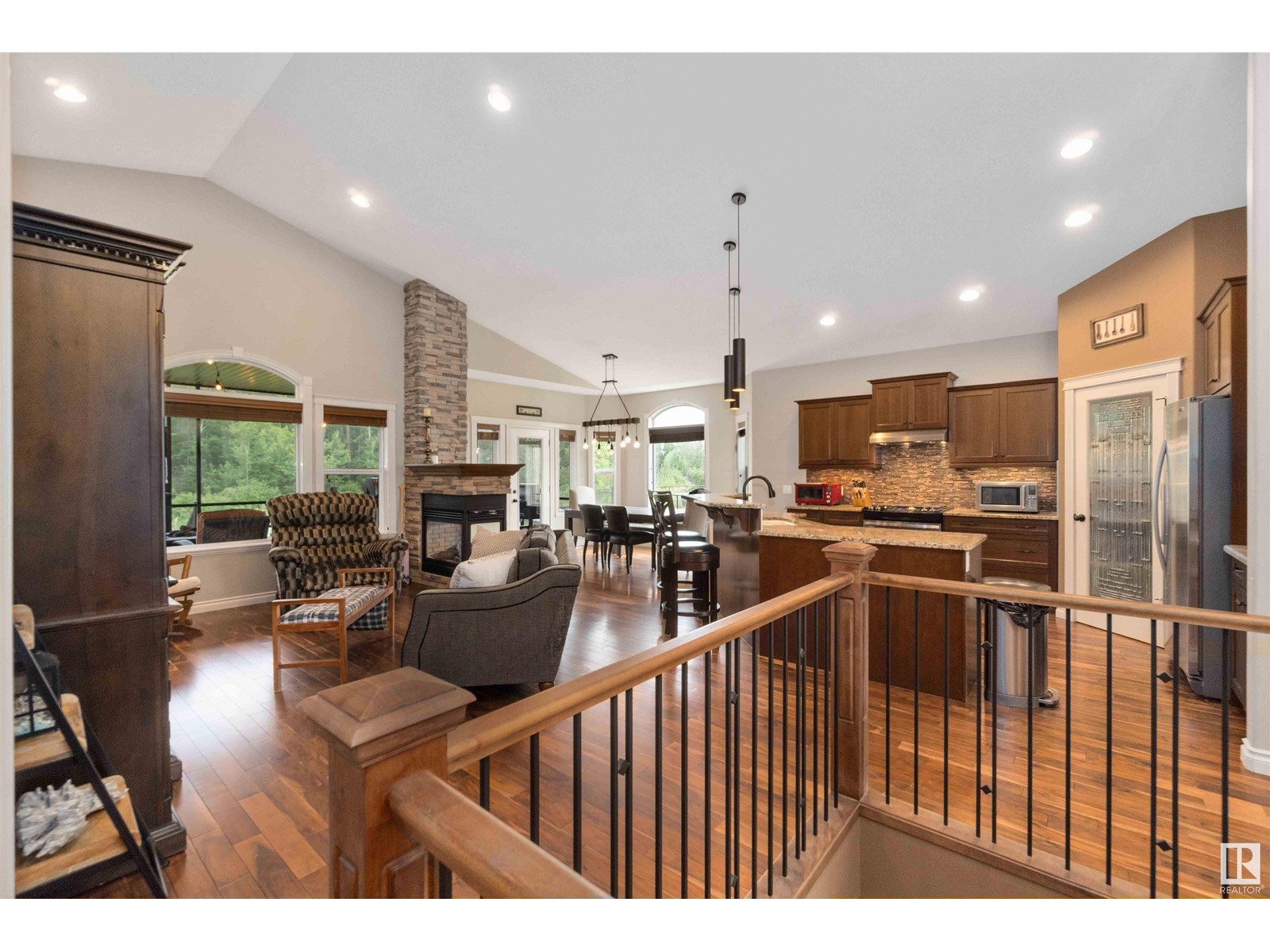 Introducing a unique bungalow nestled in the growing community of Gibbons. This impressive home showcases a triple dream garage and is situated on a spacious 1/2 acre lot. With 2 bedrooms on the main level, 2 bedrooms in the basement, and a den, this versatile layout caters to various lifestyles and needs. Step inside and experience the seamless flow of the open concept design, creating a welcoming atmosphere for relaxation and entertainment. Vaulted ceilings (13.6) add an elegant touch, enhancing the feeling of spaciousness and openness. The well-appointed kitchen is a chef's delight, featuring granite countertops, stainless steel appliances, walkthrough pantry and ample storage options for all your culinary needs. Backing onto a tranquil green belt, this bungalow offers a picturesque setting that invites you to immerse yourself in the beauty of nature. The covered back deck becomes a private oasis, perfect for enjoying outdoor gatherings or quiet moments of reflection. (id:22211)