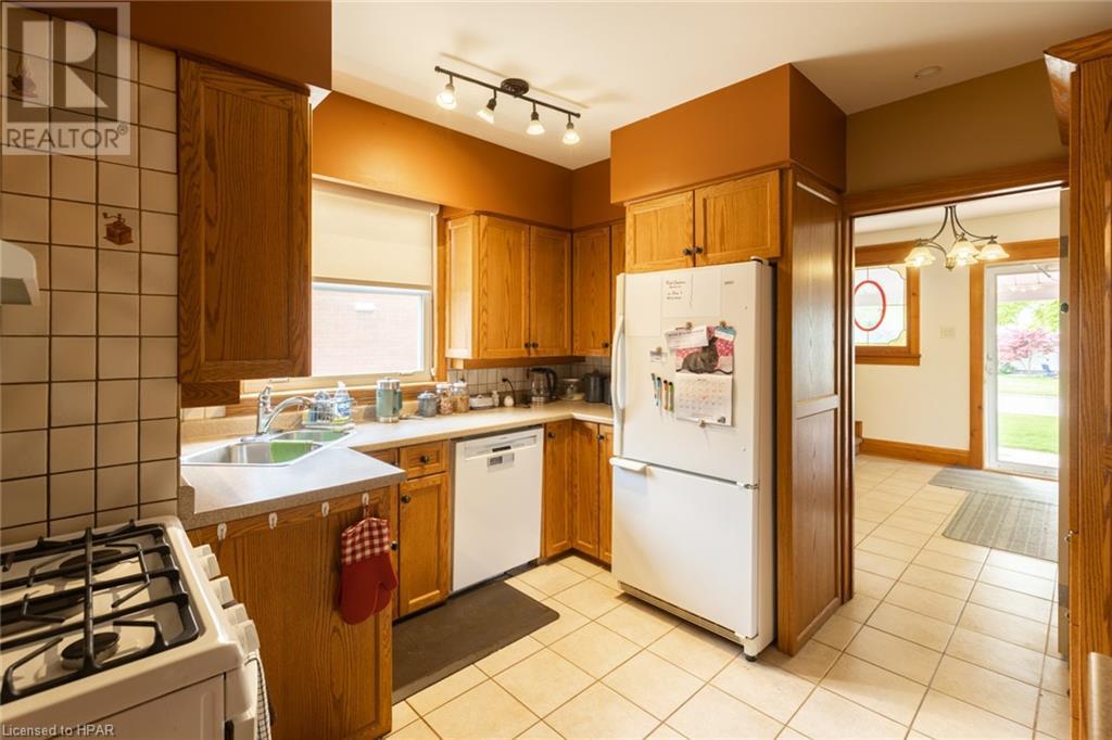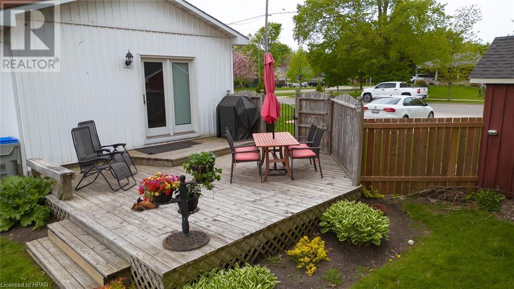 Location location!! This beautiful home is located in one of the best & most sought after neighbourhoods that Goderich has to offer! Near to the iconic Goderich Lighthouse with stunning views of the beaches & famous Lake Huron sunsets, this red brick house has plenty of character & charm, and is sure to please. As you enter the home from the cozy front porch, you are welcomed into a bright foyer, which leads you into a generous sized living/dining room with built-in storage. The main floor also consists of a laundry room/2 pc. bathroom, functional kitchen with gas range, and family room addition with a gas fireplace, where patio doors take you to a spacious deck, and delightfully landscaped & fully fenced yard. The second floor features 3 bedrooms and a 4 pc. bathroom. With bonuses like hardwood flooring, a stamped concrete driveway, large storage shed, and corner lot, what more could you want? Don’t hesitate on this one! (id:22211)
