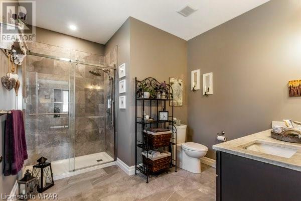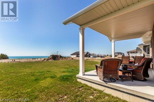 This home is a must show to your most discerning buyers! Welcome to South Cove area of Goderich, the prettiest little town in Ontario. The owners have spared no expense on this Sands Model with over $100,000 in upgrades. Included in these upgrades but not limited to is the steel roof, solid wood cabinets with truffle finish, upgraded flooring package, enviro G42 logs fireplace in the basement, 5 solid core doors on main floor, all bath faucets fixtures and toilets, upgraded master ensuite, all vanities, triple glaze windows, entire home is on electric panel surge protector, completely finished garage with extra insulation and is 17'8x14', all Hunter Douglas blinds and high end stainless steel appliances and the list goes on and on. This home has stunning views, great open concept layout and is in pristine condition. From the living room through the extended height patio doors leads to a concrete patio with a covered roof. The basement is framed and ready for your touches. Framed in guest bedroom, rough in bathroom (tub is there but not connected) rough in wet bar off the bathroom on wall into games room area. Large bright windows in the basement. 2nd bedroom is currently being used as an office. Click on the multimedia button to view the photos and virtual tour! (id:22211)