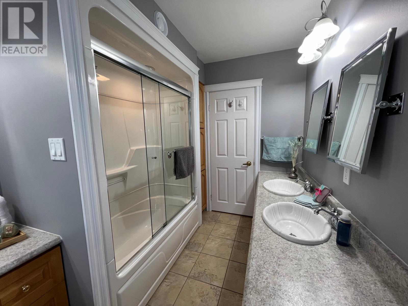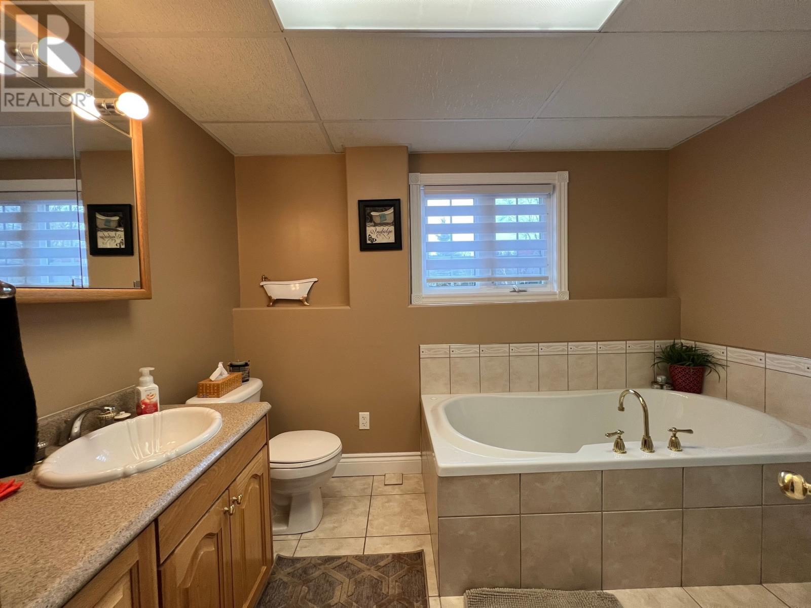 THIS EYE-CATCHING HOME IS LOCATED ON A LARGE ONE ACRE LOT! Plenty of room for backyard play, large asphalt drive allows for plenty of parking space, two storage sheds in place. Trails at rear of home makes for ease of access to the great outdoors for snowmobiling, skiing, snowshoeing etc.. Exterior of home completed with vinyl windows & vinyl siding; new asphalt shingles added August 2023. Large rear deck in place to access both rear foyer & patio door off dining area, a great place to relax on those warm Summer days. Interior main floor consists of front foyer with double closet; large open living & dining area with hardwood floor; spacious kitchen with plenty of oak cabinets & counter space, built-in stove top, oven & microwave, fridge included; rear foyer. Also features a den & office with an out side entrance ( this area has so many possibilities including a home based business or can be easily converted back to original use as an attached garage). 2nd level has a full bath with double vanity & makeup area; 3 bedrooms. Upper basement area has a cozy family room; full bathroom with corner shower & an air-pool tub; hobby room/mudroom area features built-in cabinets plus an outside entrance with a covered porch. Lower basement area is open space used for laundry facilities( washer & dryer included), wood-stove area and great storage space. Home features plenty of closet space; mostly pex water lines; hot water tank replaced in recent years. A great home in a great location, don't miss this opportunity!!! (id:22211)