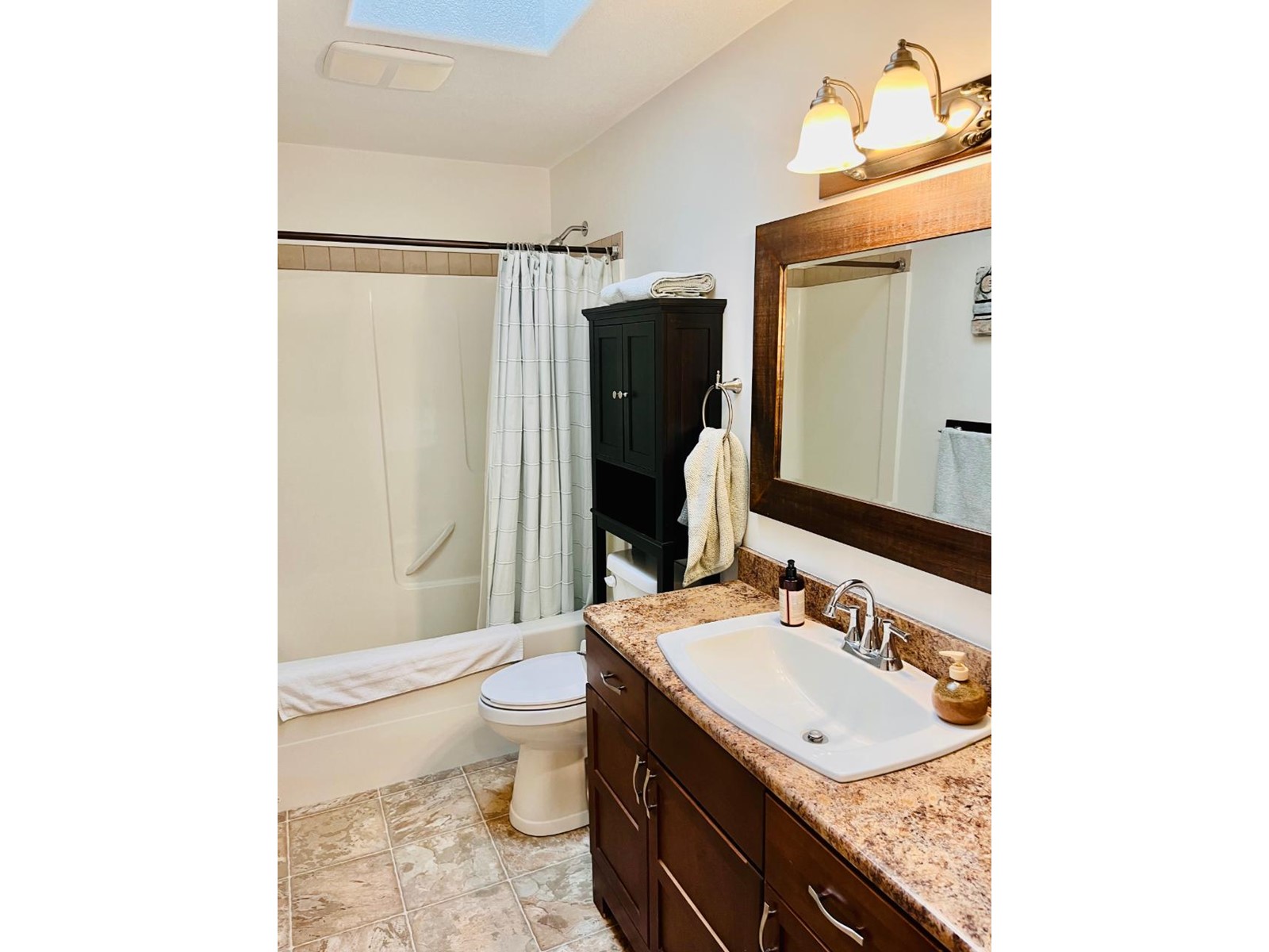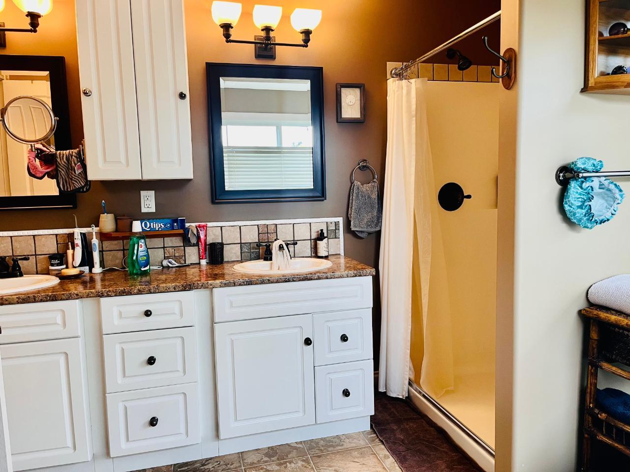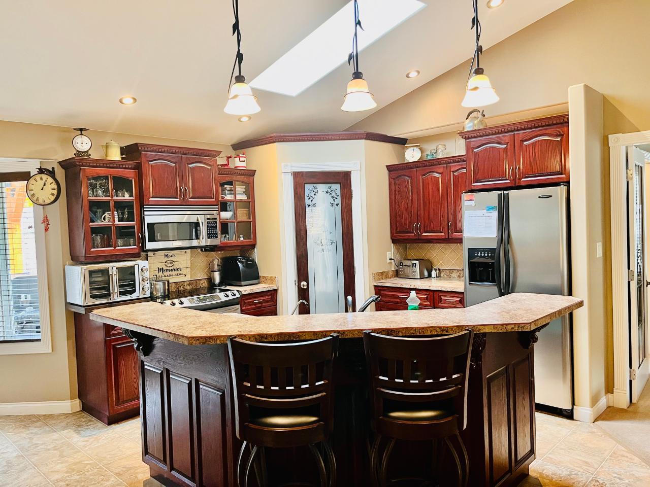 Ideal home for any stage of your life! Located in the desirable area of Riverside Drive where you are a short distance to a beach, pickle ball/tennis courts and riverside walking trail that takes you to downtown within minutes. Park in your double car garage and step into a comfortable entranceway with laundry space, following to a full bathroom and spacious guest bedroom or office. Hallway opens into a vaulted ceiling with sky light that illuminates the open concept kitchen/dining to living room design! Open the patio doors to the inviting deck with pergola that fills with the morning sun! When your day completes you can retire into the serene primary bedroom with large ensuite. All you need is on the main floor, however this home provides you extra living space on the lower level with a rec room, 2 bedrooms, full bathroom and 2 additional rooms for your hobbies or storage. This fully fenced home is high and dry with a Radon mitigation system, reverse osmosis, gas connection for outdoor BBQ, lawn irrigation, RV parking, Central Air and natural gas fireplace. Don't miss out and contact your Agent for a viewing of this immaculate home! Early Spring Possession required. (id:22211)