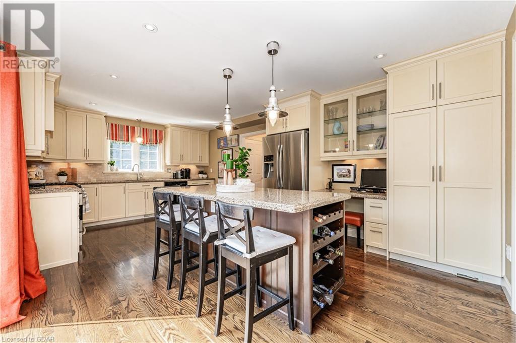 This charming custom reproduction Victorian home has plenty to offer and many upgrades. As you step inside off the covered front porch you will notice large windows, hardwood floors and a newly renovated kitchen. The living and dining rooms on the main floor provide plenty of space for relaxing and entertaining. The spacious kitchen offers lots of cabinetry, quartz countertops and an extra large island. Upstairs you will find a generous sized primary room with a private balcony, 3 more large bedrooms and a 4-piece bathroom. Downstairs you will find a fully finished basement with a walkout, office space, 2-piece bathroom, laundry room and a rec room with a bar. Outside you will notice a large deck off the back of the home, a massive yard, mature trees and landscaped gardens. This home is situated on a quiet street and walking distance to Grand Valley’s quaint shops, schools, community centre and restaurants. Book your showing today! (id:22211)