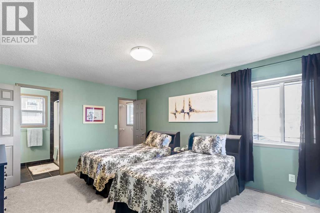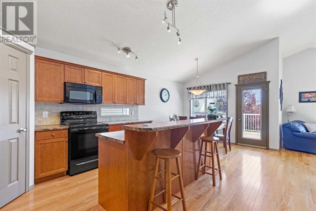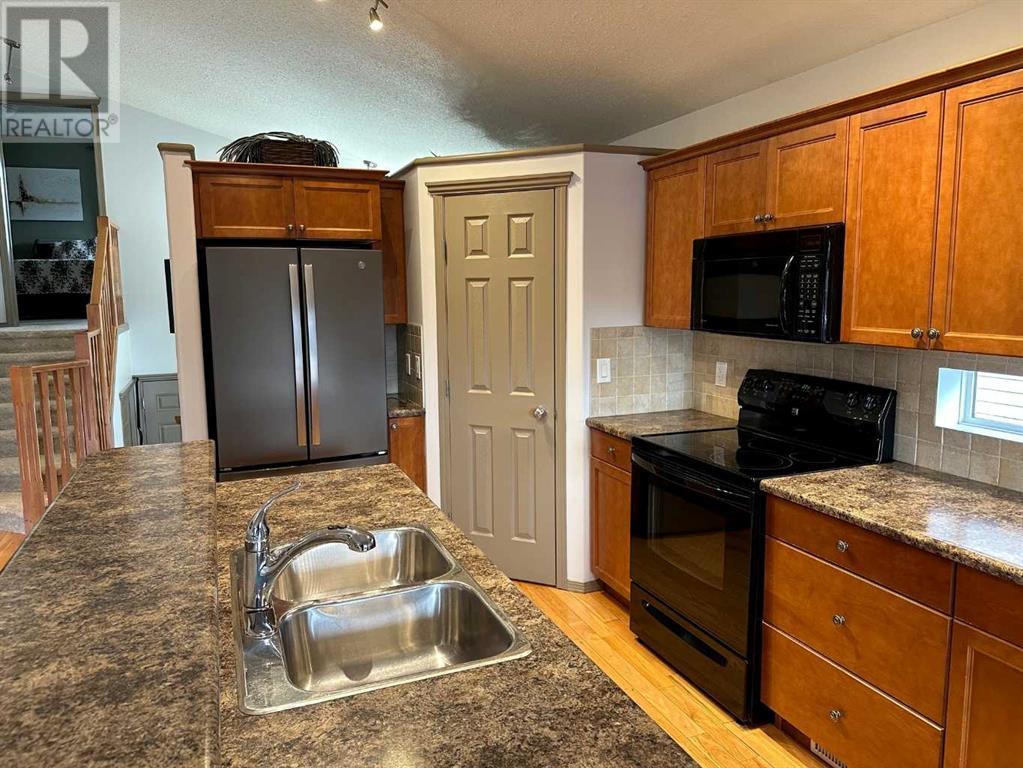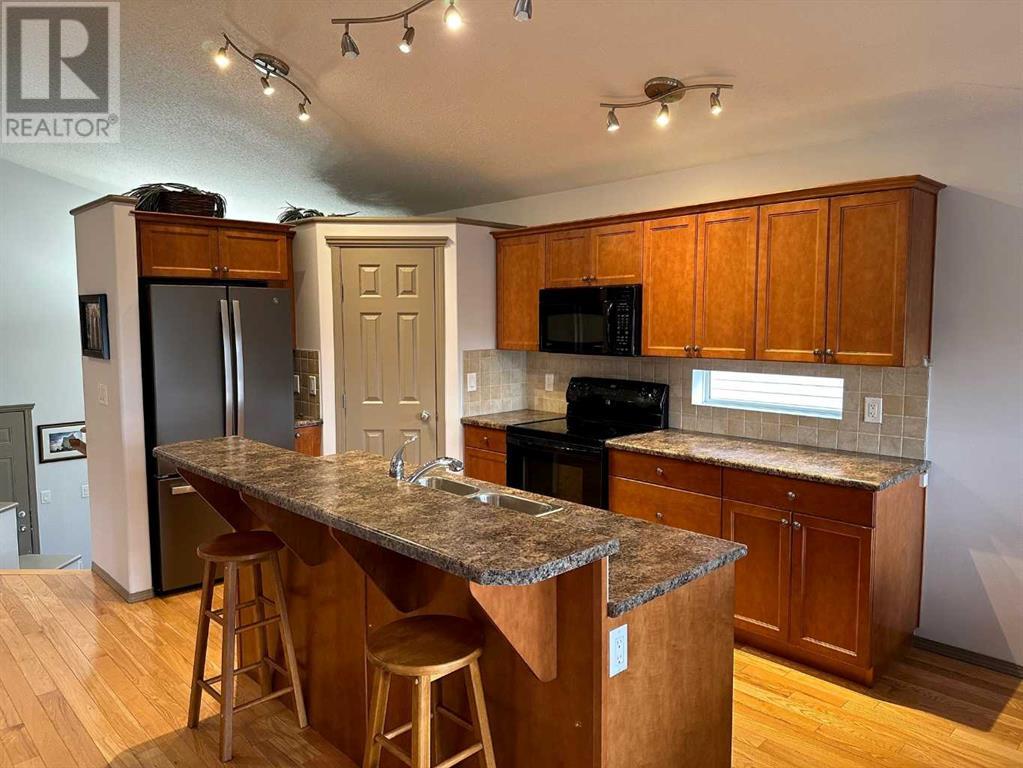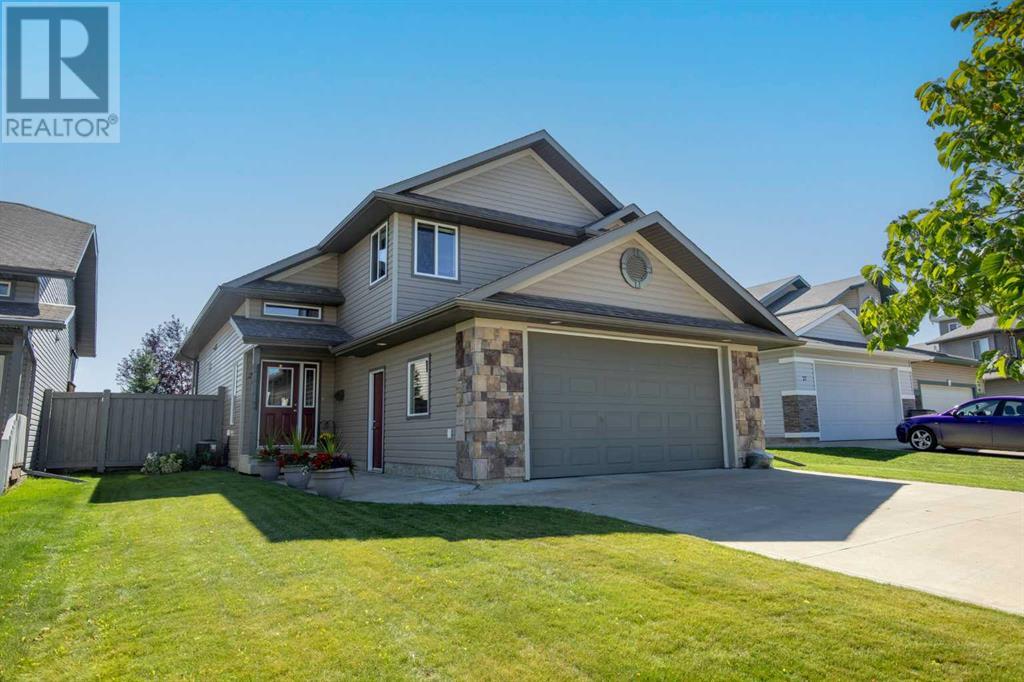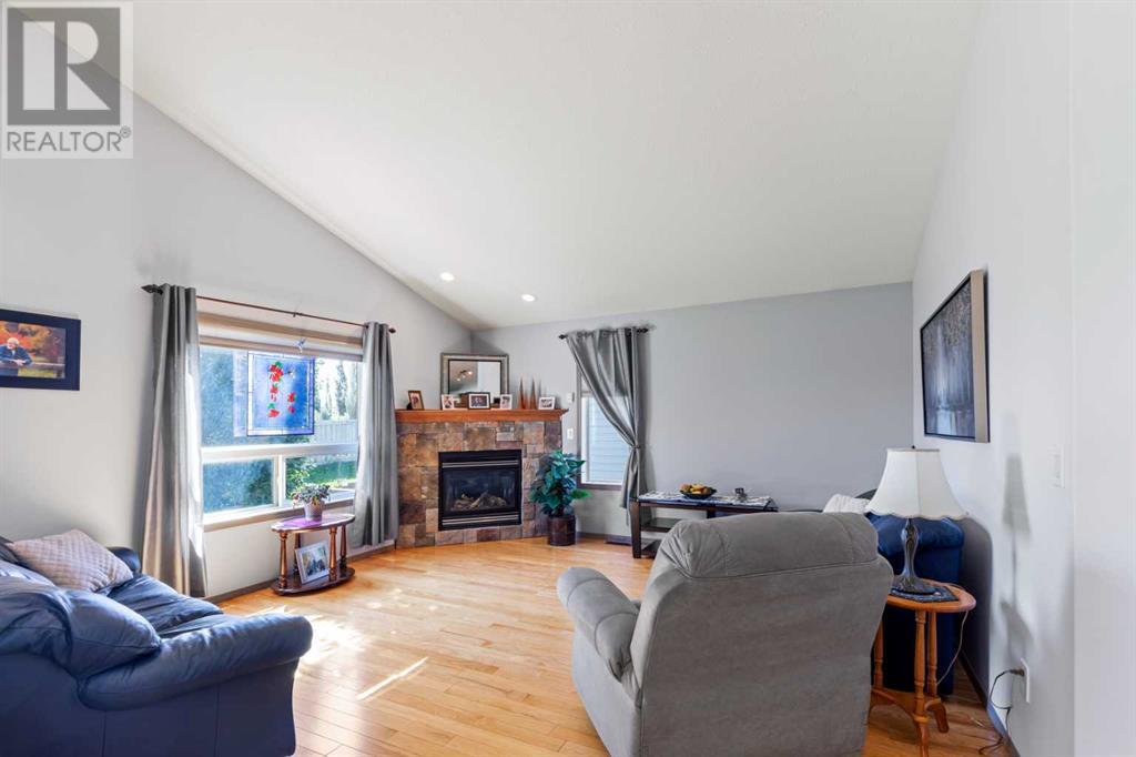 Welcome to this stunning home! This large modified bilevel has a spacious open plan enhanced by vaulted ceilings. Beautiful hardwood flooring flows throughout the mainfloor, complementing the elegant ambiance. The kitchen features maple cabinets, island with a raised eating bar, garburator, tile backsplash and new fridge installed August 18th. The heart of the home is the large and bright great room, featuring a gas fireplace that adds warmth and character and the south facing windows bring in lots of light. An added touch of luxury awaits in the upstairs bathrooms, where you'll find heated tile floors - a real treat during colder months. The large master bedroom is inviting with full bathroom and walkin closet. The fully developed basement, boasts 9' high ceilings, a large family room, bedroom, a versatile den/office, and a 3-piece bathroom. The basement is roughed in for hot water heating as well. The high-efficiency furnace ensures both comfort and energy savings. The heated double garage is a practical and valuable addition, providing shelter for your vehicles and extra storage space. Stepping outside, you'll discover a large partially covered south-facing deck, an ideal spot to relax, unwind, and soak up the sun. The backyard is a paradise of its own, that is meticulously manicured, mature trees, patio with firepit, large south facing decks and is fully fenced and landscaped. In summary, this real estate gem offers not just a home, but a lifestyle. With its impeccable condition, spacious layout, and thoughtful features, it's a must-see for those seeking comfort, elegance, and a welcoming community. Don't miss the opportunity to make this remarkable property your own! (id:22211)