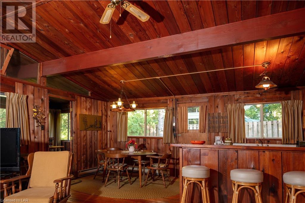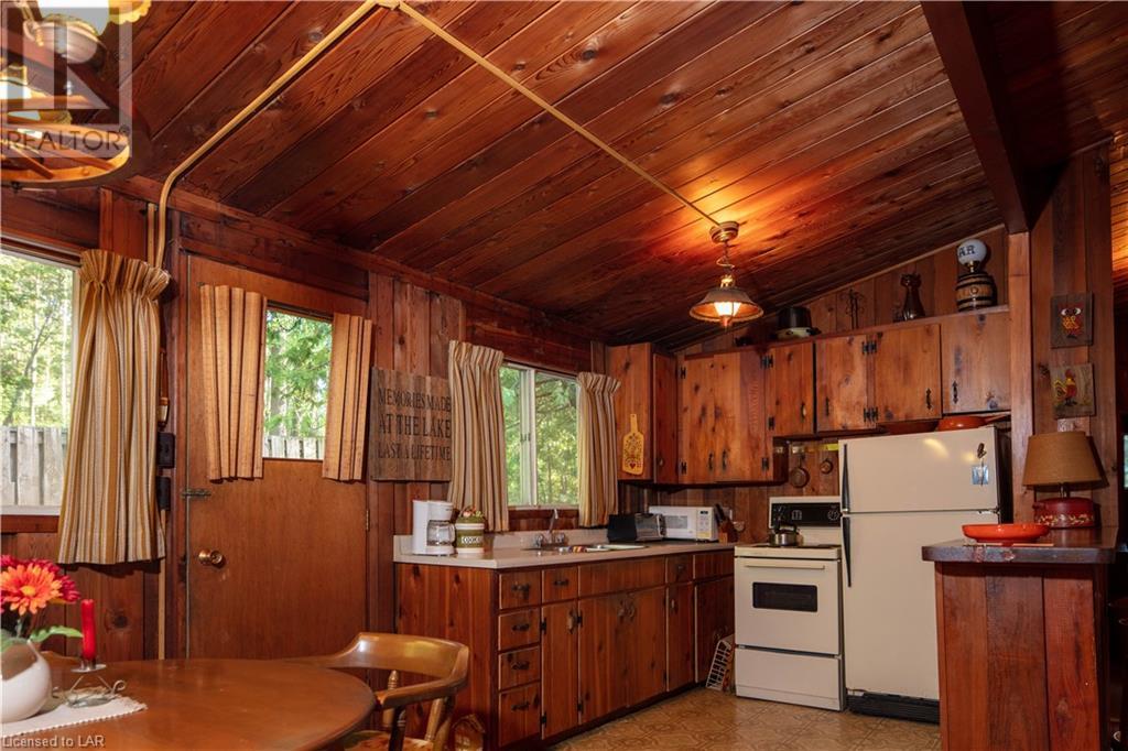 Charming 3 season cottage on a year around road. One lot away to one of the best beaches in Muskoka with deeded access. 4 bedroom 1 bath cedar cottage on town water and sewer. Large Muskoka stone fireplace. Front porch for those hot summer nights. Large deck on the side. Level lot and short walking distance to Golf and a large Muskoka resort. 48 hour irrevocable on offers. (id:22211)