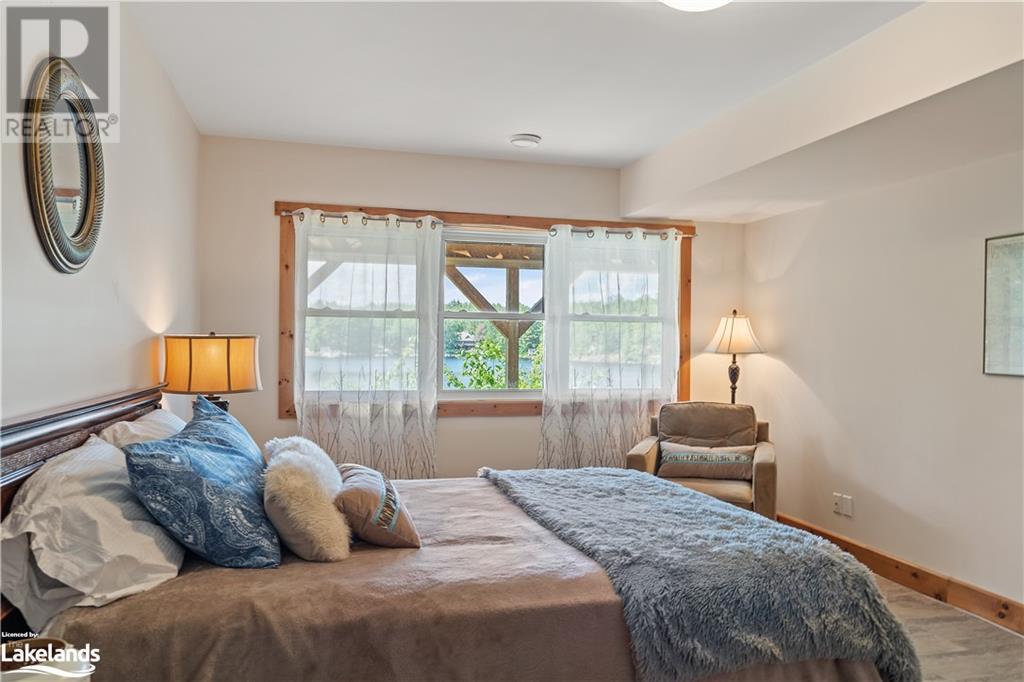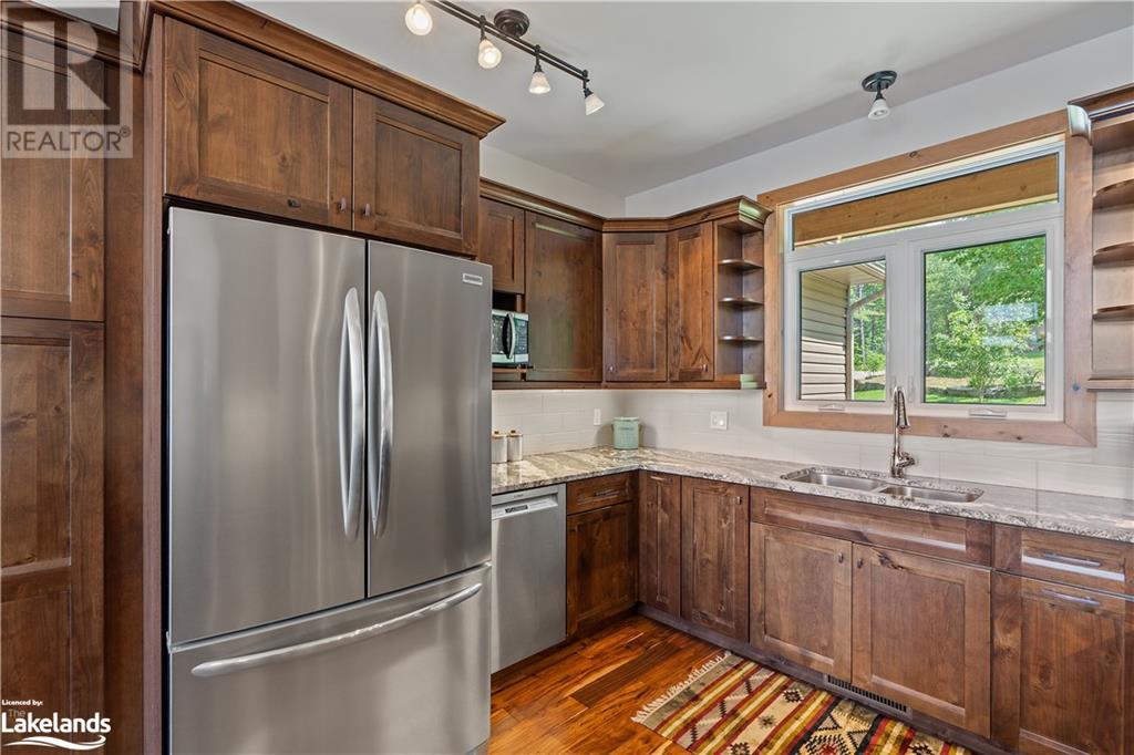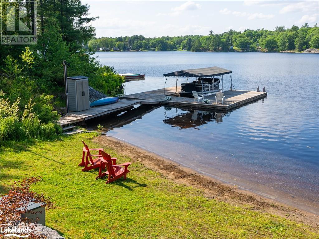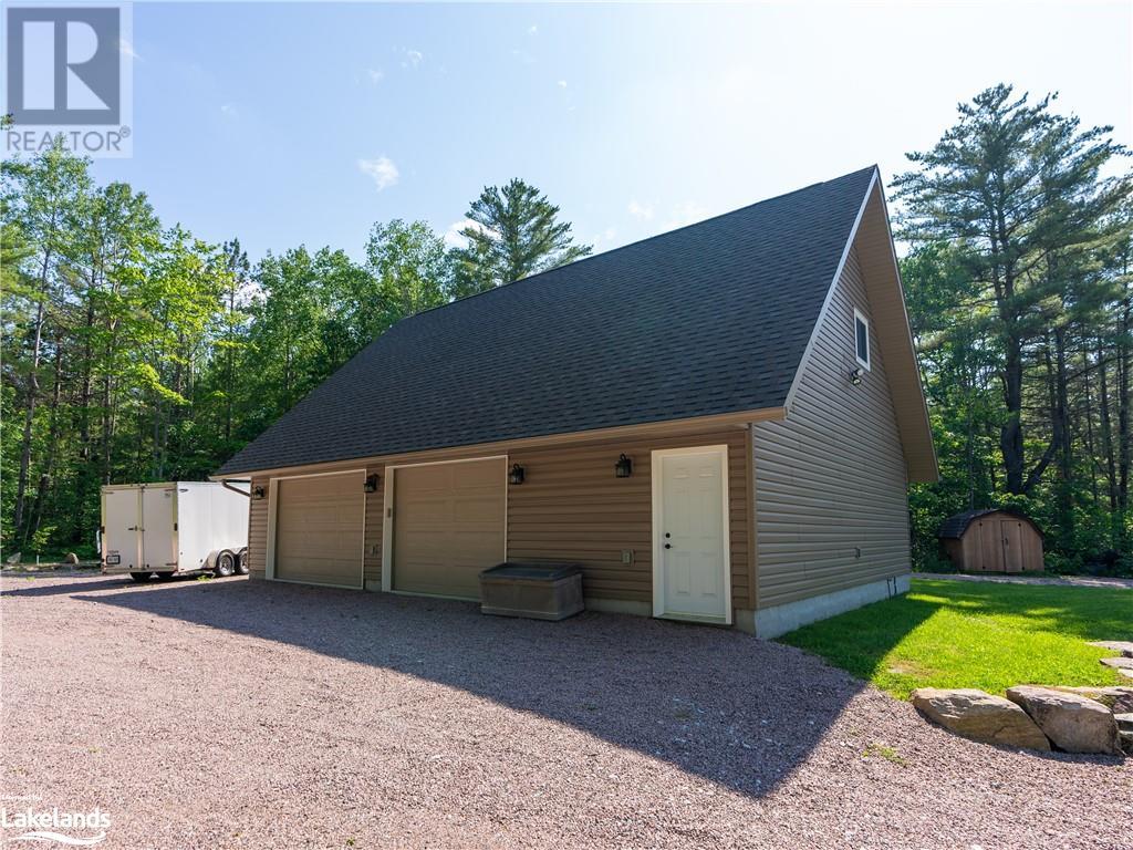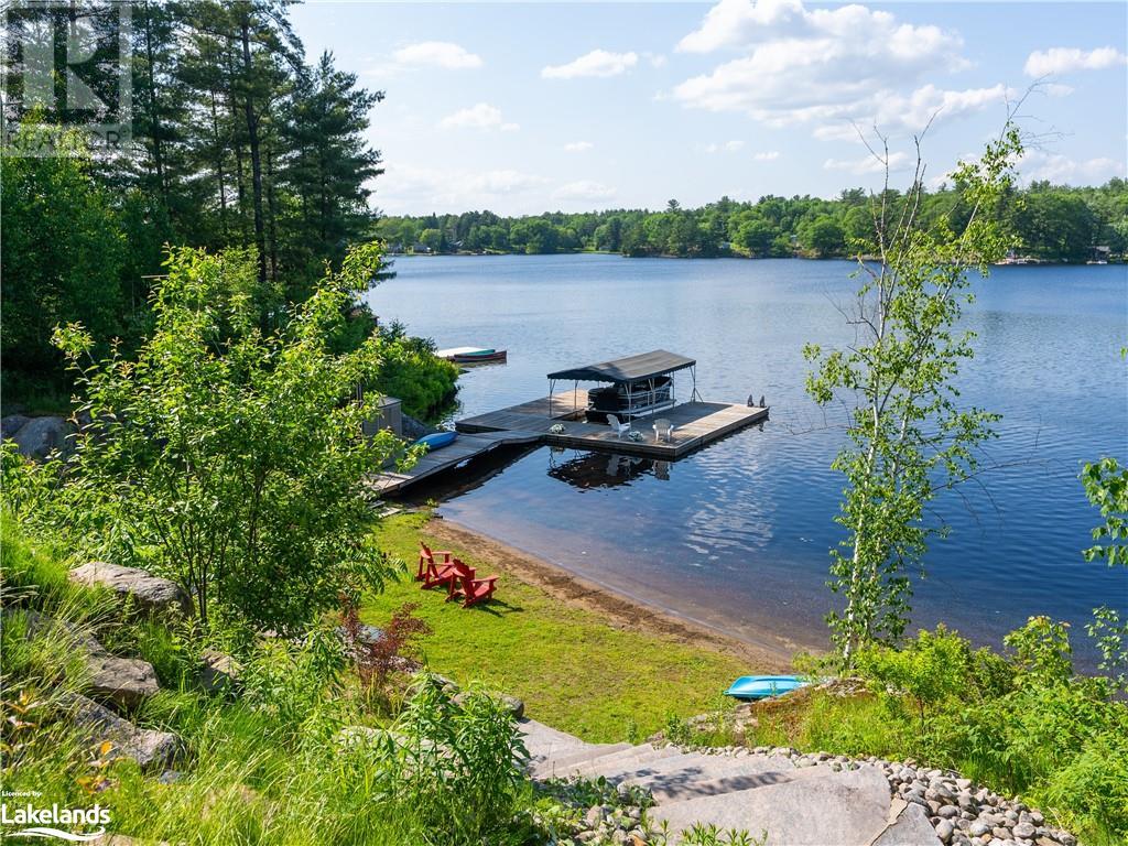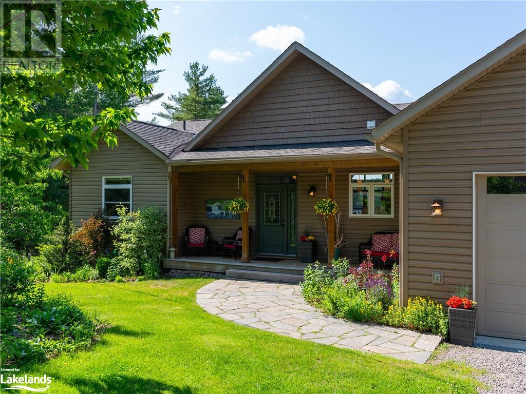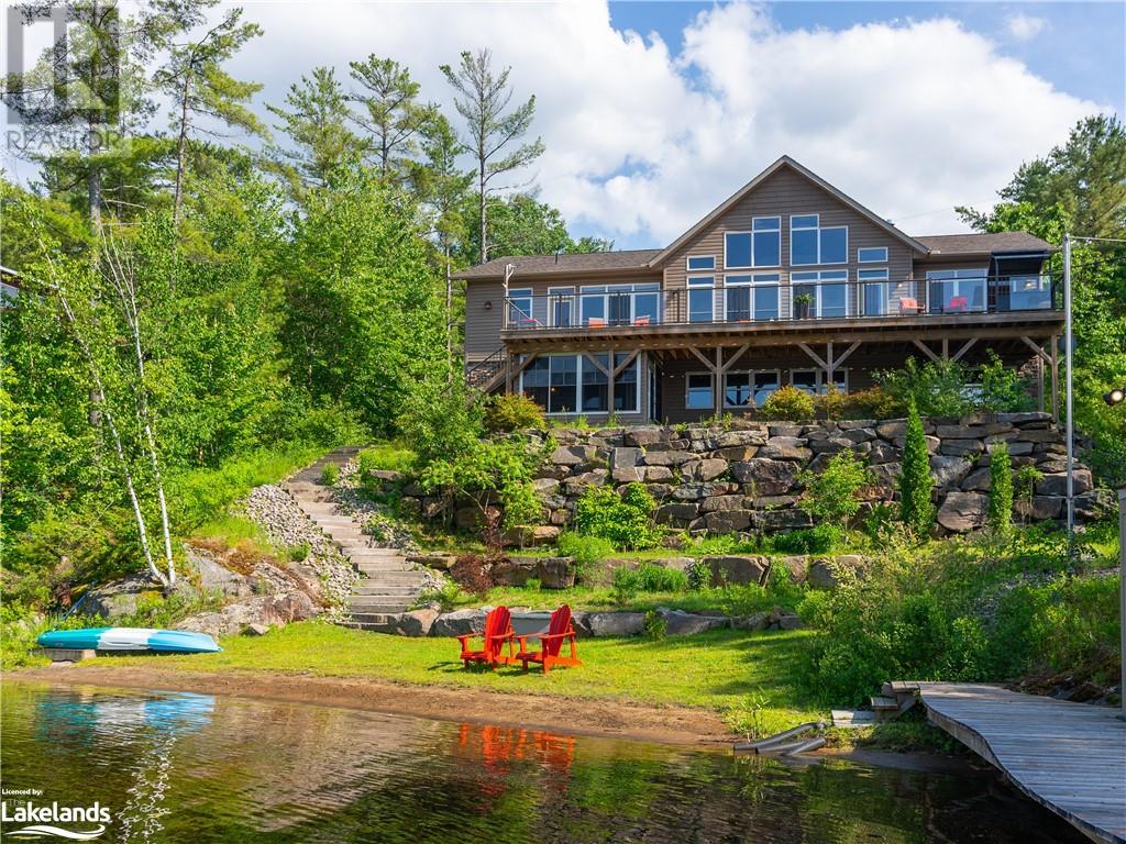 Welcome to this absolutely stunning, quality designed All season Home/Cottage on Beautiful Kahshe Lake featured in the May issue of Muskoka Life magazine! Completed in 2015 by a reputable local builder, this property shows beautifully and is maintained with pride of ownership that a special buyer will appreciate. Offering 4000 sq ft of beautifully designed living space that your family could enjoy this season. Well designed. landscaped lot with panoramic views of the lake from principal rooms and a large entertaining deck. Impressive Granite stone steps to waterfront lead to a sandy beach with large U shaped dock and covered boat port. Perennial gardens amongst circular driveway with 3 car detached garage 2018 (insulated storage room above) + a 2 car attached, heated garage with indoor access to the mud room/laundry. An inviting foyer w ample closets leads into the main living space with 16' high, pine cathedral ceiling that attracts plenty of light into your day. The warm, acacia wood floors throughout the main floor are beautifully crafted. An impressive stone, propane fireplace with generous wood mantle makes another, stunning design feature. Quality, wood kitchen cabinets with natural vein, patterned granite countertops goes beautifully with the overall design. Plenty of counter space, large peninsula style, stainless appliances with propane range is a joy to prepare family meals. Private, main floor, primary bedroom with gorgeous views of the lake + walk out to the large deck with glass railings. Spa like 4pc ensuite and large walk in closet make this a comfortable, personal getaway. Additional 2 bedrooms on the main floor (or use 1 as a TV den) are privately located with another 4pc bth. Wide stairs, off the foyer to the lower level family room that would make an ideal media room. 4th bedroom, 3 pc bath with ample closets & storage rooms. 3 season Muskoka room w stone floor. Located off easy access all season road. 10 mins to Washago & 20 mins to Gravenhurst. (id:22211)