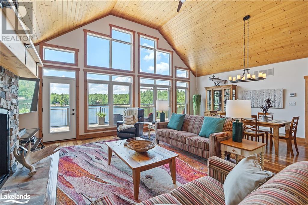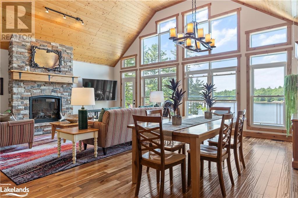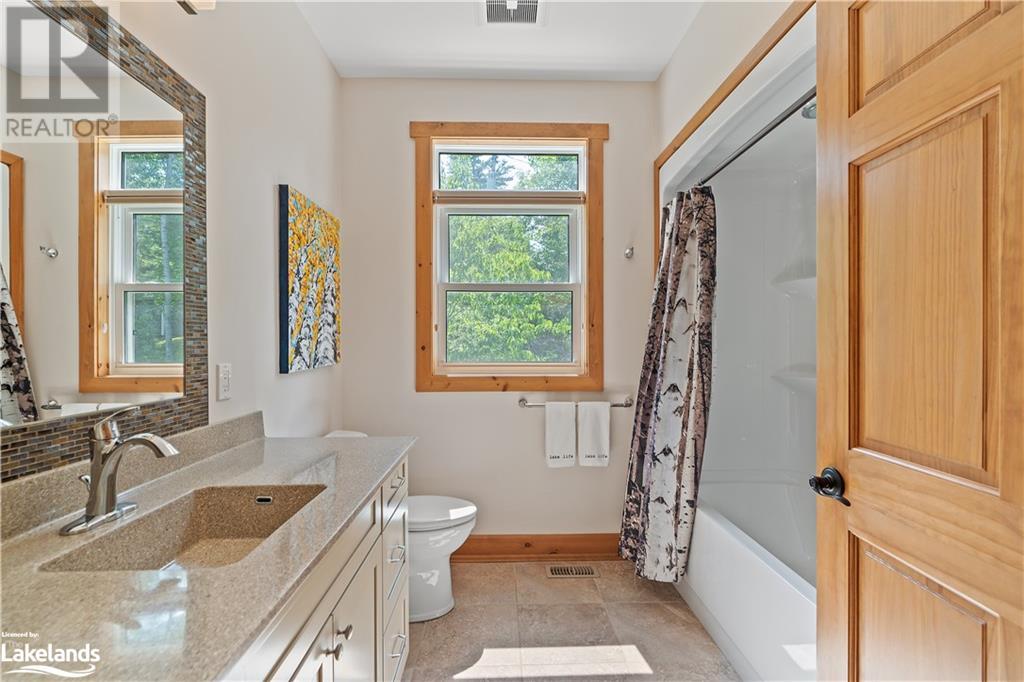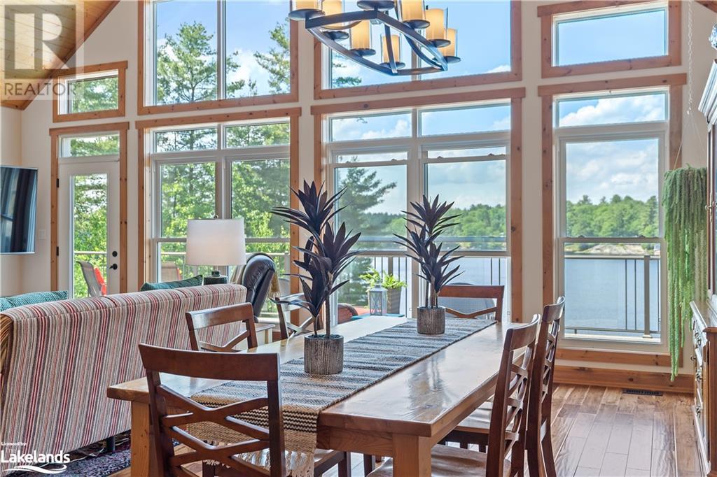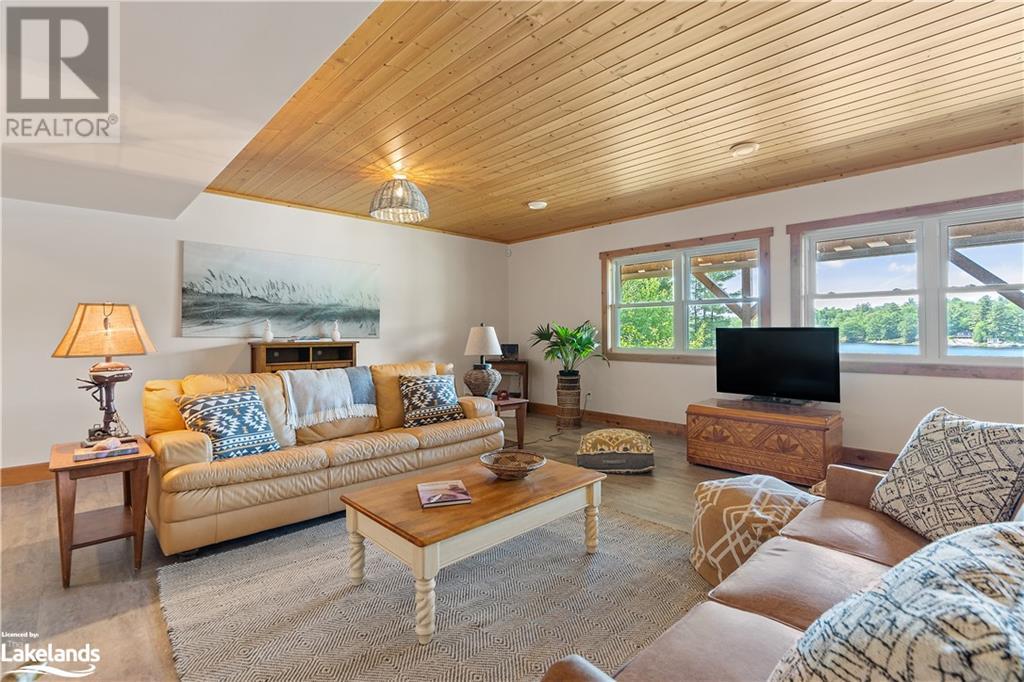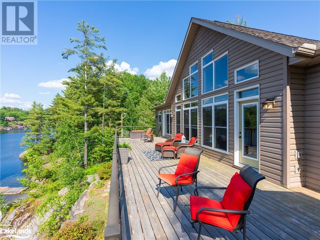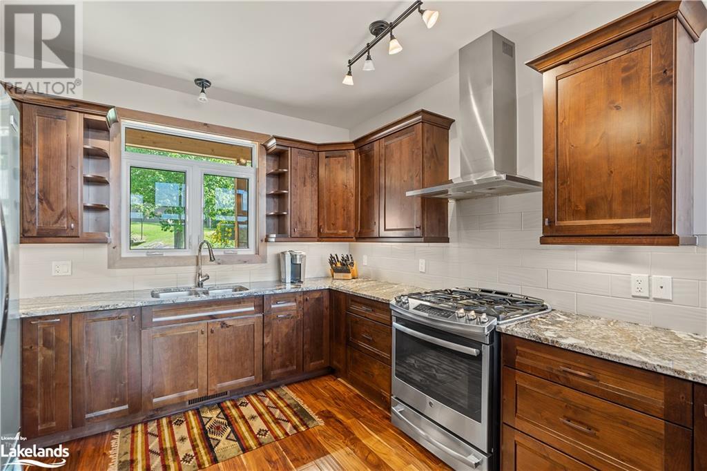 Welcome to this absolutely stunning, quality designed All season Home/Cottage on Beautiful Kahshe Lake featured in the May issue of Muskoka Life magazine! Completed in 2015 by a reputable local builder, this property shows beautifully and is maintained with pride of ownership that a special buyer will appreciate. Offering 4000 sq ft of beautifully designed living space that your family could enjoy this season. Well designed. landscaped lot with panoramic views of the lake from principal rooms and a large entertaining deck. Impressive Granite stone steps to waterfront lead to a sandy beach with large U shaped dock and covered boat port. Perennial gardens amongst circular driveway with 3 car detached garage 2018 (insulated storage room above) + a 2 car attached, heated garage with indoor access to the mud room/laundry. An inviting foyer w ample closets leads into the main living space with 16' high, pine cathedral ceiling that attracts plenty of light into your day. The warm, acacia wood floors throughout the main floor are beautifully crafted. An impressive stone, propane fireplace with generous wood mantle makes another, stunning design feature. Quality, wood kitchen cabinets with natural vein, patterned granite countertops goes beautifully with the overall design. Plenty of counter space, large peninsula style, stainless appliances with propane range is a joy to prepare family meals. Private, main floor, primary bedroom with gorgeous views of the lake + walk out to the large deck with glass railings. Spa like 4pc ensuite and large walk in closet make this a comfortable, personal getaway. Additional 2 bedrooms on the main floor (or use 1 as a TV den) are privately located with another 4pc bth. Wide stairs, off the foyer to the lower level family room that would make an ideal media room. 4th bedroom, 3 pc bath with ample closets & storage rooms. 3 season Muskoka room w stone floor. Located off easy access all season road. 10 mins to Washago & 20 mins to Gravenhurst. (id:22211)