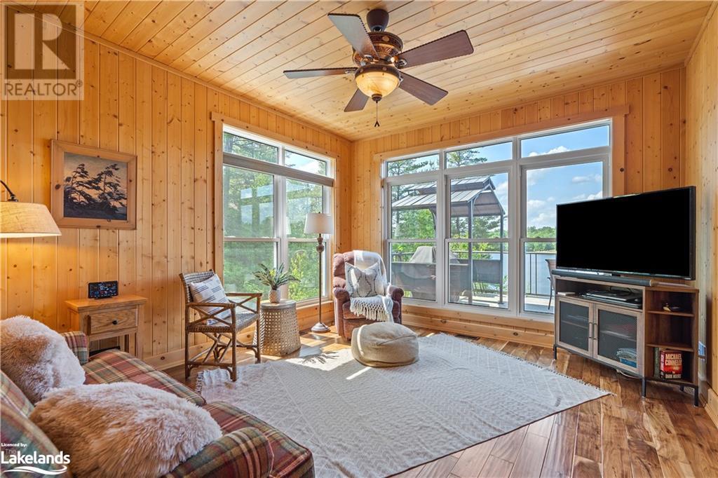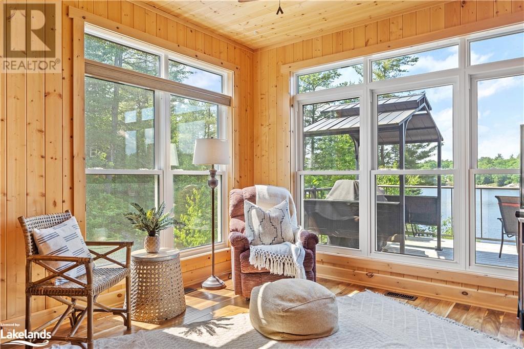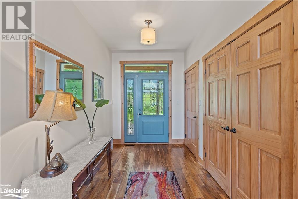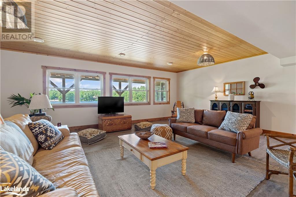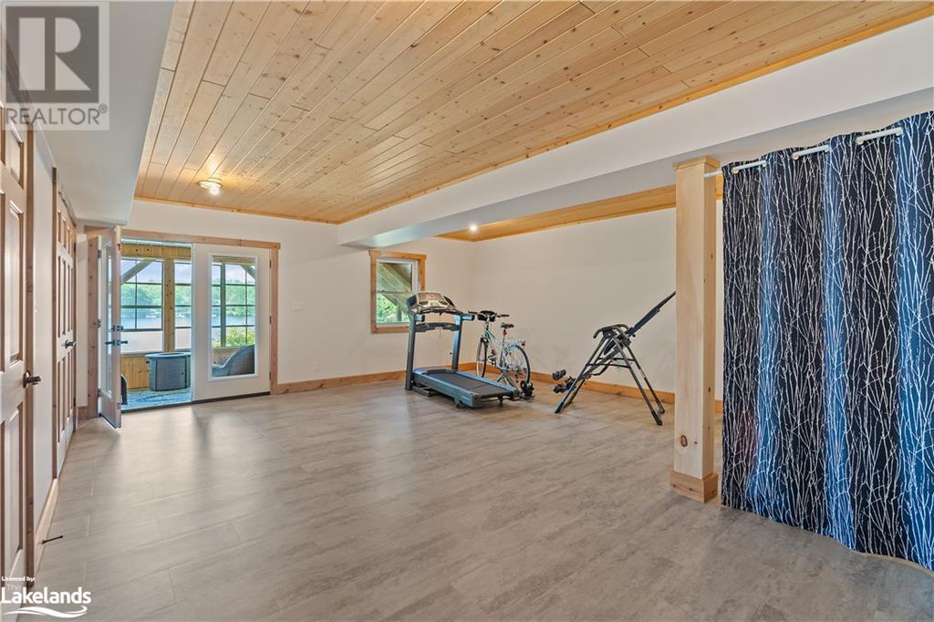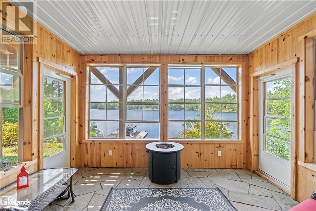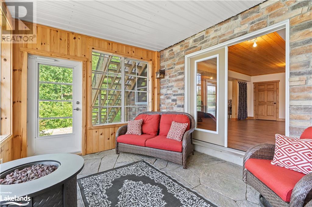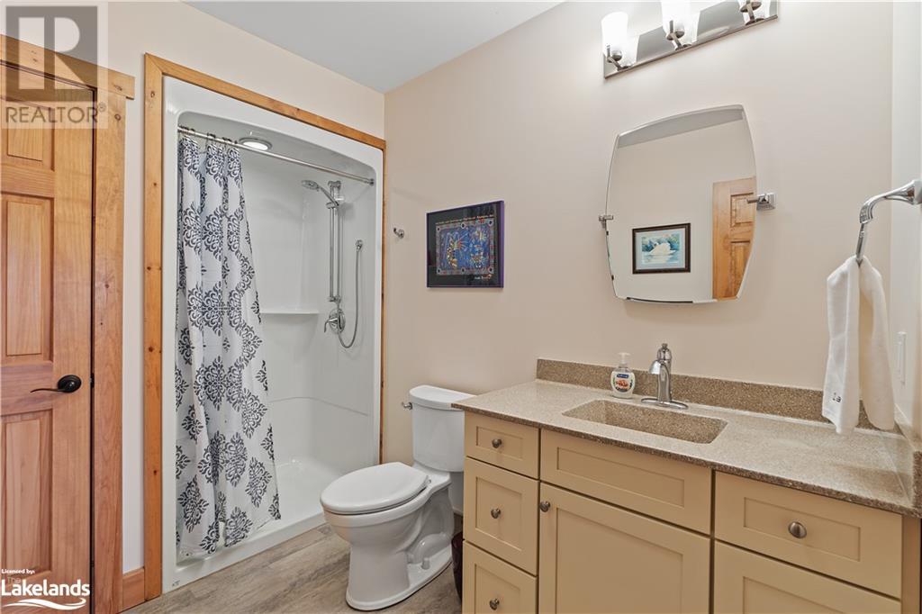 Welcome to this absolutely stunning, quality designed All season Home/Cottage on Beautiful Kahshe Lake featured in the May issue of Muskoka Life magazine! Completed in 2015 by a reputable local builder, this property shows beautifully and is maintained with pride of ownership that a special buyer will appreciate. Offering 4000 sq ft of beautifully designed living space that your family could enjoy this season. Well designed. landscaped lot with panoramic views of the lake from principal rooms and a large entertaining deck. Impressive Granite stone steps to waterfront lead to a sandy beach with large U shaped dock and covered boat port. Perennial gardens amongst circular driveway with 3 car detached garage 2018 (insulated storage room above) + a 2 car attached, heated garage with indoor access to the mud room/laundry. An inviting foyer w ample closets leads into the main living space with 16' high, pine cathedral ceiling that attracts plenty of light into your day. The warm, acacia wood floors throughout the main floor are beautifully crafted. An impressive stone, propane fireplace with generous wood mantle makes another, stunning design feature. Quality, wood kitchen cabinets with natural vein, patterned granite countertops goes beautifully with the overall design. Plenty of counter space, large peninsula style, stainless appliances with propane range is a joy to prepare family meals. Private, main floor, primary bedroom with gorgeous views of the lake + walk out to the large deck with glass railings. Spa like 4pc ensuite and large walk in closet make this a comfortable, personal getaway. Additional 2 bedrooms on the main floor (or use 1 as a TV den) are privately located with another 4pc bth. Wide stairs, off the foyer to the lower level family room that would make an ideal media room. 4th bedroom, 3 pc bath with ample closets & storage rooms. 3 season Muskoka room w stone floor. Located off easy access all season road. 10 mins to Washago & 20 mins to Gravenhurst. (id:22211)