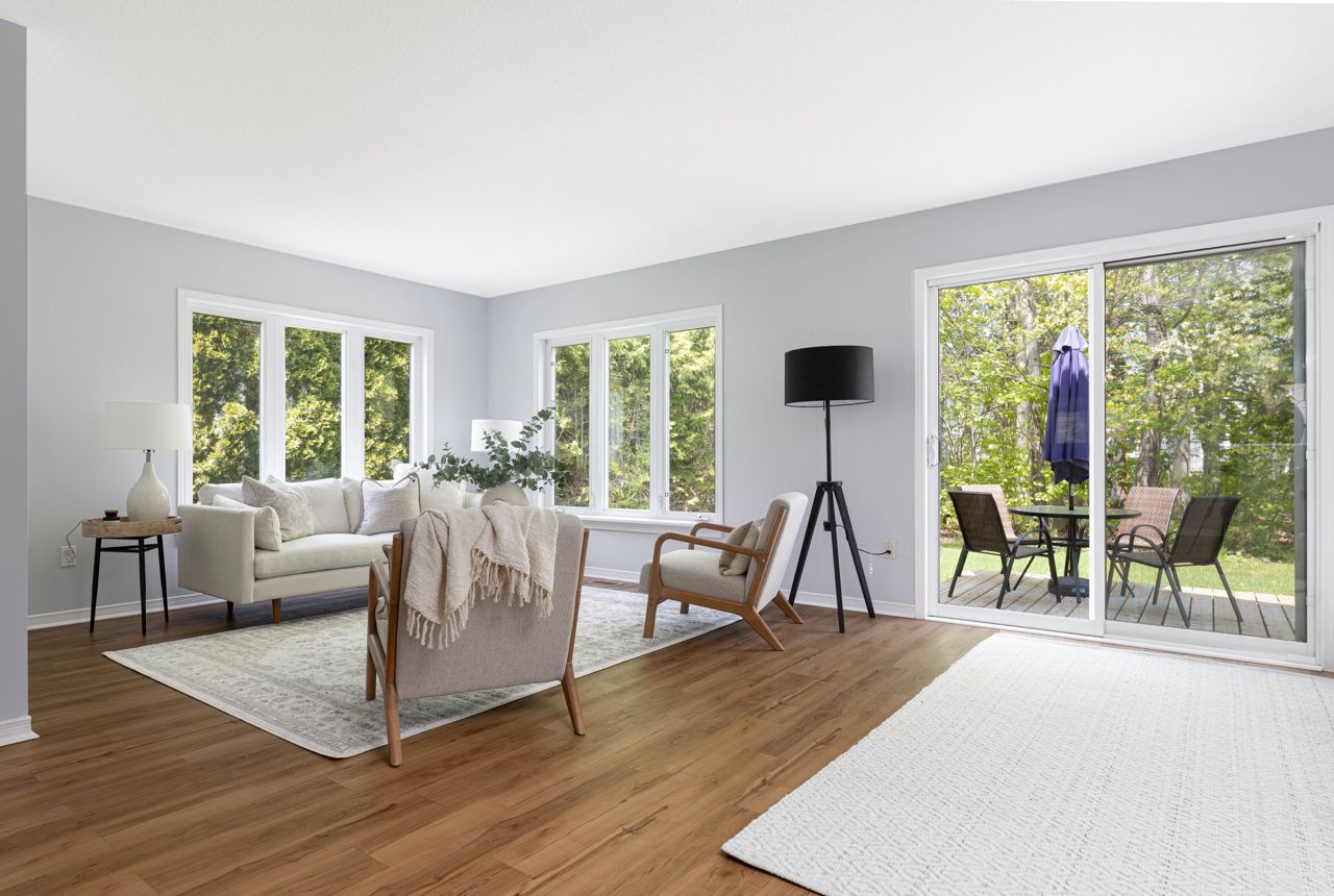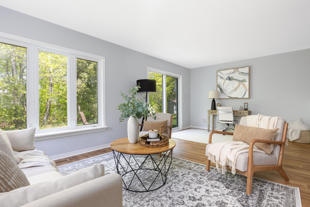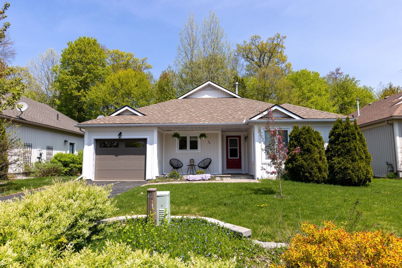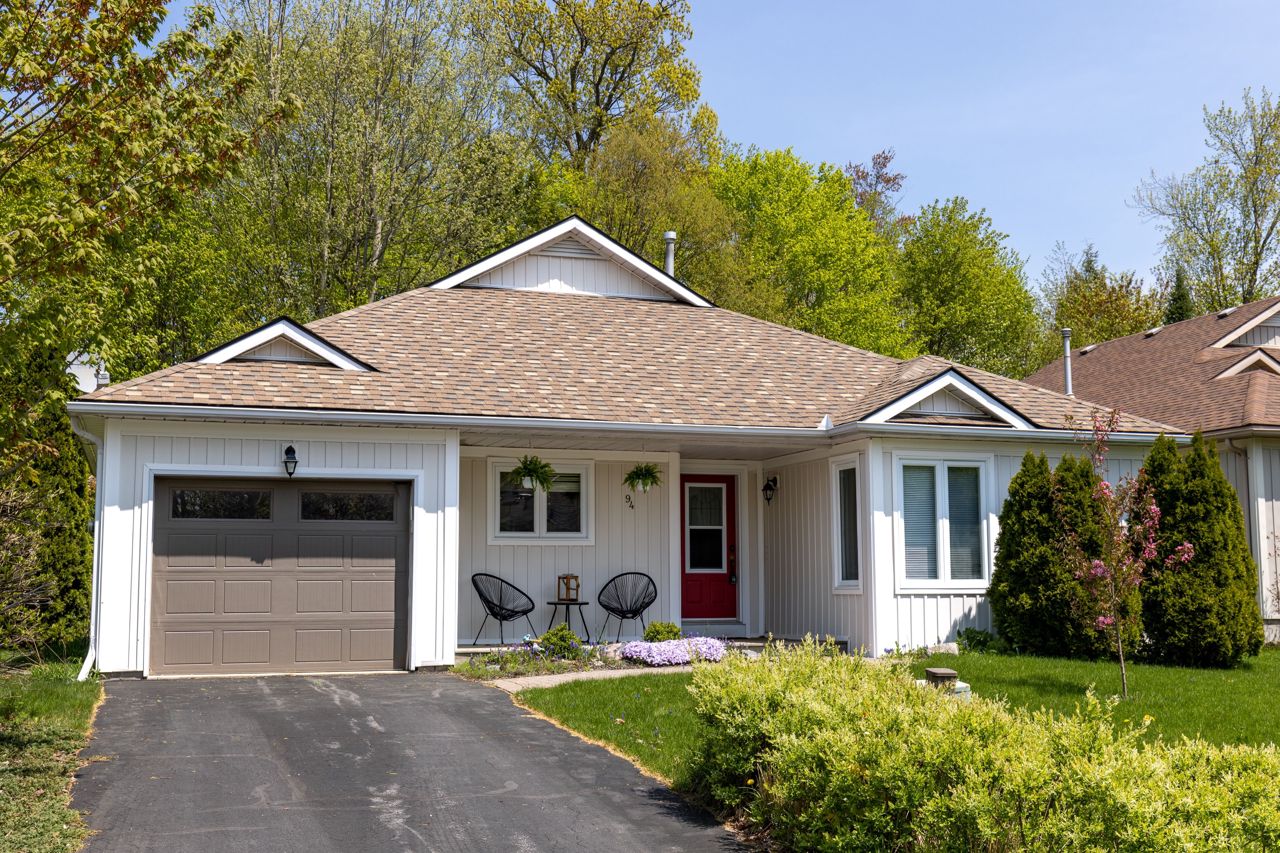 OPEN HOUSE! SATURDAY MAY 20TH 2:30PM-4:30PM. Welcome to the highly desirable Pineridge Retirement community, nestled in the picturesque town of Gravenhurst! This neighborhood is ideally situated within minutes to groceries, shopping, pharmacy, scenic trails, Gravenhurst Opera House, Gull Lake Rotary Park and numerous other ideal amenities. Presenting a delightful freehold bungalow, this residence offers the convenience of one-level living (plus offering storage in the crawl space), an attached garage, a tranquil backyard space and exclusive access to the Pineridge recreation centre. The home boasts 1,154 square feet of finished living space, a natural gas furnace (2017), central air conditioning (2017), and upgraded flooring throughout the principal rooms. The inviting covered front porch welcomes you inside the generous foyer with ample closet space.The interior flows seamlessly into a bright, open concept living and dining area, complemented by sliding patio doors that lead to the back deck offering views of the serene forested backyard and mature trees.