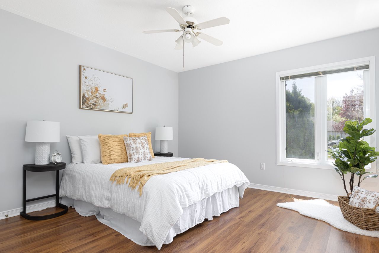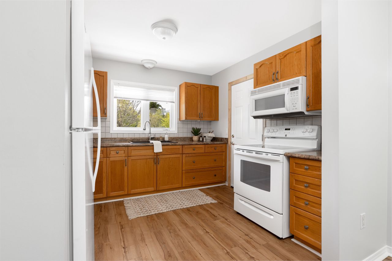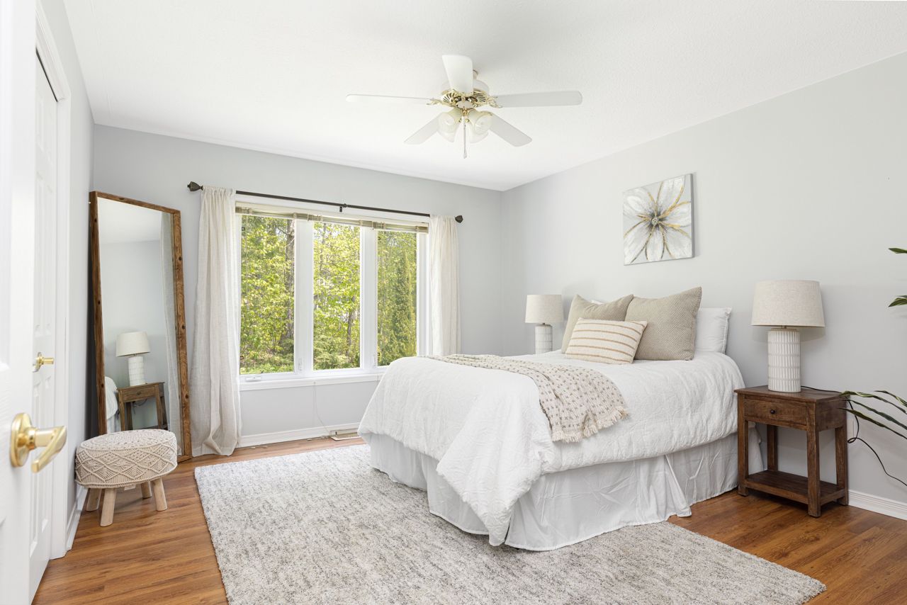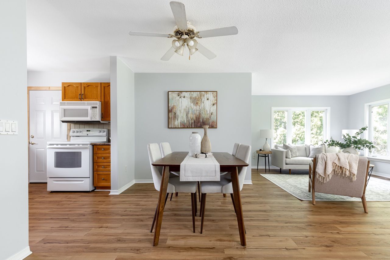 OPEN HOUSE! SATURDAY MAY 20TH 2:30PM-4:30PM. Welcome to the highly desirable Pineridge Retirement community, nestled in the picturesque town of Gravenhurst! This neighborhood is ideally situated within minutes to groceries, shopping, pharmacy, scenic trails, Gravenhurst Opera House, Gull Lake Rotary Park and numerous other ideal amenities. Presenting a delightful freehold bungalow, this residence offers the convenience of one-level living (plus offering storage in the crawl space), an attached garage, a tranquil backyard space and exclusive access to the Pineridge recreation centre. The home boasts 1,154 square feet of finished living space, a natural gas furnace (2017), central air conditioning (2017), and upgraded flooring throughout the principal rooms. The inviting covered front porch welcomes you inside the generous foyer with ample closet space.The interior flows seamlessly into a bright, open concept living and dining area, complemented by sliding patio doors that lead to the back deck offering views of the serene forested backyard and mature trees.