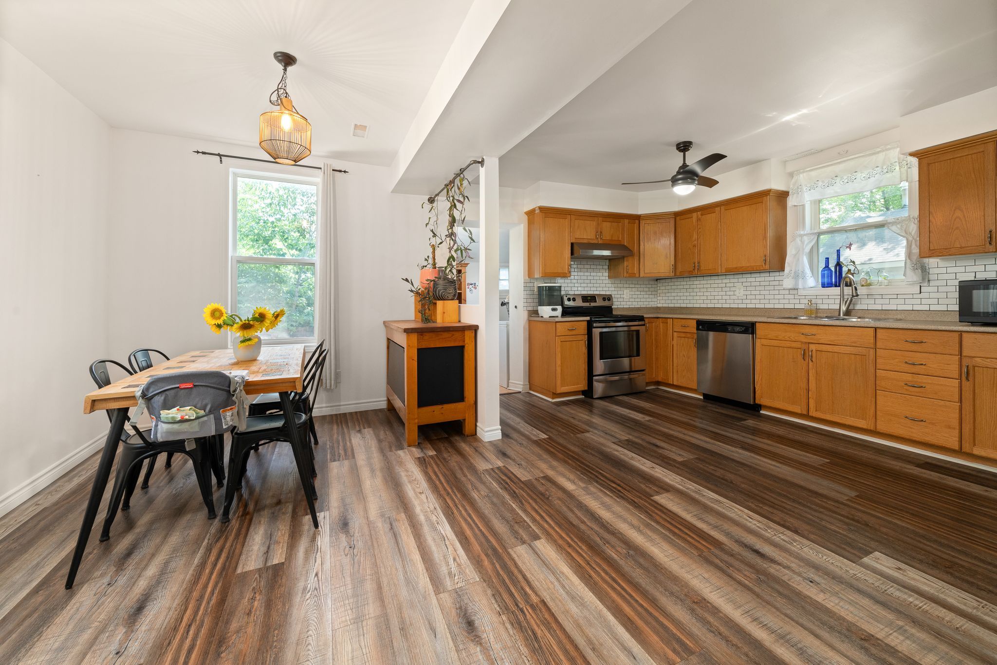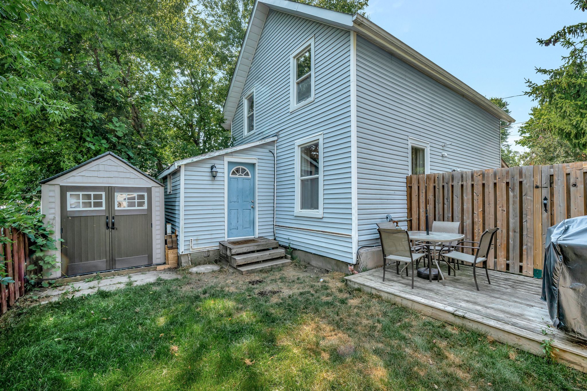 Charming starter home that is Move-In Ready! This cozy and affordable 3-bedroom, 1.5-bath home is the perfect fit for first-time buyers! Featuring a bright main level with an updated kitchen with stainless steel appliances and stylish tile backsplash, this home offers modern comfort with a warm, inviting feel. Enjoy the convenience of main-floor laundry with direct access to the back deck - ideal for summer BBQs or relaxing evenings. The fully fenced yard is perfect for children and pets, while the charming covered front porch adds curb appeal and a great spot to unwind. Upstairs, you'll find a spacious primary bedroom with two large windows, a second bedroom, and a third smaller room ideal for a home office or nursery. A full 4-piece bathroom completes the upper level. Located just steps from a splash pad, large park, scenic boardwalk, and vibrant downtown shopping, this home combines lifestyle and location in Napanee, Ontario. Recent upgrades include a new forced air gas furnace and central air (2022) and updated flooring throughout. Flooded with natural light and full of character, this is a must-see opportunity!