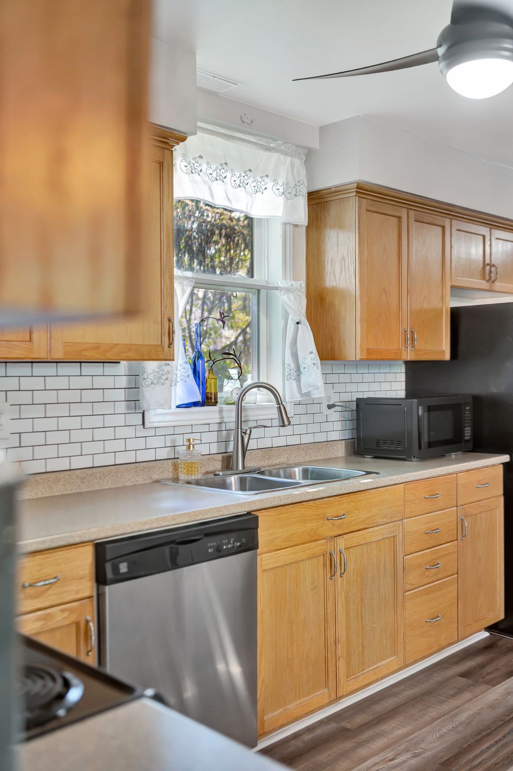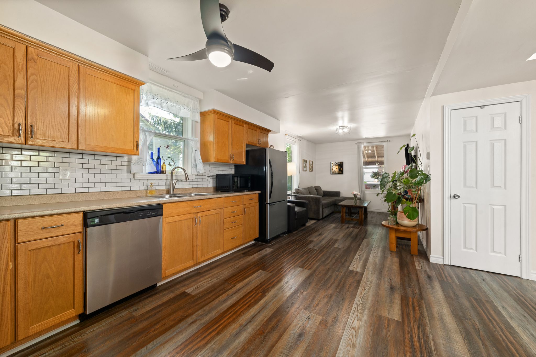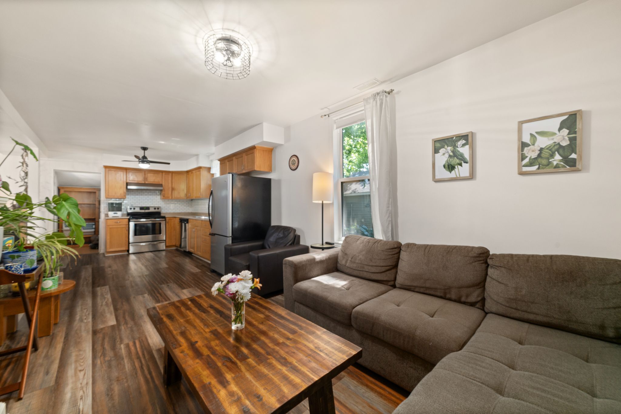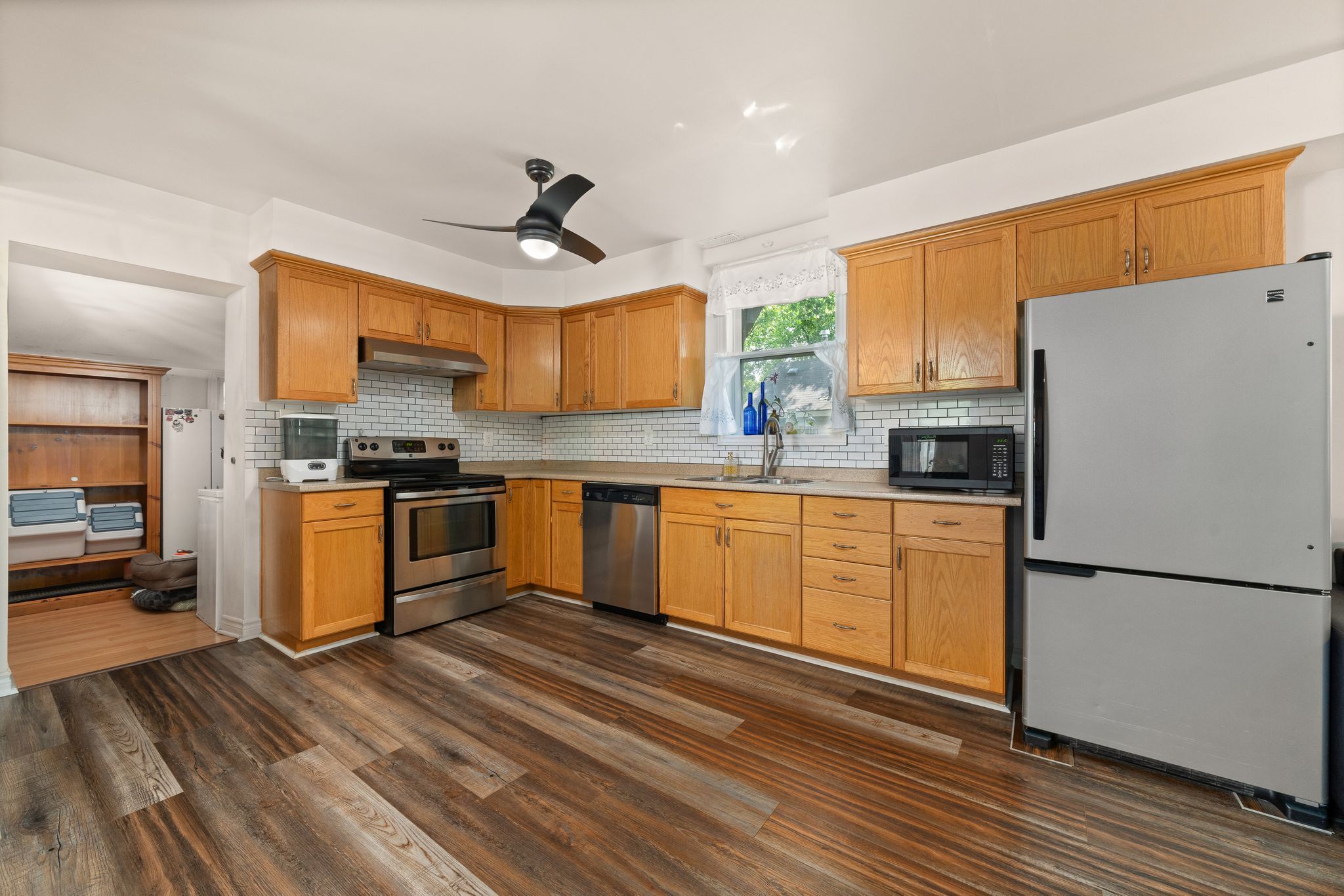 迷人首购住宅,即刻入住无忧!这栋温馨经济的三卧1.5卫住宅是初次购房者的理想之选!明亮的主层配有升级厨房,不锈钢电器搭配时尚瓷砖防溅墙,现代舒适中洋溢着温馨氛围。主层洗衣房直通后露台,夏日烧烤或夜晚休憩尽享便利。全围栏庭院是孩童和宠物的乐园,带顶前廊既提升街景魅力,又是放松的绝佳角落。
