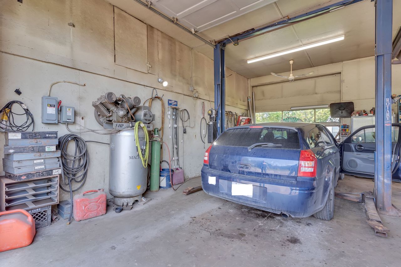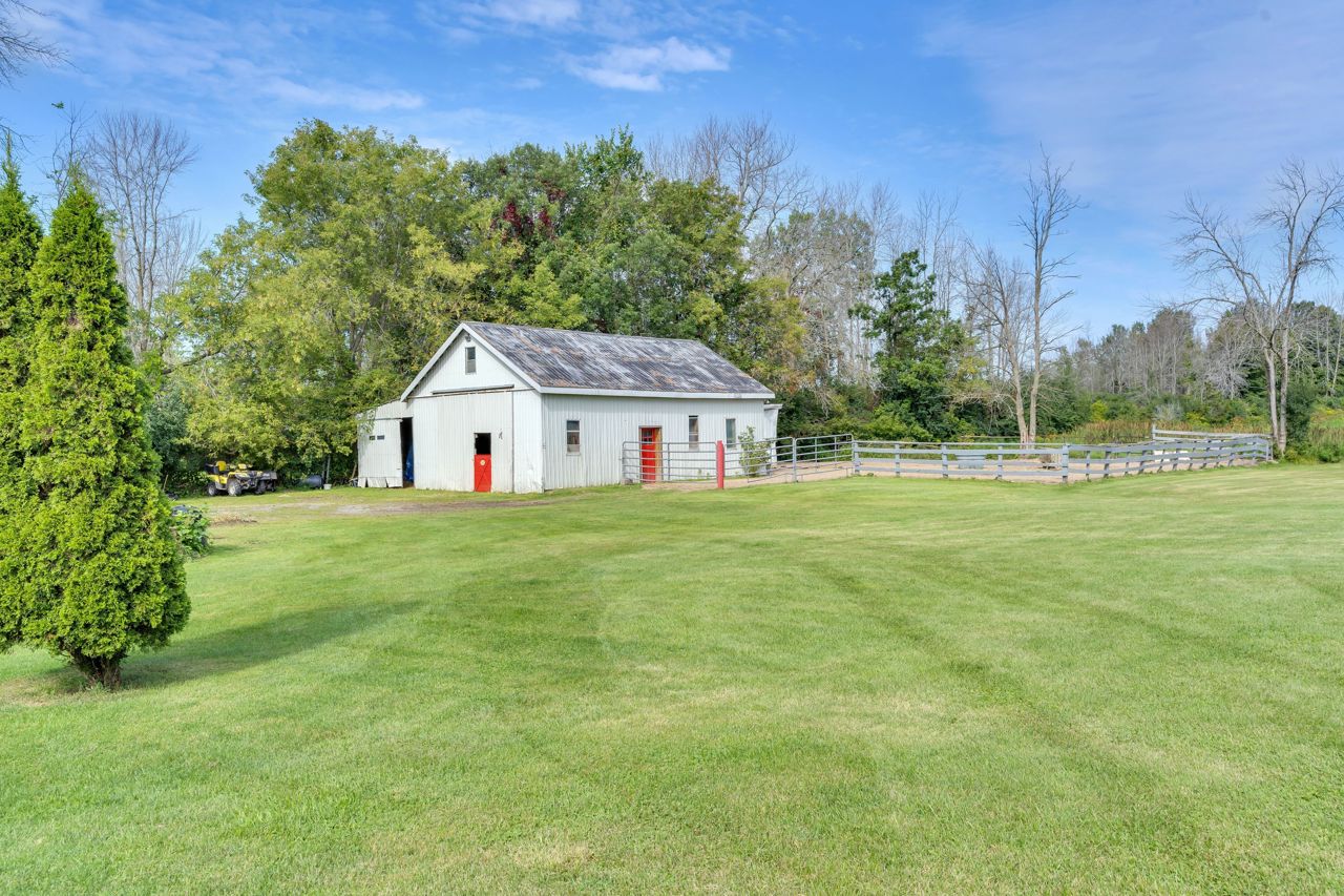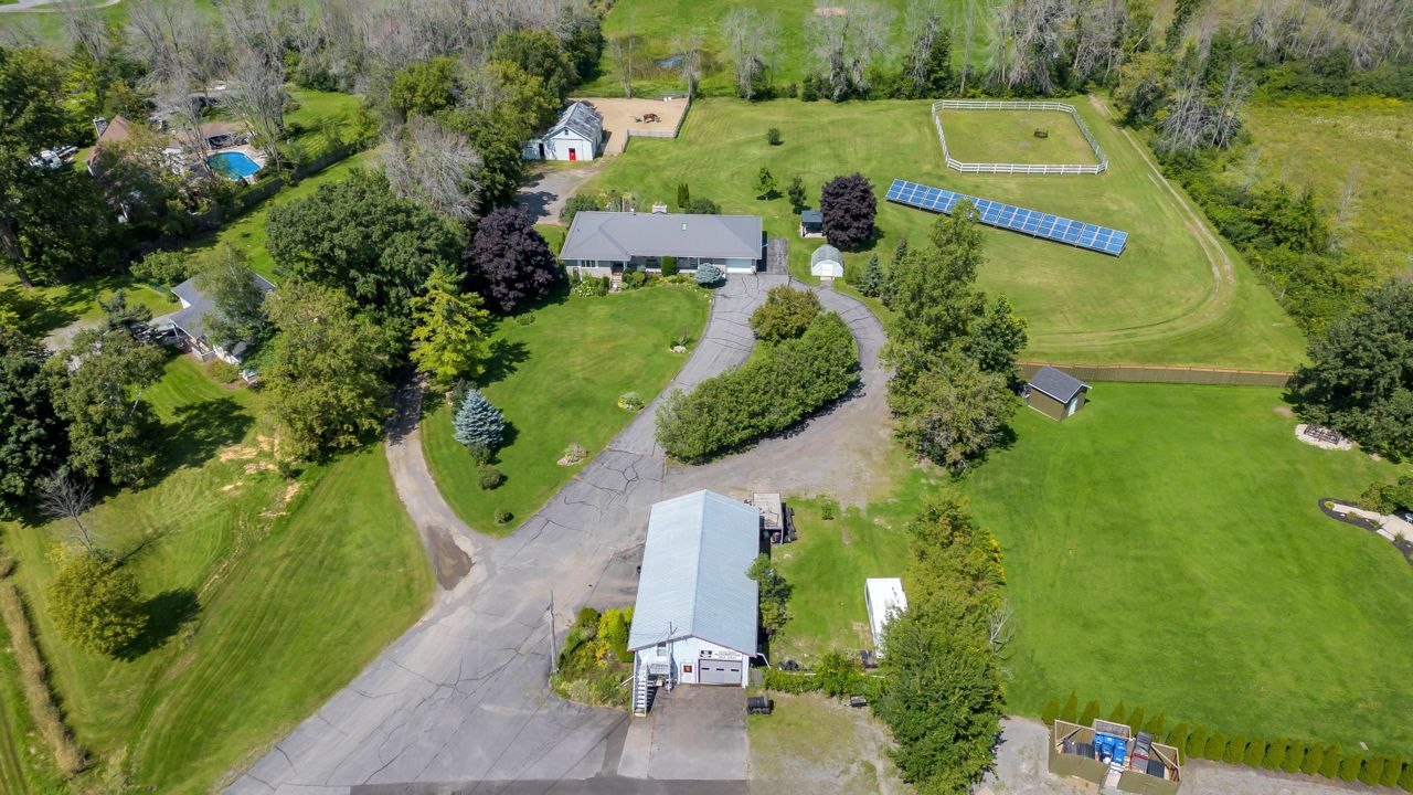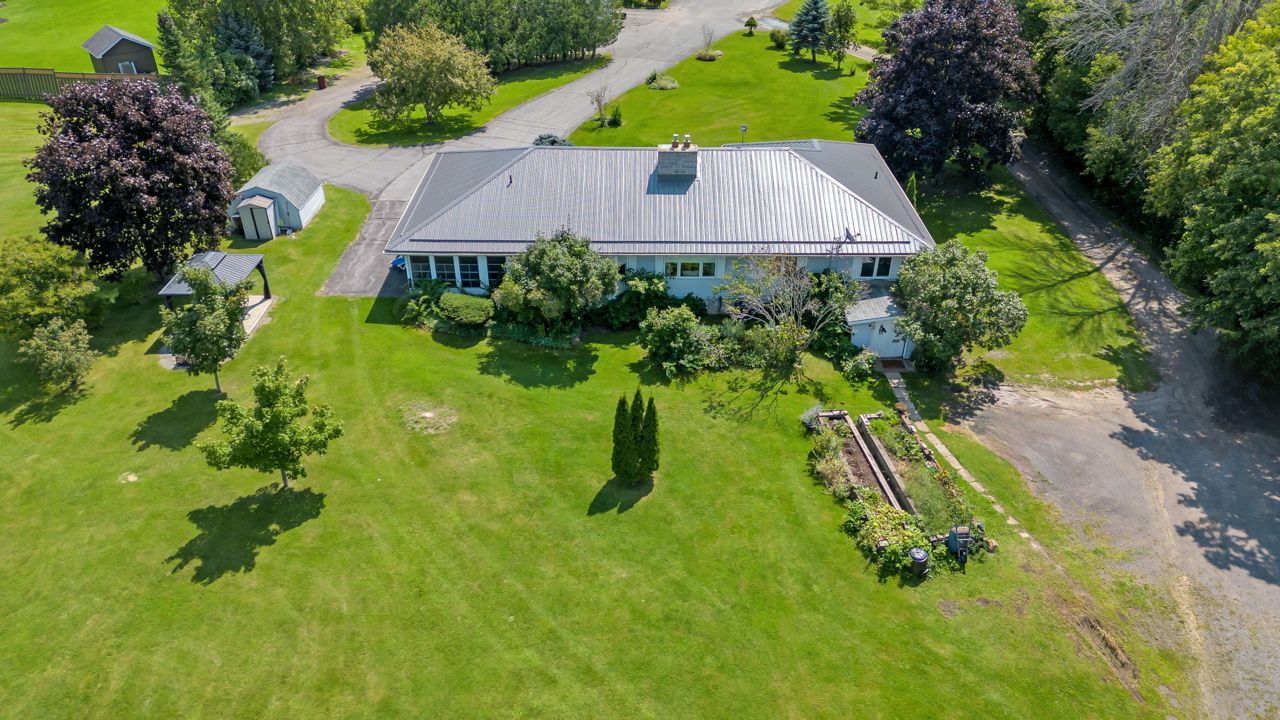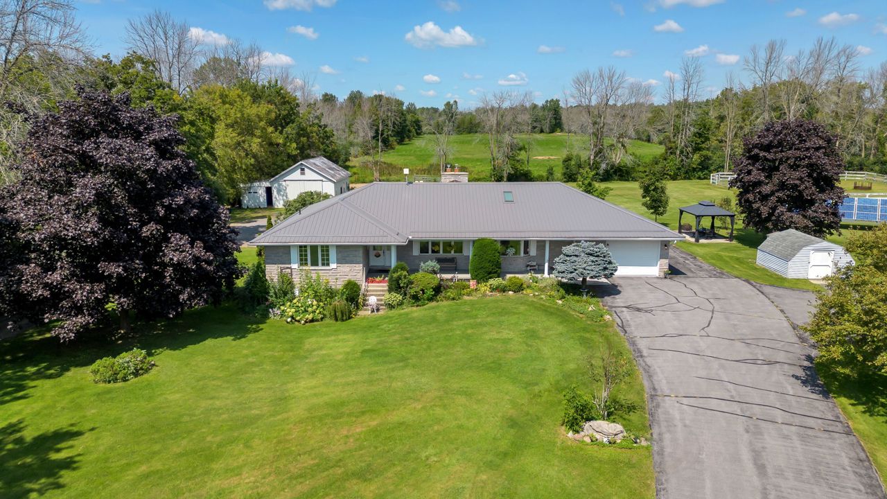 Discover a remarkable property with endless potential! Rural living with the convenience of being minutes from town amenities. This expansive estate spans 25 acres, boasts a beautiful 3 bed bungalow, 7pc bathroom + 2pc bath with laundry on the main level, large living room w/gas fireplace, family room + dining room with great views of the land. The lower level with separate entrance offers in-law suite potential with a kitchen, 2pc w/separate shower room, open concept space with two sleep areas, tons of storage space and utility room. A 2-stall barn with hay storage above, lean-to storage beside, paddock, riding ring, and plenty of acreage allows for the perfect place to ride. An operational automotive shop -currently rented, allows for additional income or your future business potential. This property harmoniously blends residential comfort, equestrian dreams, and commercial opportunities. New steel roof (2021), new natural gas furnace (2022). Solar contract in place. A must see!Estate Sale, trustees: Freda Patricia Peters & Alyssa Luffman