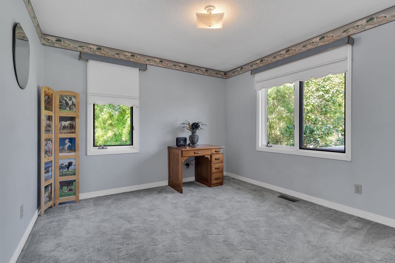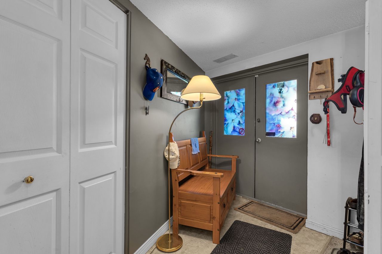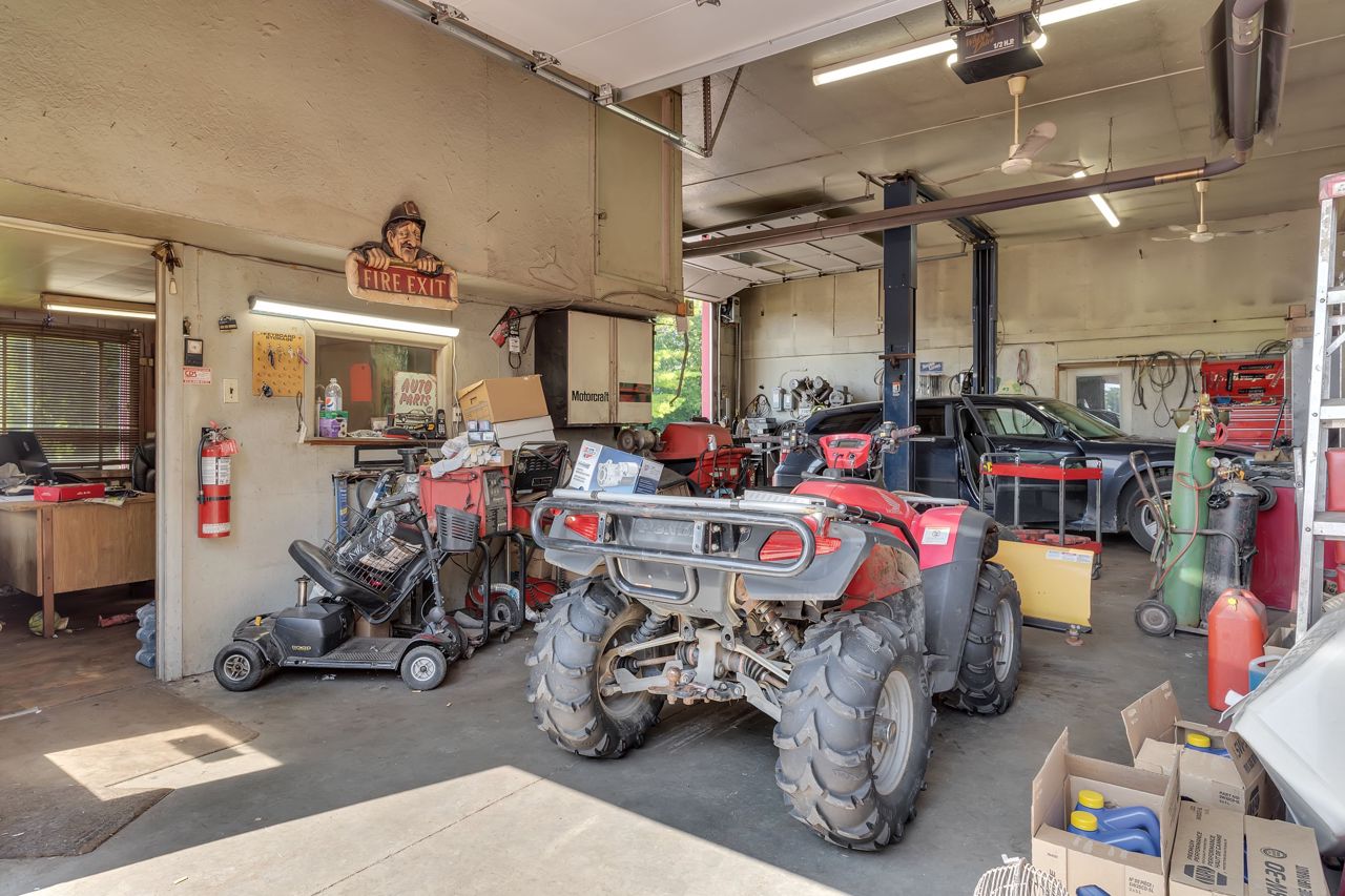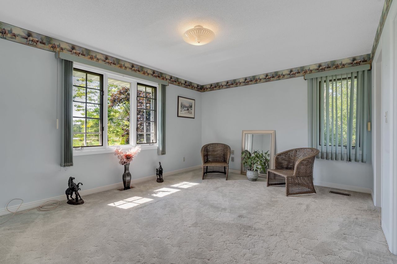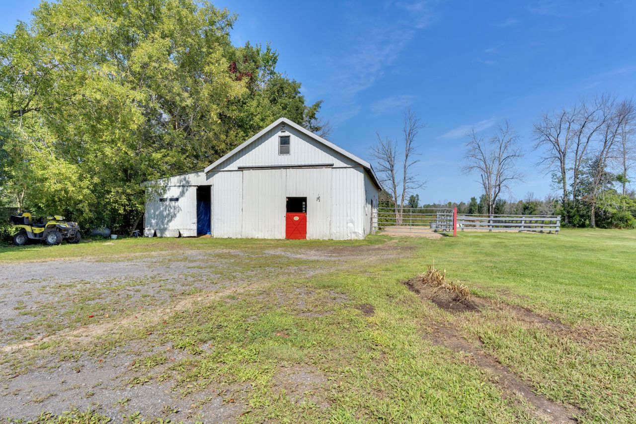 Discover a remarkable property with endless potential! Rural living with the convenience of being minutes from town amenities. This expansive estate spans 25 acres, boasts a beautiful 3 bed bungalow, 7pc bathroom + 2pc bath with laundry on the main level, large living room w/gas fireplace, family room + dining room with great views of the land. The lower level with separate entrance offers in-law suite potential with a kitchen, 2pc w/separate shower room, open concept space with two sleep areas, tons of storage space and utility room. A 2-stall barn with hay storage above, lean-to storage beside, paddock, riding ring, and plenty of acreage allows for the perfect place to ride. An operational automotive shop -currently rented, allows for additional income or your future business potential. This property harmoniously blends residential comfort, equestrian dreams, and commercial opportunities. New steel roof (2021), new natural gas furnace (2022). Solar contract in place. A must see!Estate Sale, trustees: Freda Patricia Peters & Alyssa Luffman