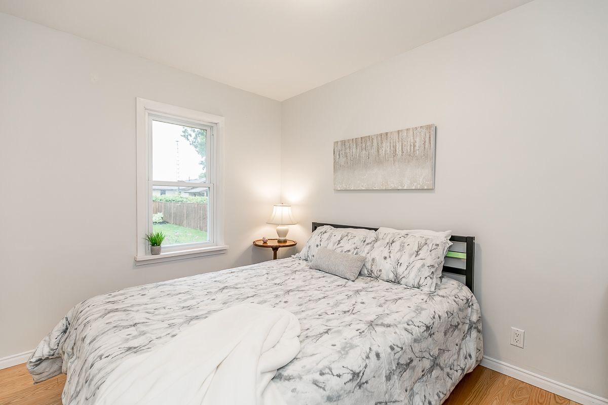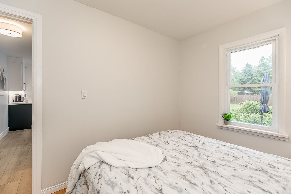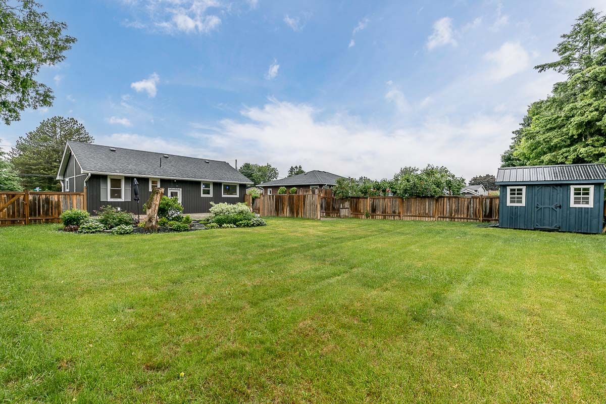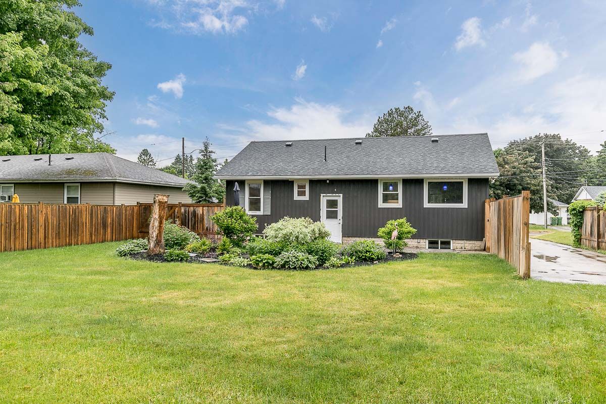 This Stunning 2 bedroom bungalow with lovely rear yard patio area overlooking the oversized rear yard with gorgeous perennial gardens is perfect for your summer entertaining! This recently upgraded home features a brand new upscale eat-in kitchen (2022) with quartz countertops, beautiful pantry, self closing drawers, modern upgraded cabinetry, undercounter lighting, and loads of counterspace - sure to impress the most discerning buyer! Spacious living area with bay window is filled with natural light, and boasts upgraded luxury vinyl flooring! 2 good sized bedrooms on main level with hardwood flooring and upgraded 4 pc bath with modern cabinetry!! Lower level features a 3 pc bath and entrance from rear of home, and awaits your finishing touches! New Furnace 2021, new kitchen window (2022). Located close to downtown for shopping, amenities and restaurants. Golf course, hospital and elementary school nearby!!