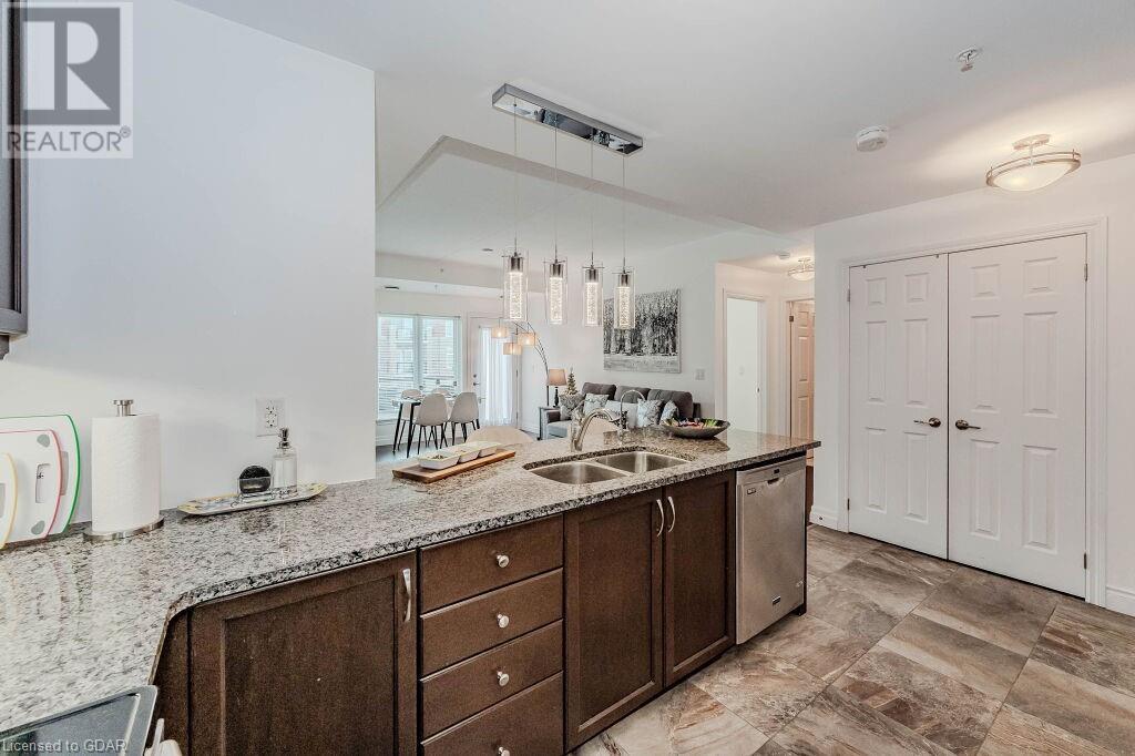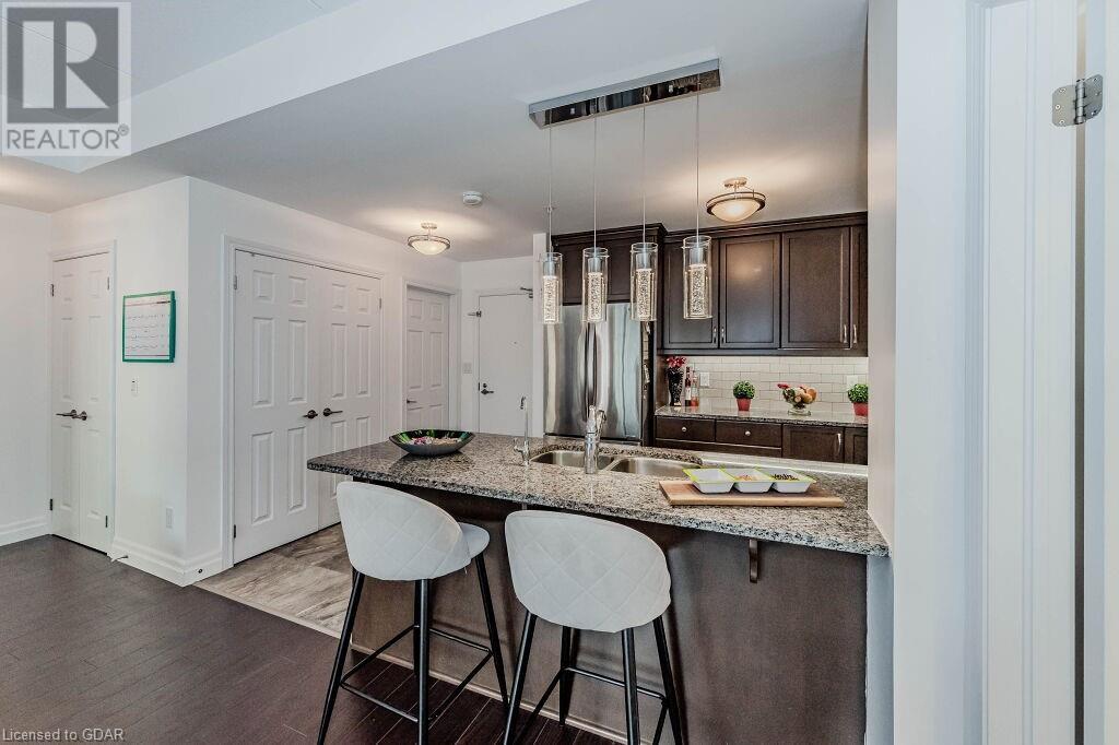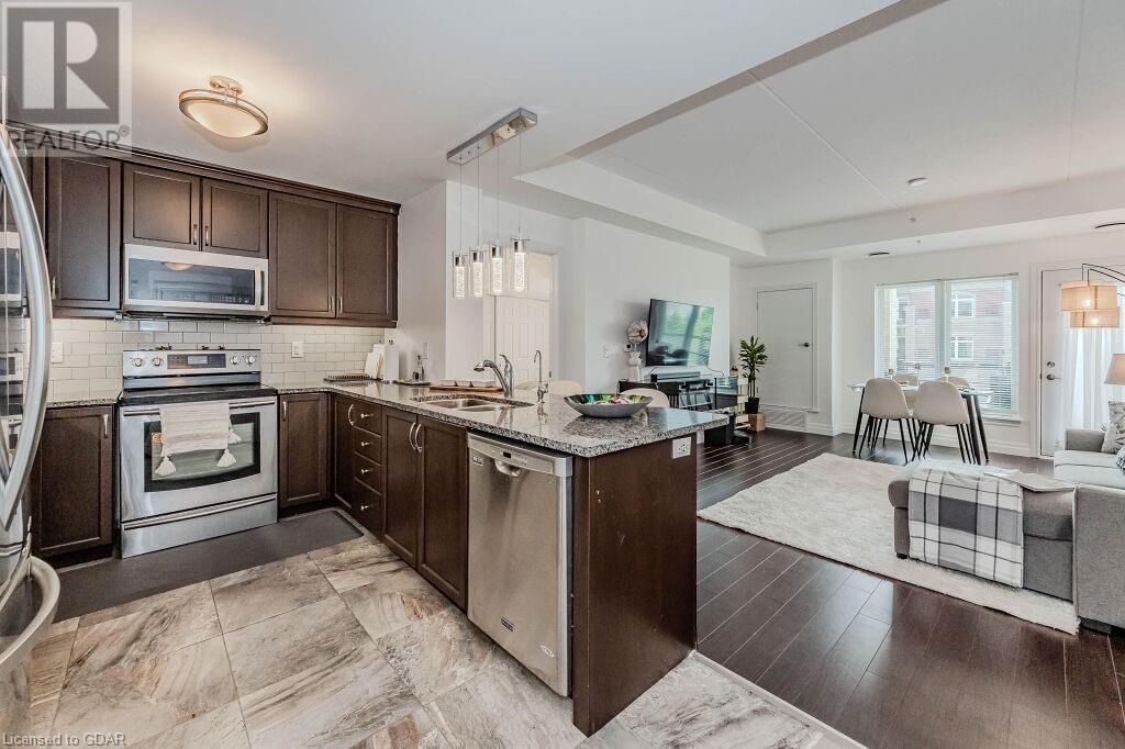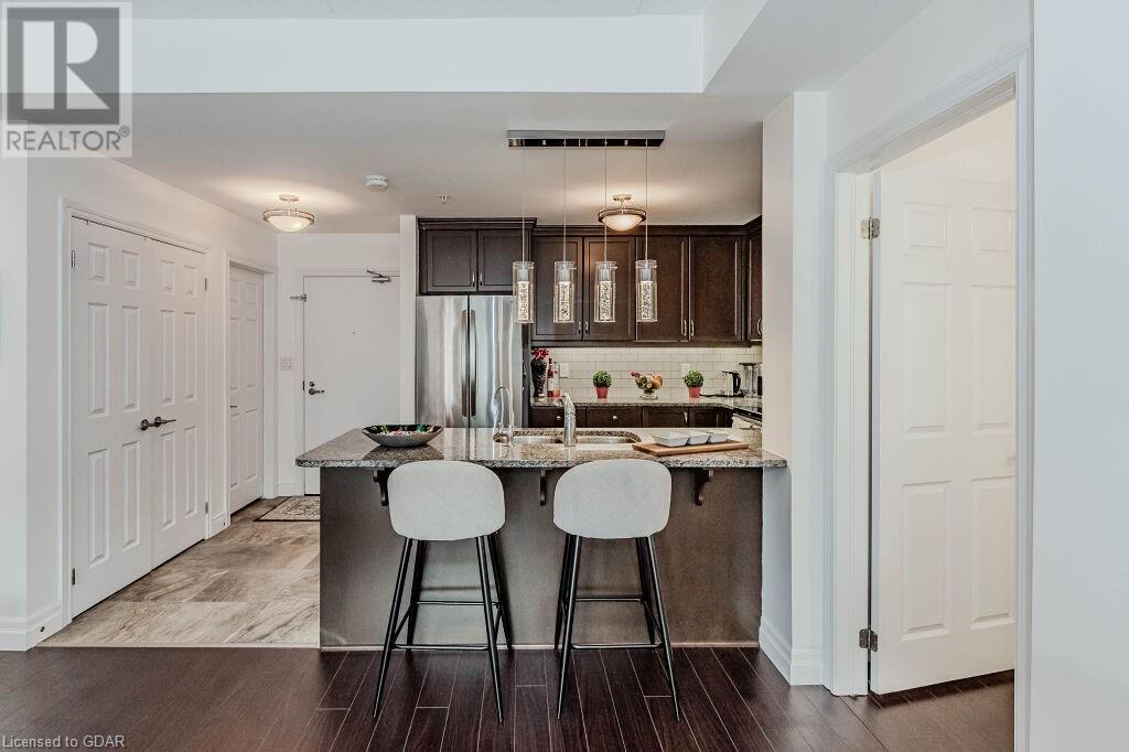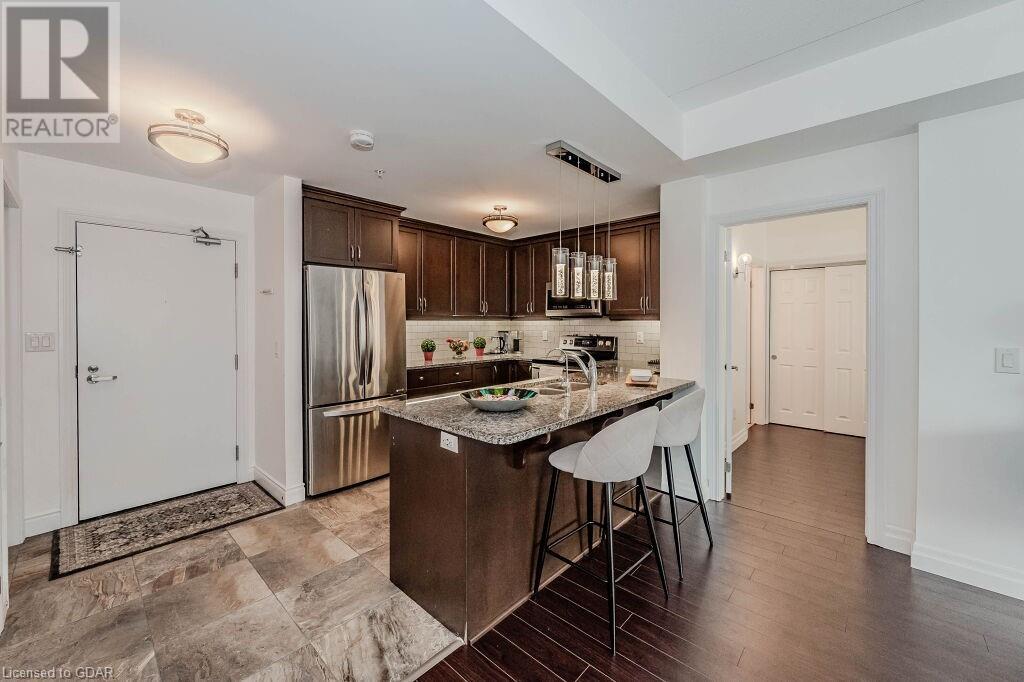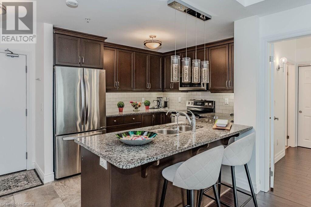 Are you first time buyers or thinking of downsizing or buying a place for your kids attending at the University of Guelph? This well kept two bedrooms with two bathrooms unit is perfect for you! It is on the 3 level with 1064 sq.ft, the master bedroom is bright and spacious and has an ensuite. Another bedroom is next to the main bathroom. All stainless steel appliances and granite counter top with breakfast bar in Kitchener. Spacious living room accesses to balcony. Recent updates all hardwood floors throughout the unit, all beautiful lights and paintings. Owned underground parking spot (#88) and a locker (U108). The condo itself has amenities including rooftop terrace, large party room, gym room, courtyard and more....Great location where it is closed to all amenities and University of Guelph, easy access to HWY 401. Show with absolute confidence! (id:22211)