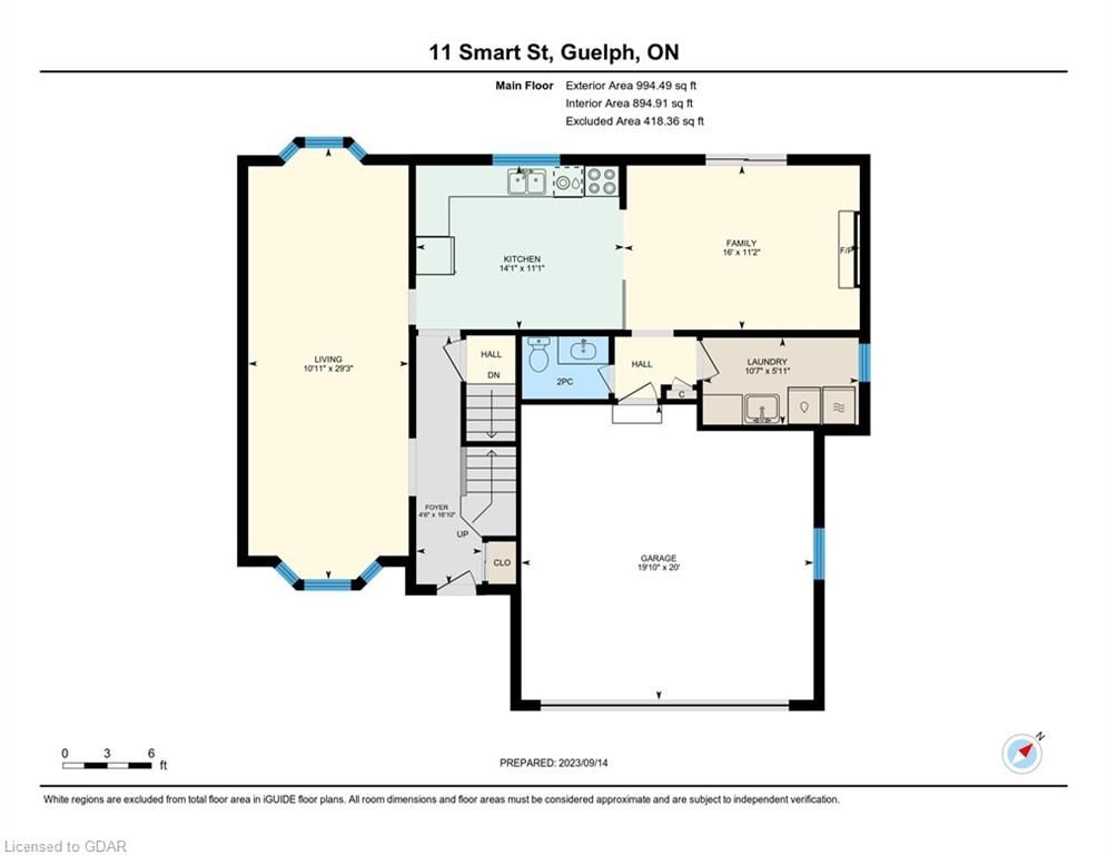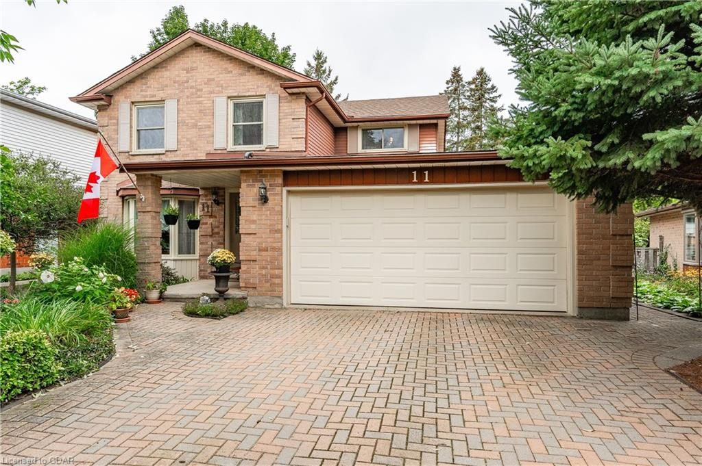 Welcome to 11 Smart Street, your ideal family home in the heart of Guelph. This home is just a stone's throw away from great schools and close to the University of Guelph. Stepping inside, the main floor features an elegant living and dining room with hardwood flooring and bay windows. The kitchen is open to the family room, offering a walkout to the deck and a cozy gas fireplace for your comfort. There is a conveniently located laundry room, 2-piece bathroom, and easy access to the double-car garage. Heading up to the second floor, you'll find the primary bedroom, w/ two closets & 3-piece ensuite. Two more bedrooms and a 4-piece bathroom finish this level. The basement features a fourth bedroom, a versatile rec room, & another 3-piece bathroom. Step outside into the fenced-in backyard, and you'll discover your very own private oasis. This property is a dream come true for families, offering a perfect blend of comfort and functionality.Add Inclusions: Blinds ; Under Contract: Tankless Water Heater, Water Softener