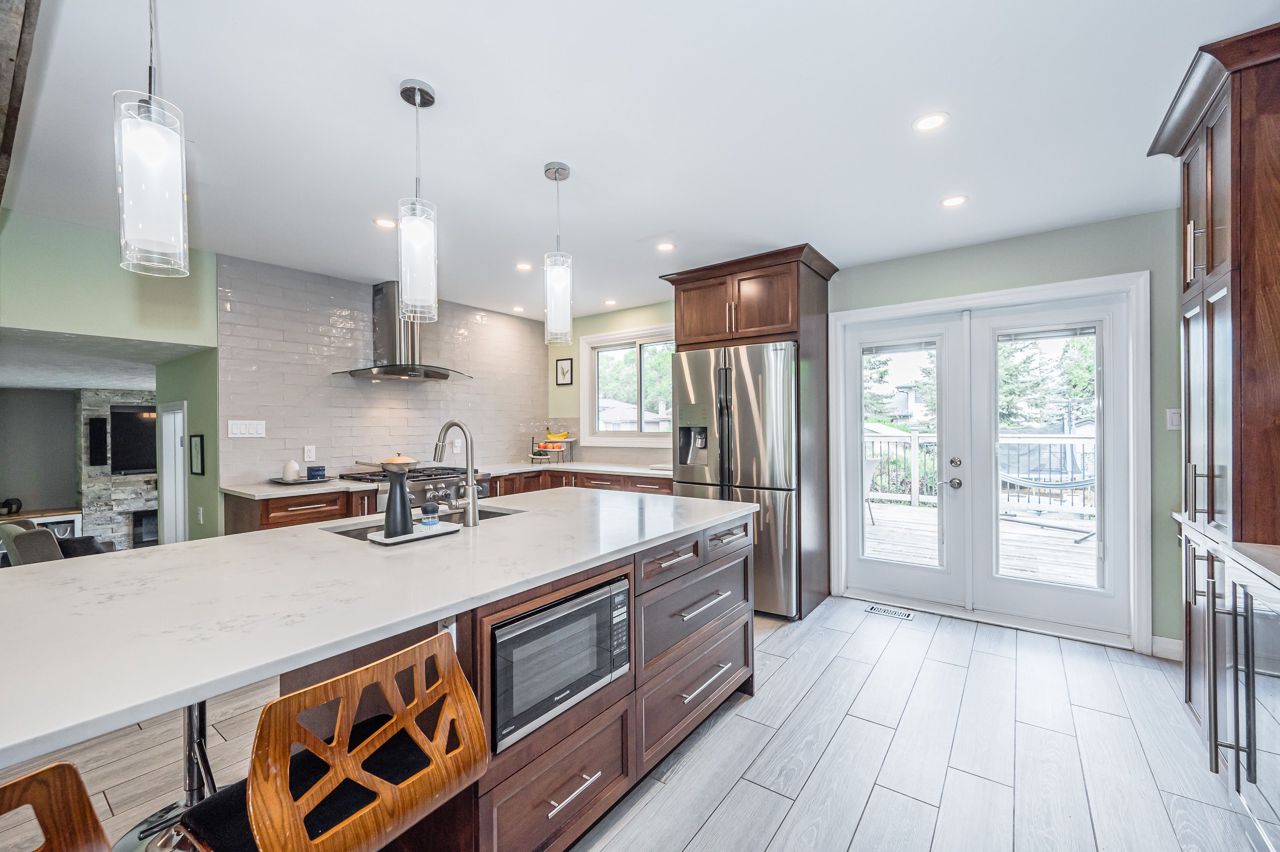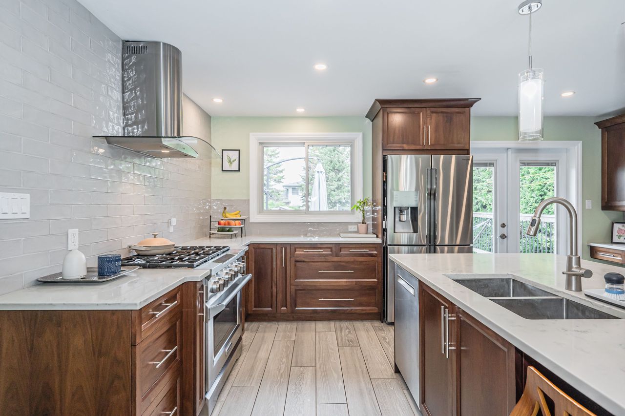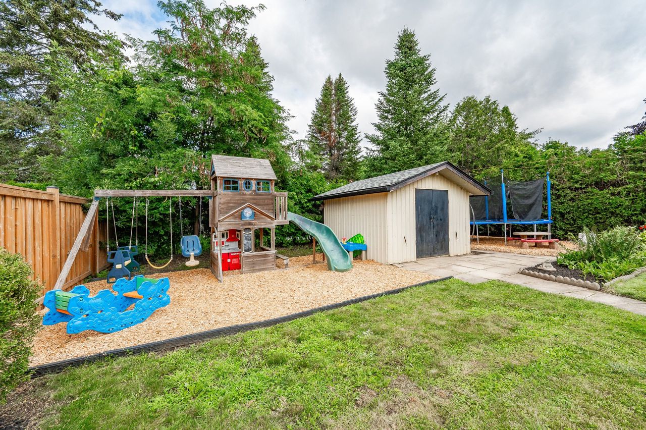 Welcome to 131 Fife Road. A well-maintained sidesplit situated on a 54'x139' lot with plenty of room to spread out. The kitchen & dining area have been extensively renovated w/ updated cabinetry, ceramic flooring, stainless steel appliances, a huge island w/ bar-stool seating, & enough space to host gatherings. There is a convenient walk-out from the kitchen to the patio overlooking the massive fully-fenced backyard w/ mature trees & shrubs, children's swing set, & shed. The main-floor features a spacious 2pc bath, family room w/ gas fireplace, sliding door walk-out to a concrete patio, & easy access to the garage from inside of the home. Upstairs, are 3 sizeable bedrooms w/ hardwood floors & updated light fixtures, & a 5pc bath. Downstairs, is a partially finished space w/ lots of natural light in the rec-room, & room for storage in the crawl space. Close to HWY 124, the Hanlon, Costco, schools, public transit, & Springdale Park.